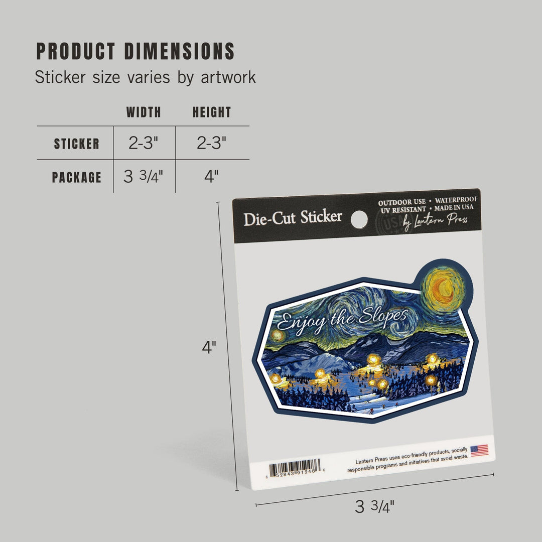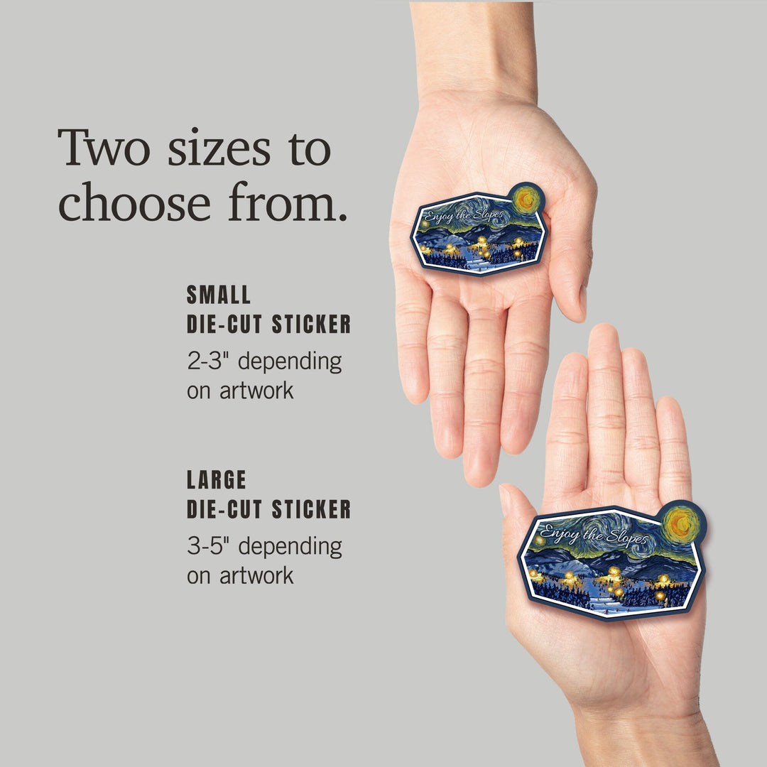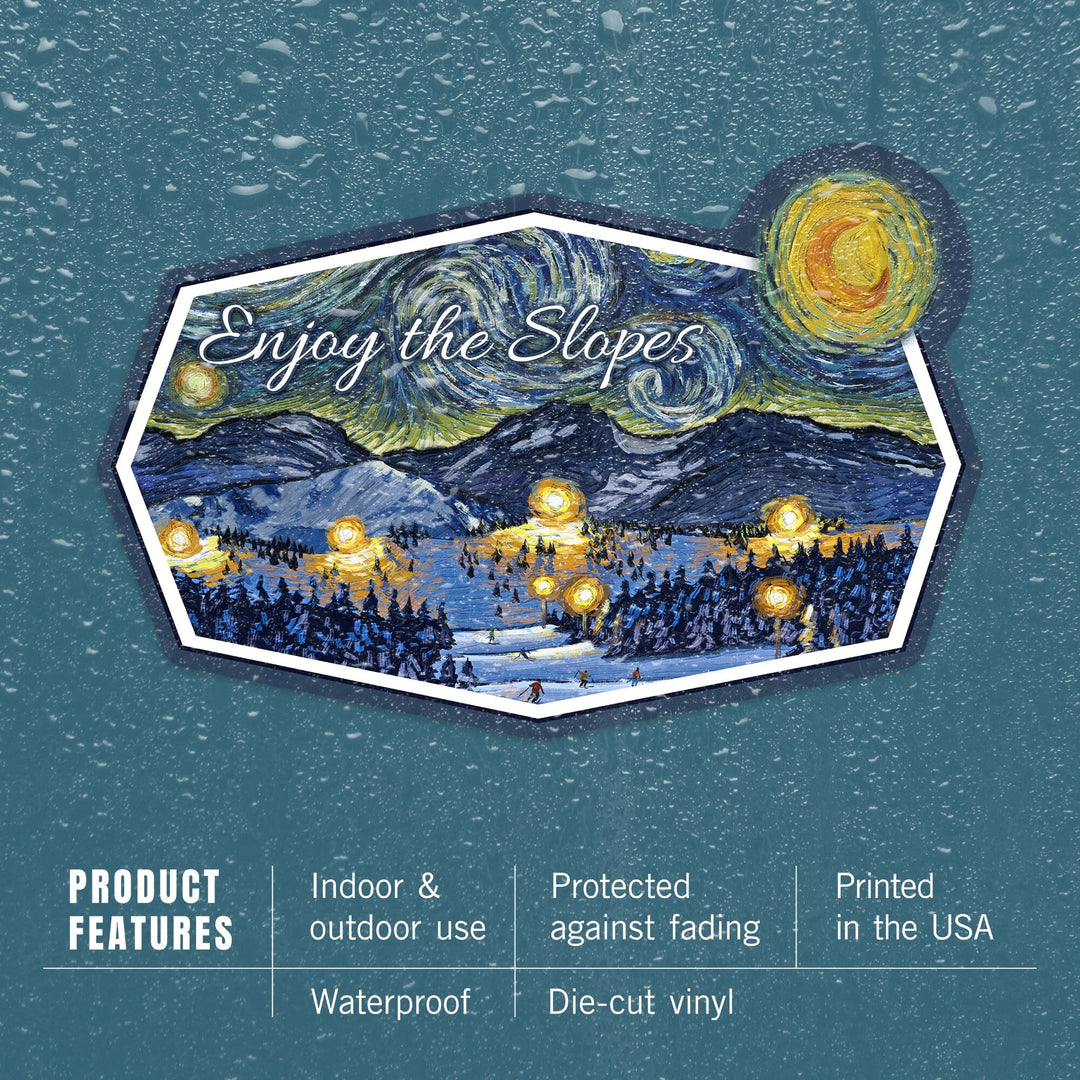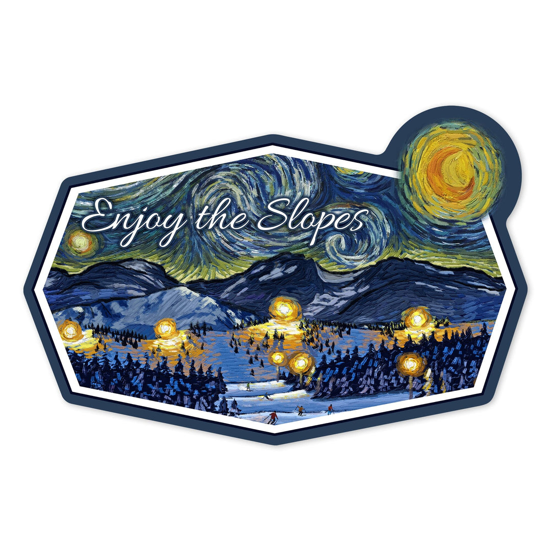 Enjoy the Slopes, Ski Resort, Starry Night, Contour, Vinyl Sticker