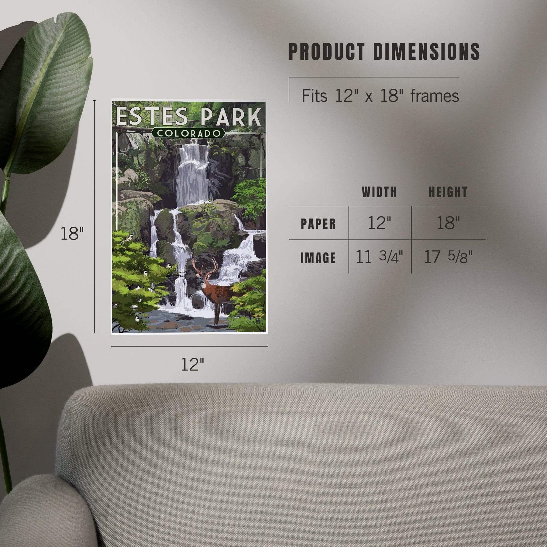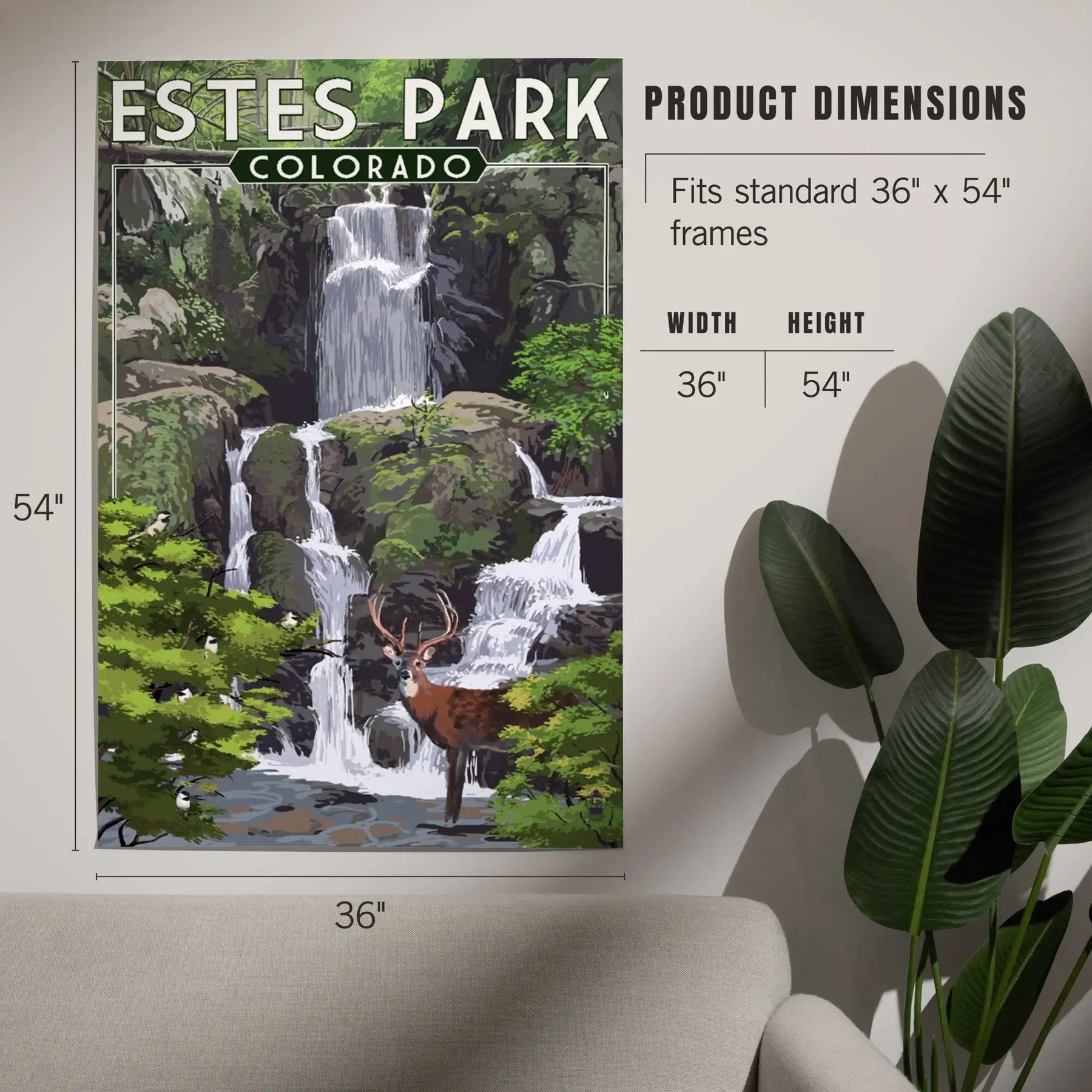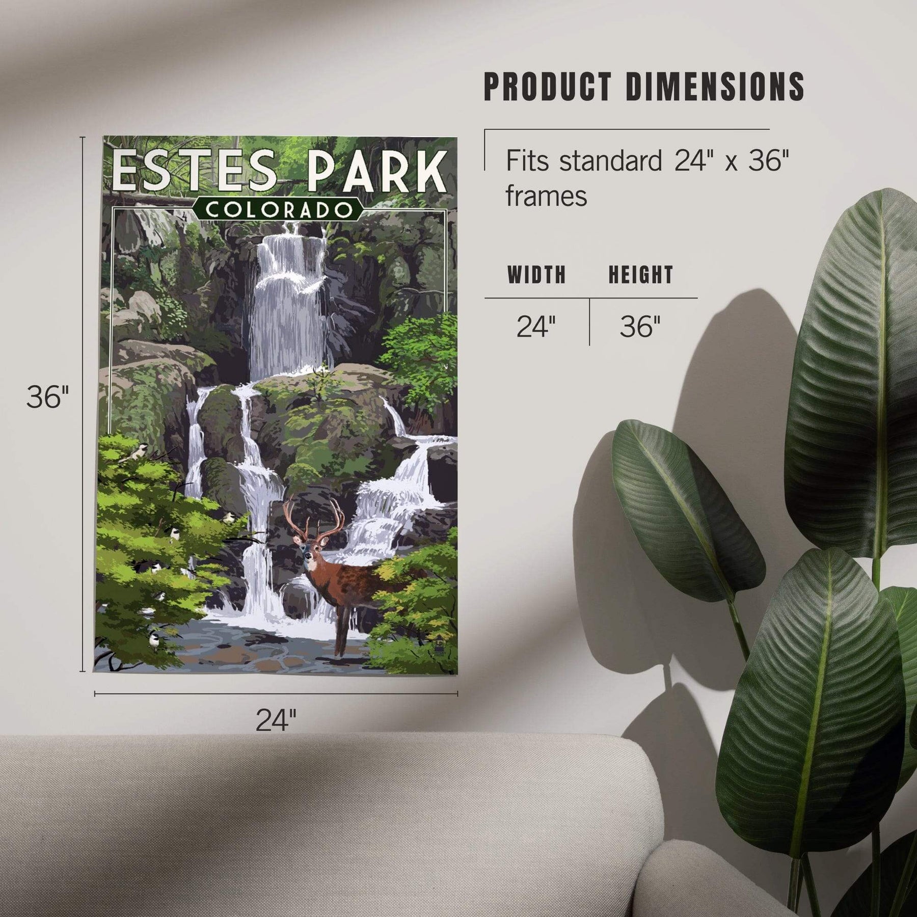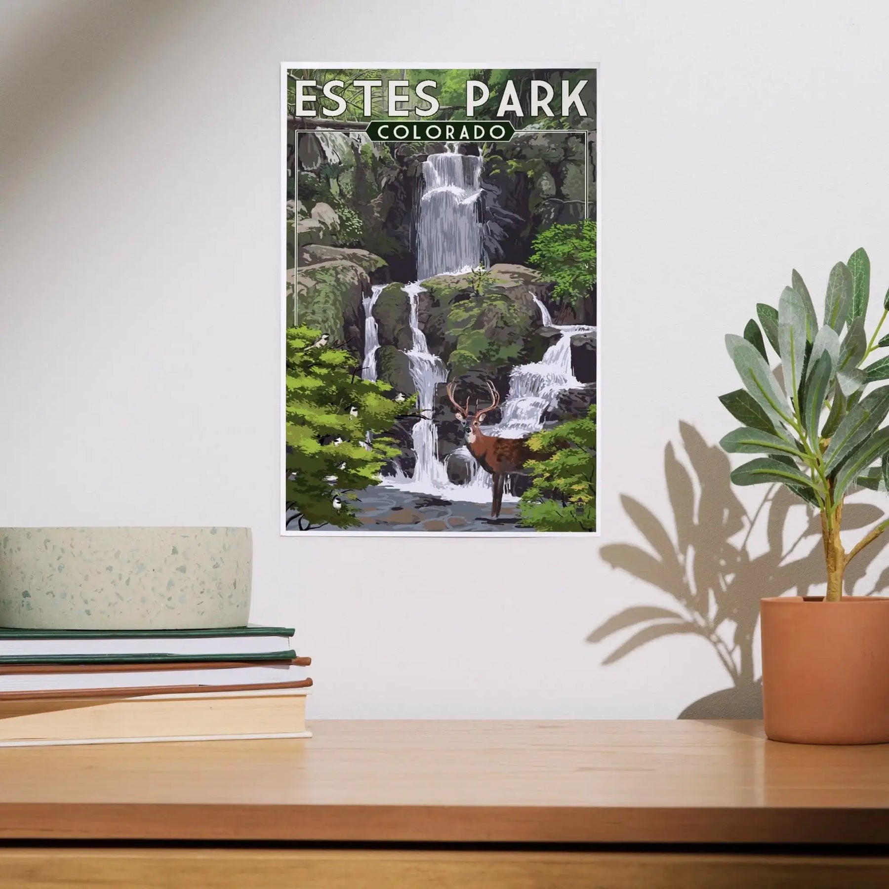 Estes Park, Colorado, Deer and Falls, Painterly Series, Art & Giclee Prints