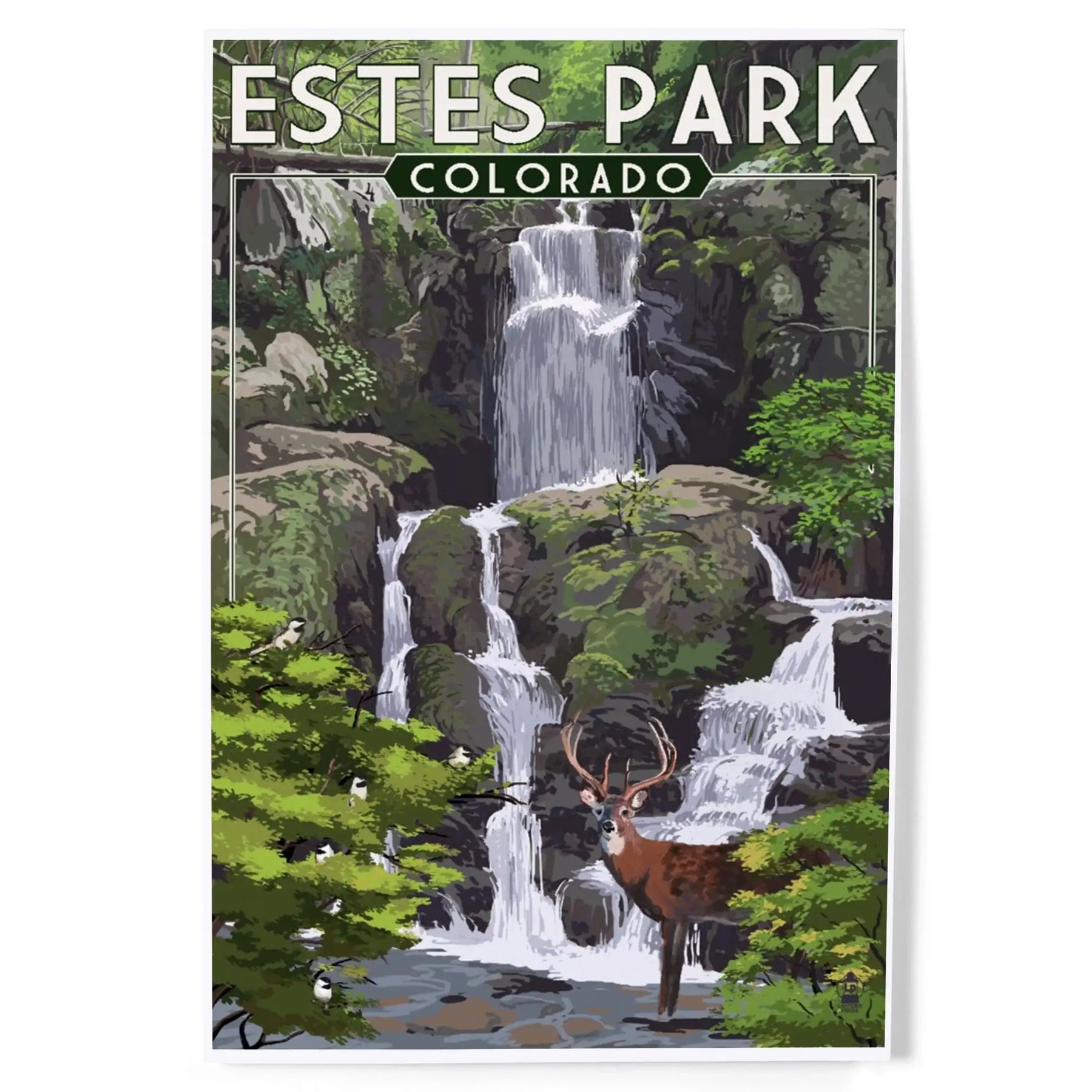 Estes Park, Colorado, Deer and Falls, Painterly Series, Art & Giclee Prints - Lantern Press