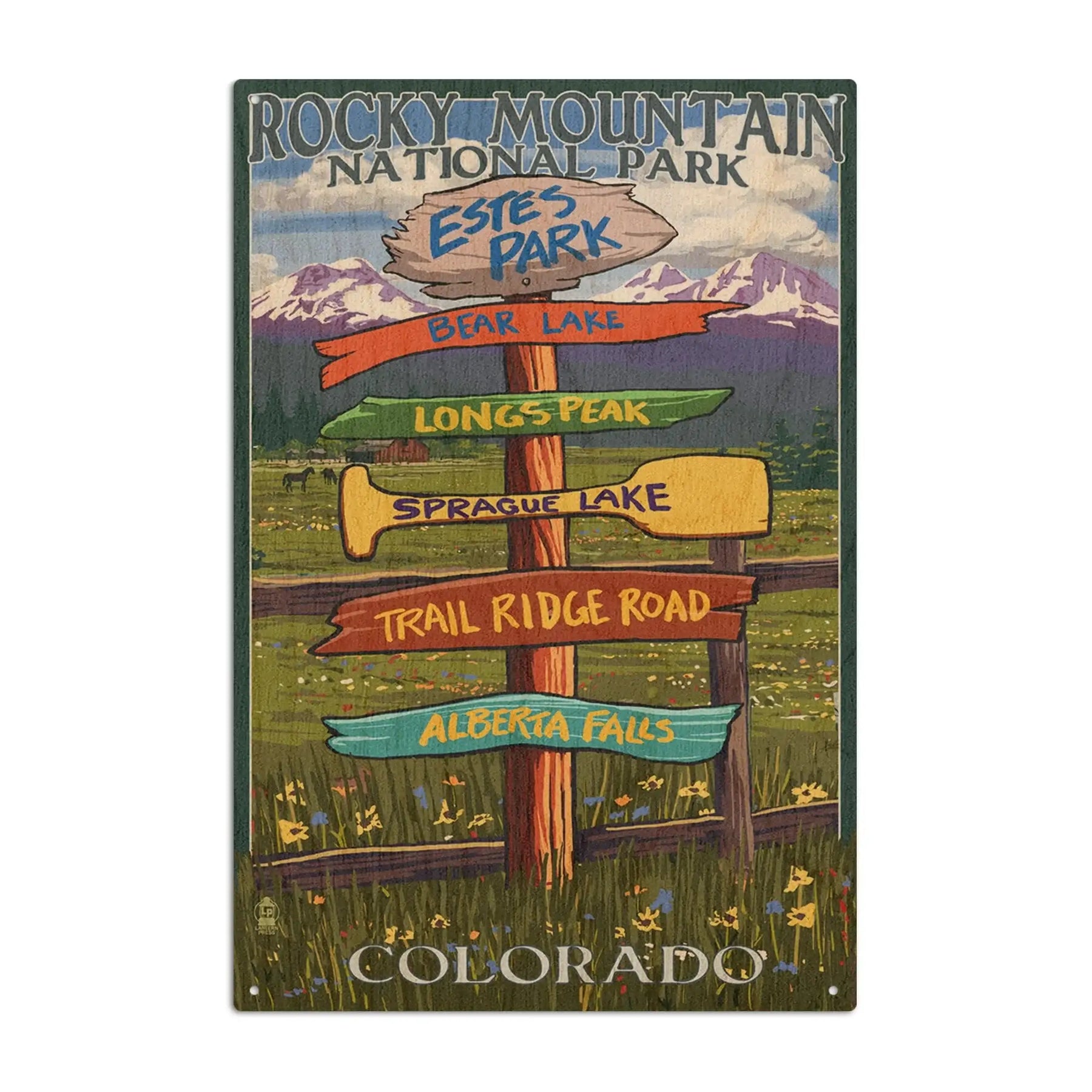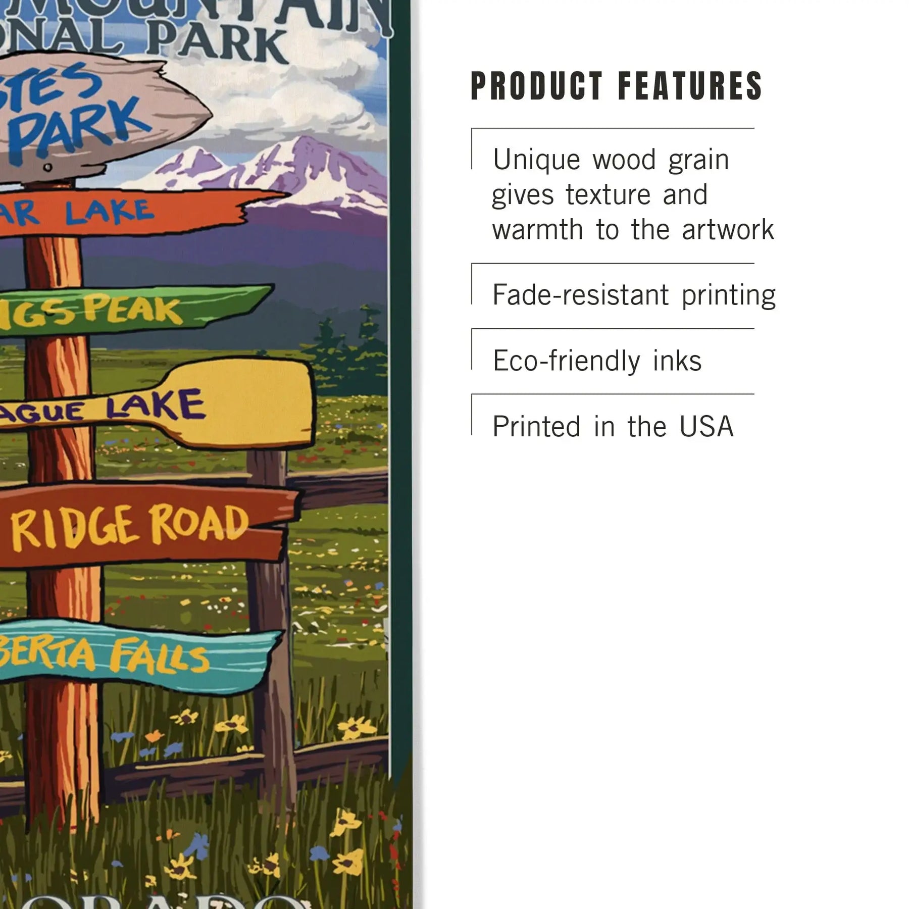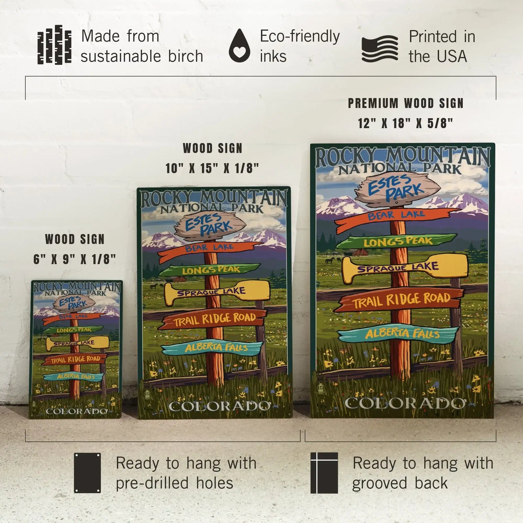 Estes Park, Colorado, Destinations Sign, Lantern Press Artwork, Wood Signs and Postcards