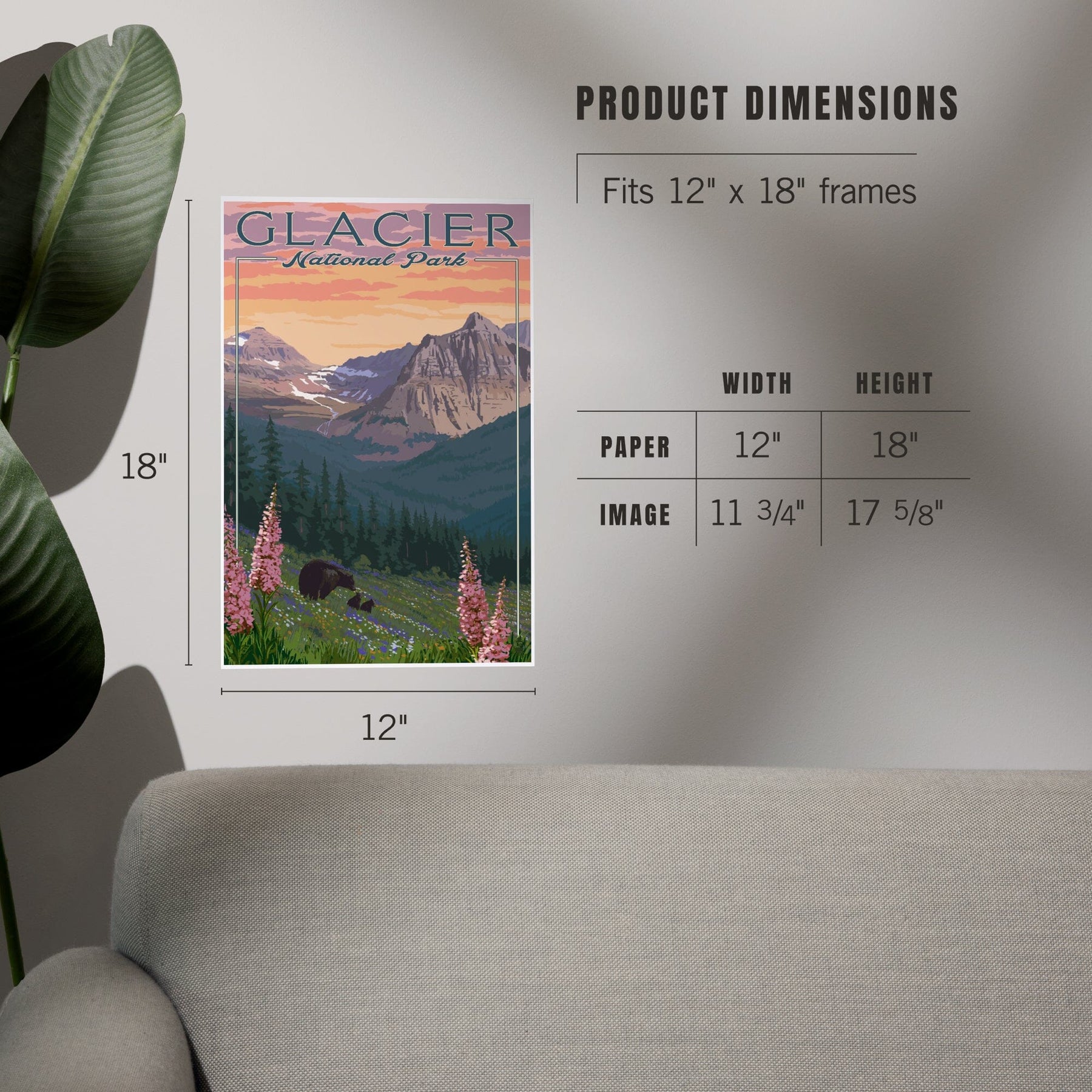 Glacier National Park, Montana, Bear and Spring Flowers, Mountains, Art & Giclee Prints