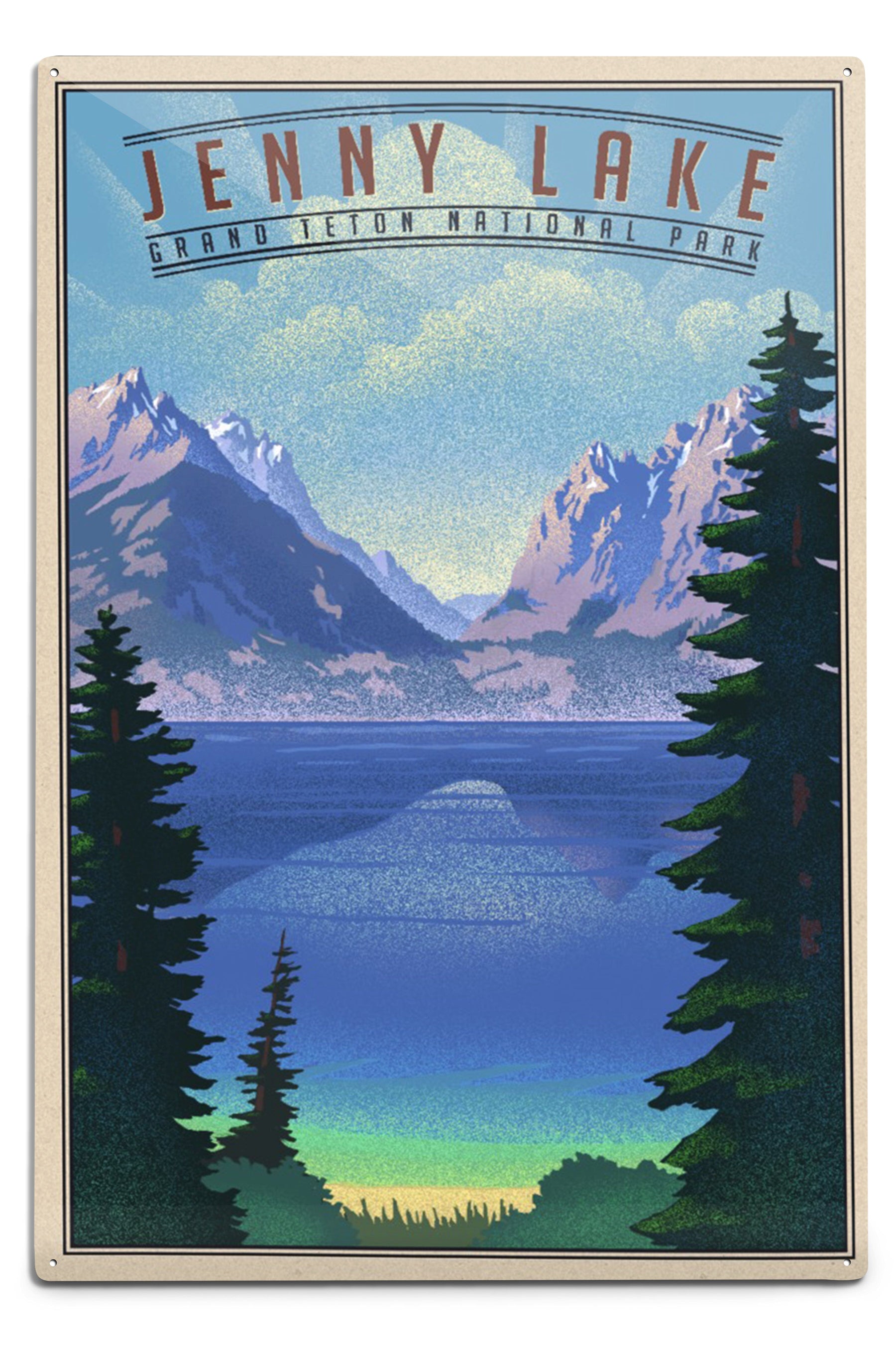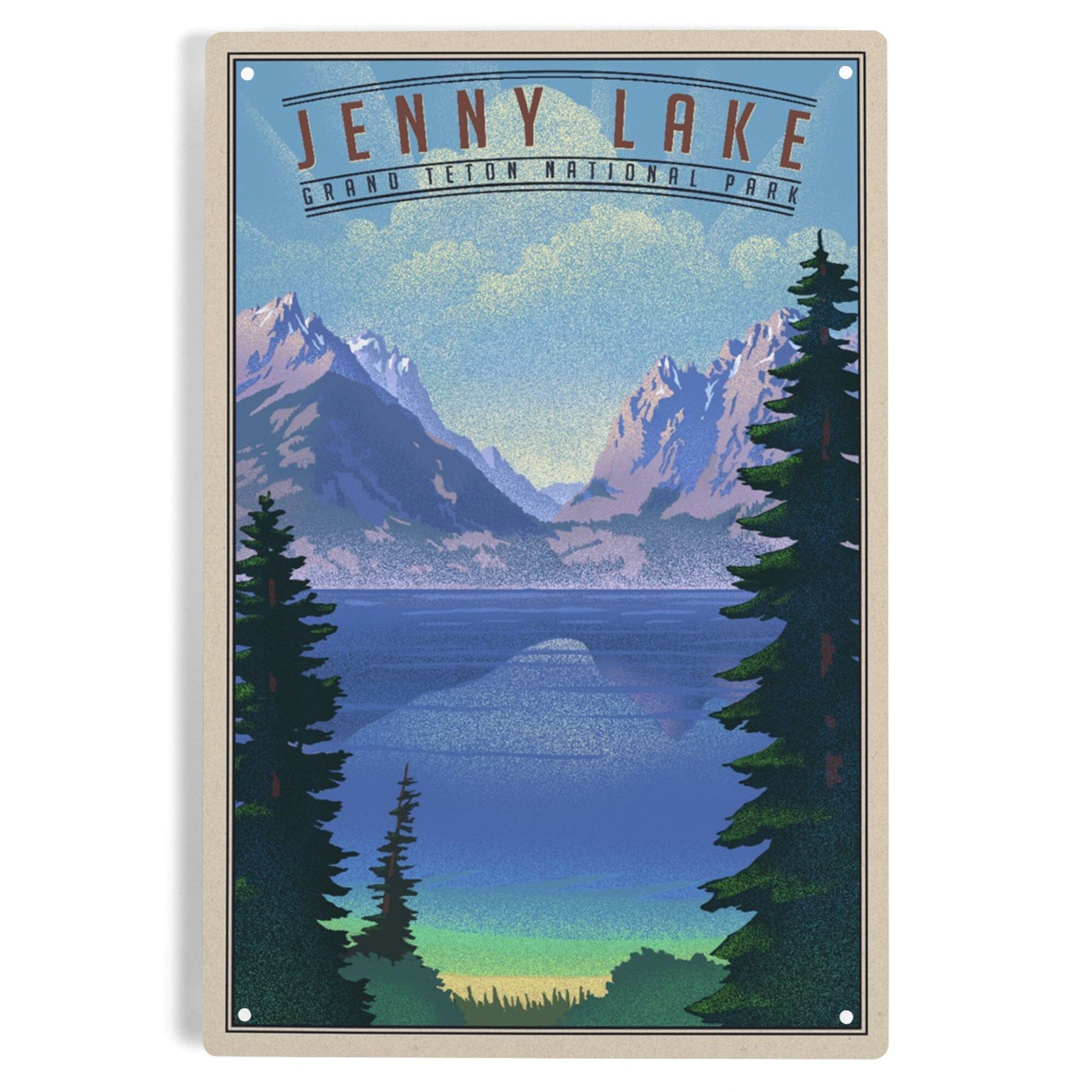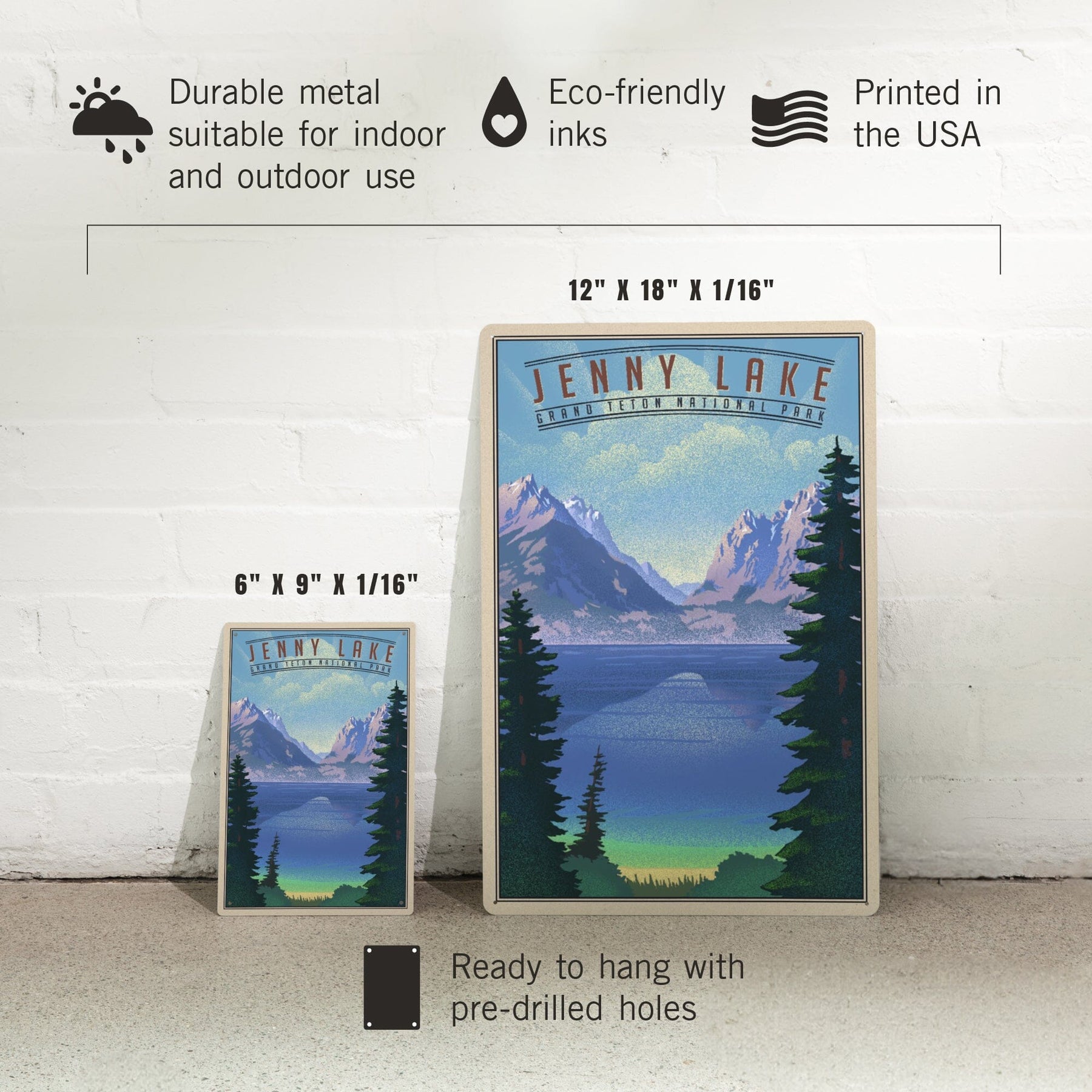 Grand Teton National Park, Wyoming, Jenny Lake, Lithograph National Park Series, Metal Signs
