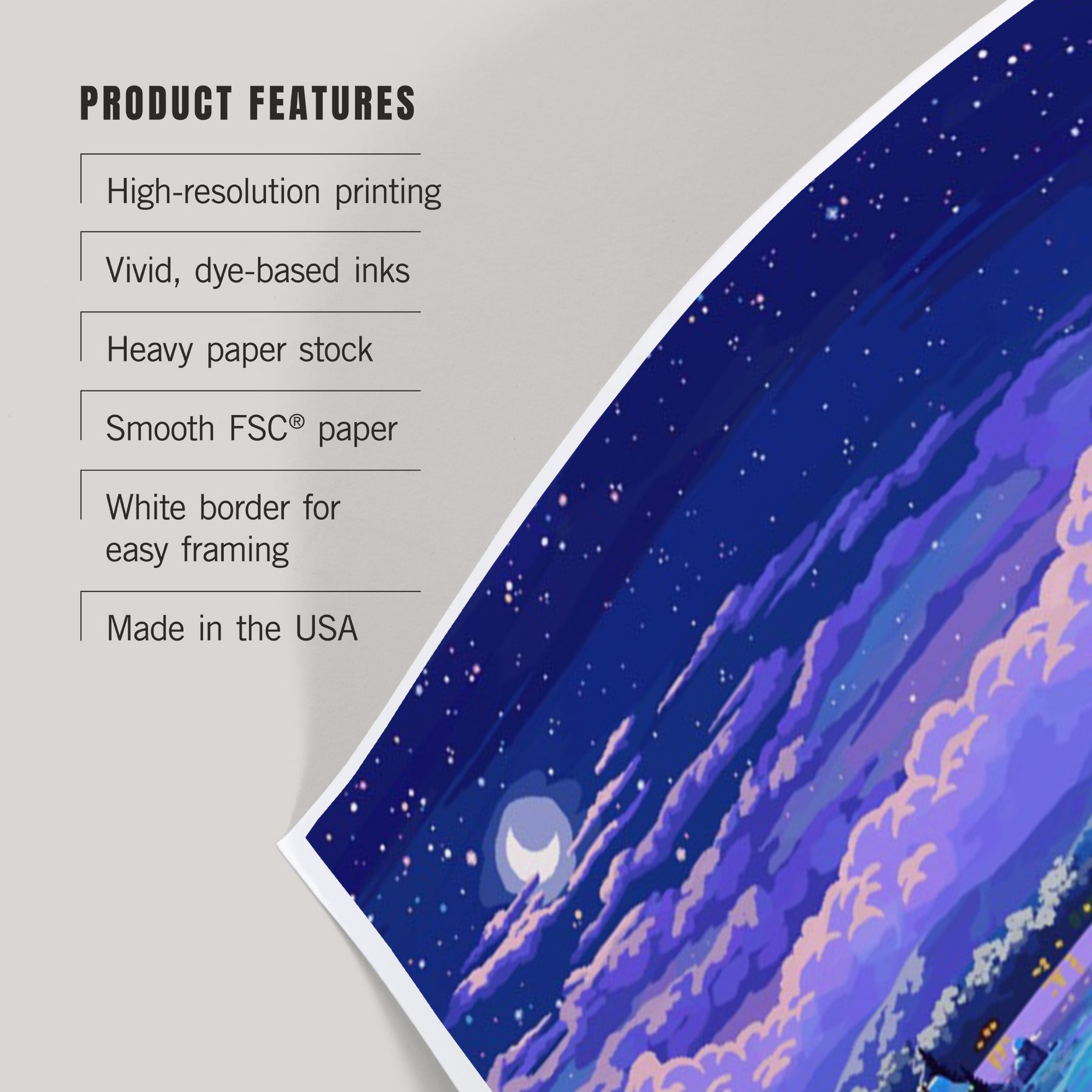 • Printed on heavy stock paper using a high-end digital printing press