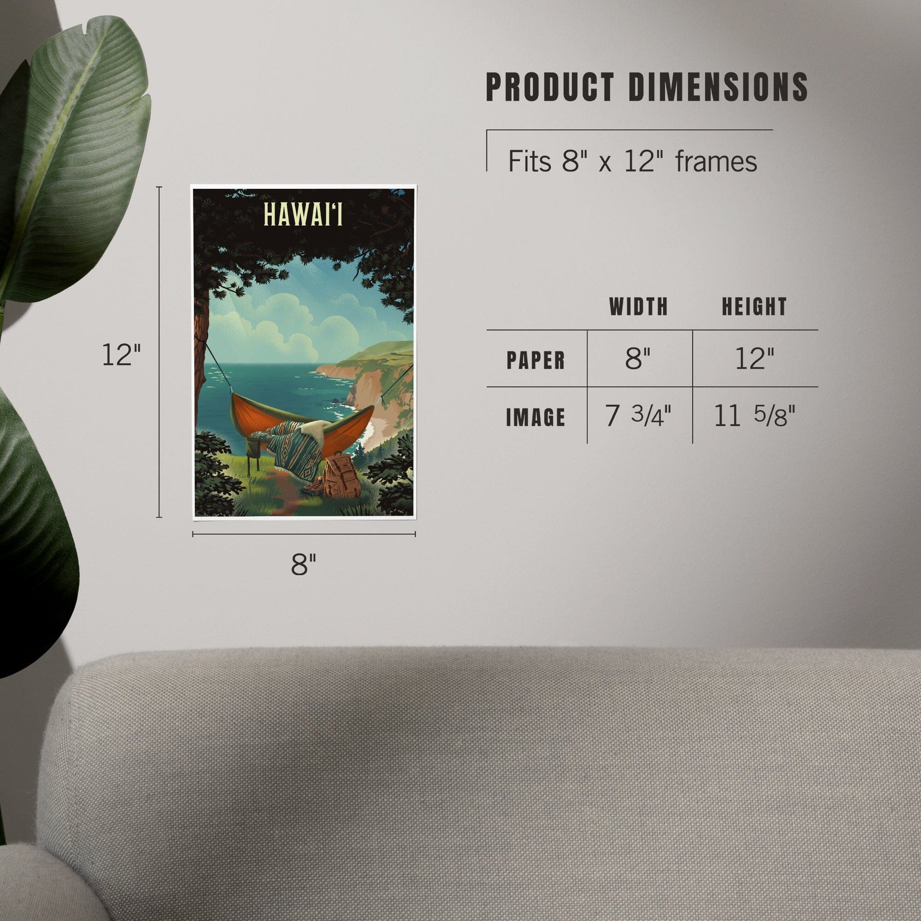 Hawai‘i, Today's Office, Coastal Series, Hammock on Beach, Art & Giclee Prints Art Lantern Press