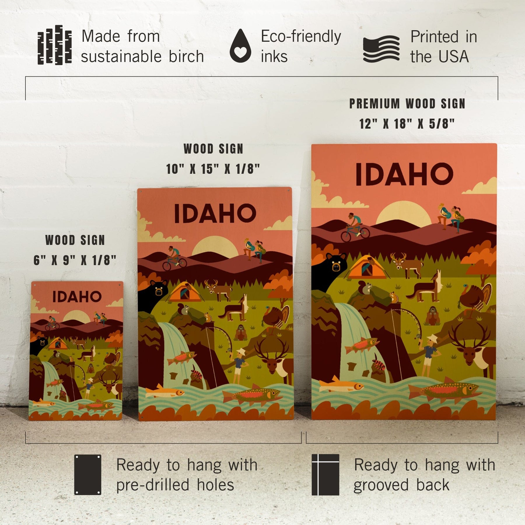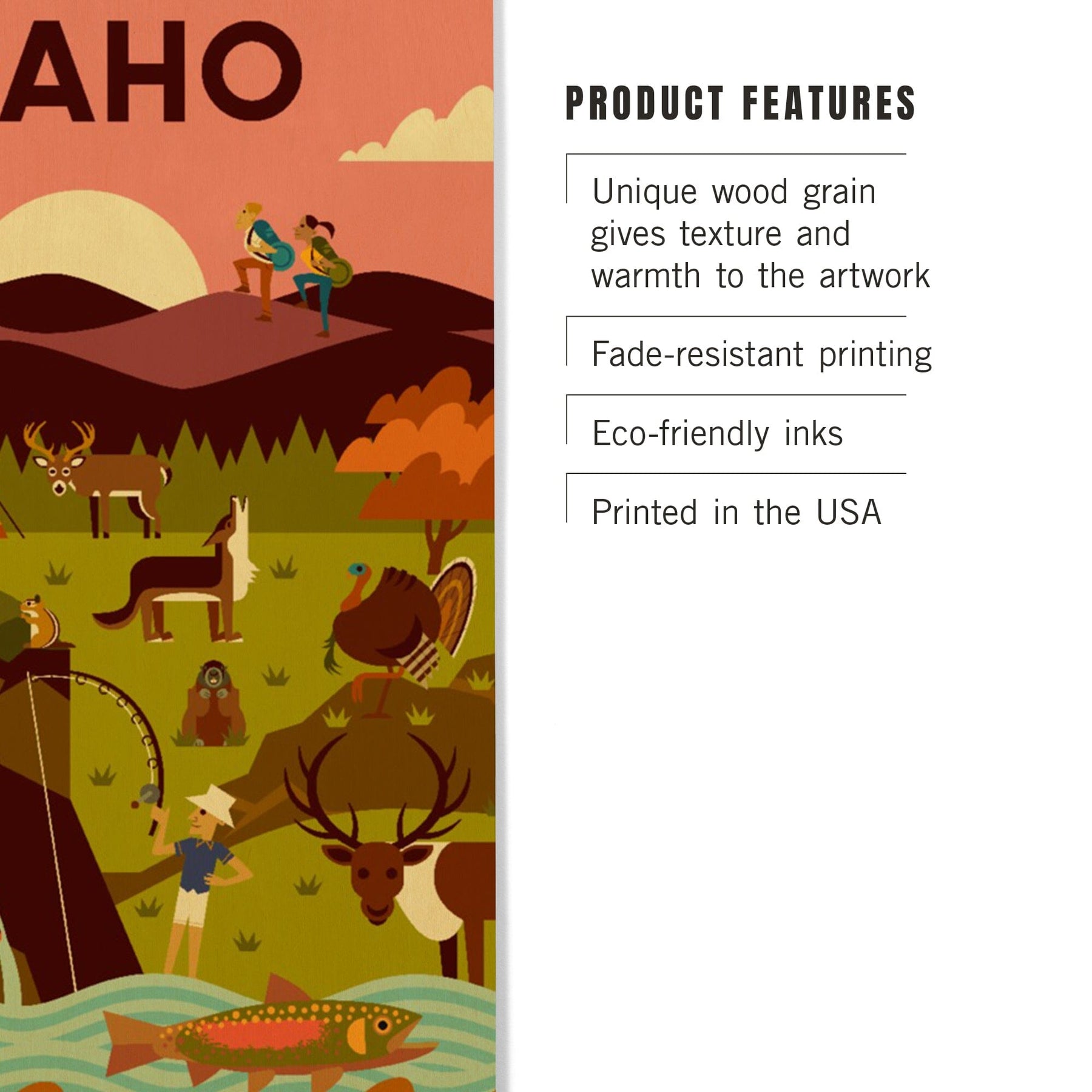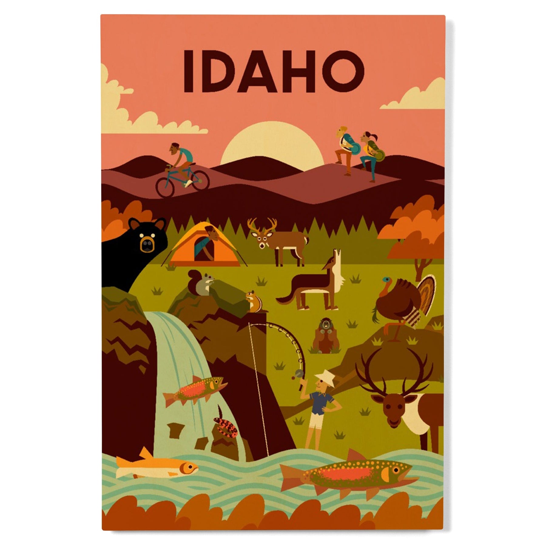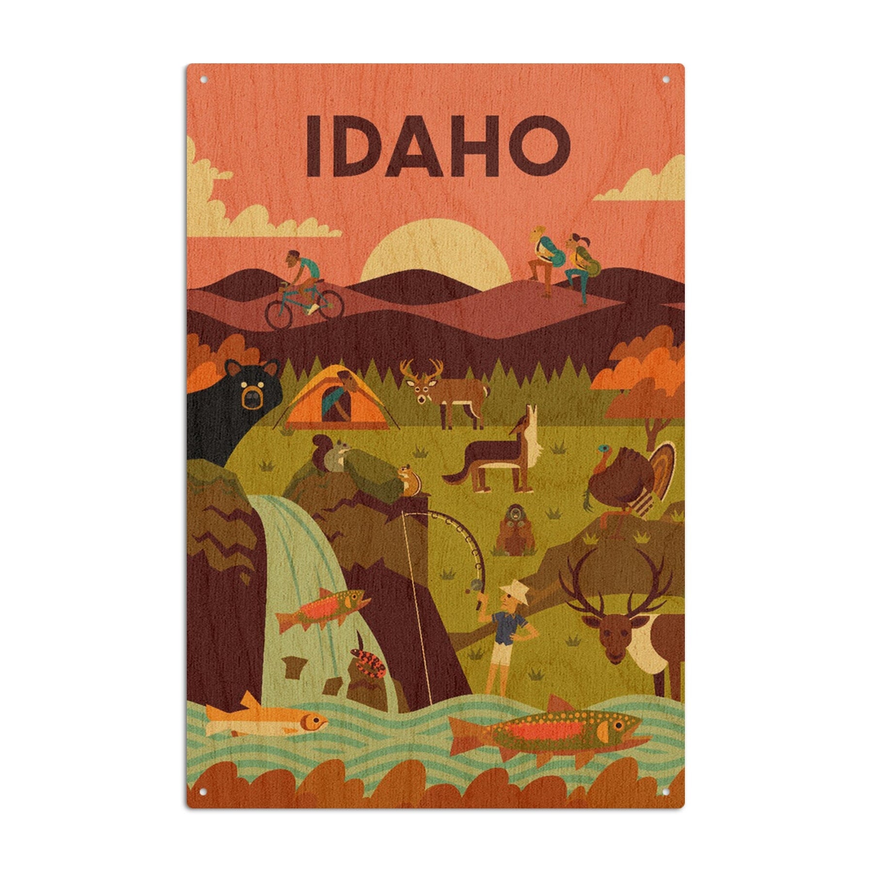 Idaho, Geometric, Lantern Press Artwork, Wood Signs and Postcards