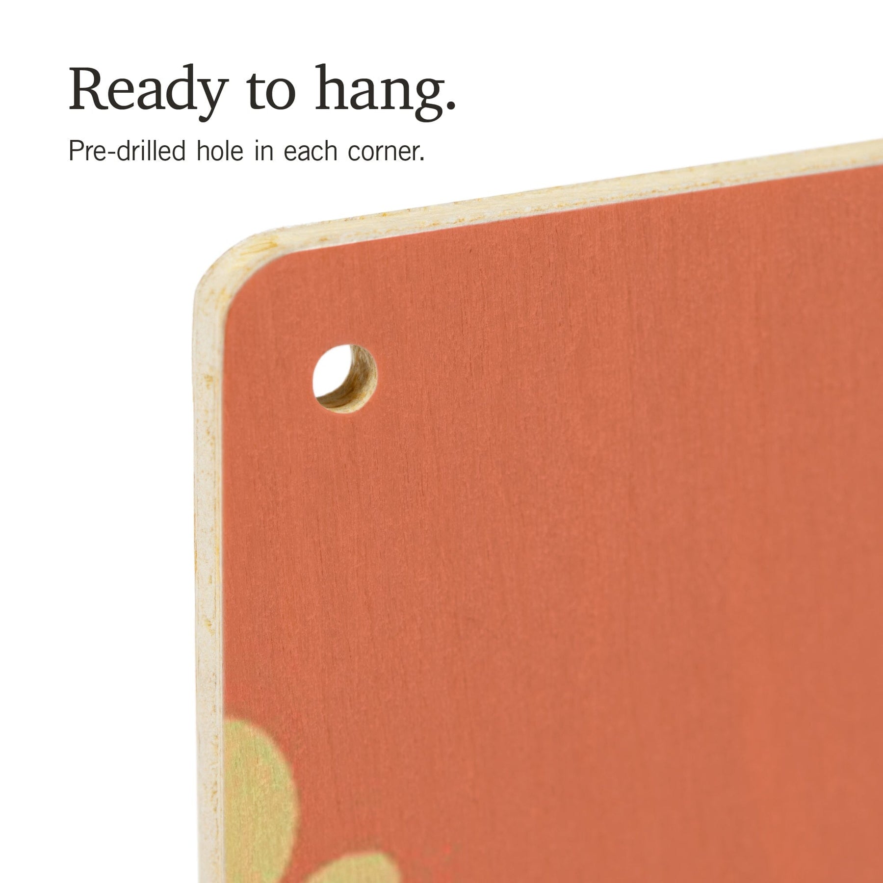• Hole in each corner, ready to hang