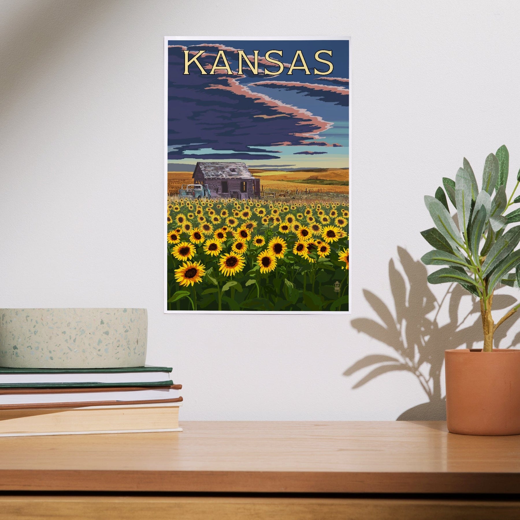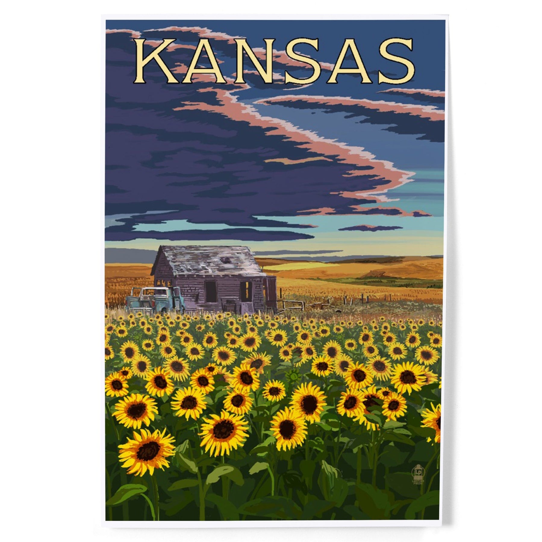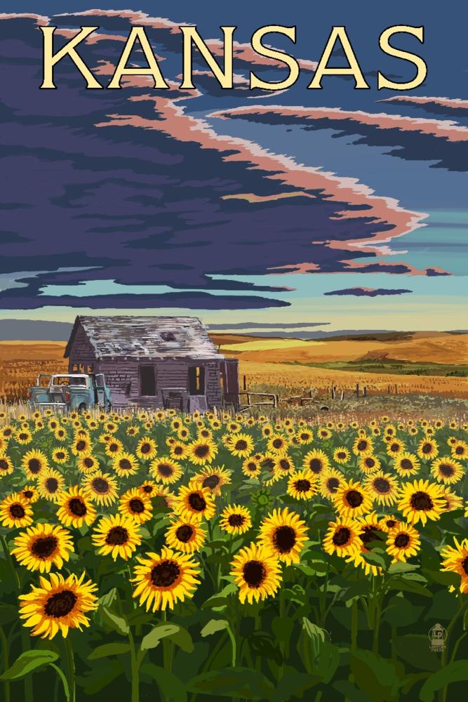 Kansas, Wheat Fields, Shack and Sunflowers, Art & Giclee Prints - Lantern Press