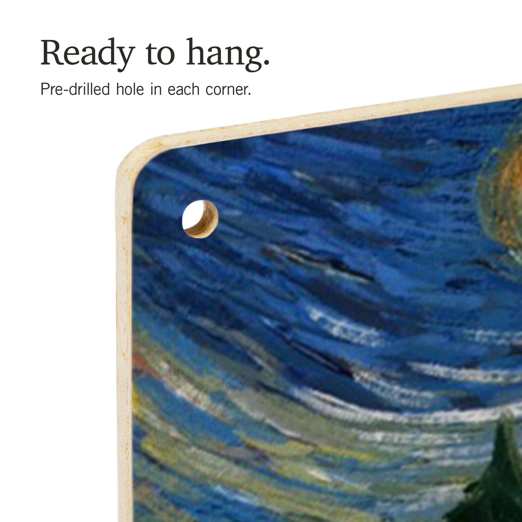 • Hole in each corner, ready to hang
