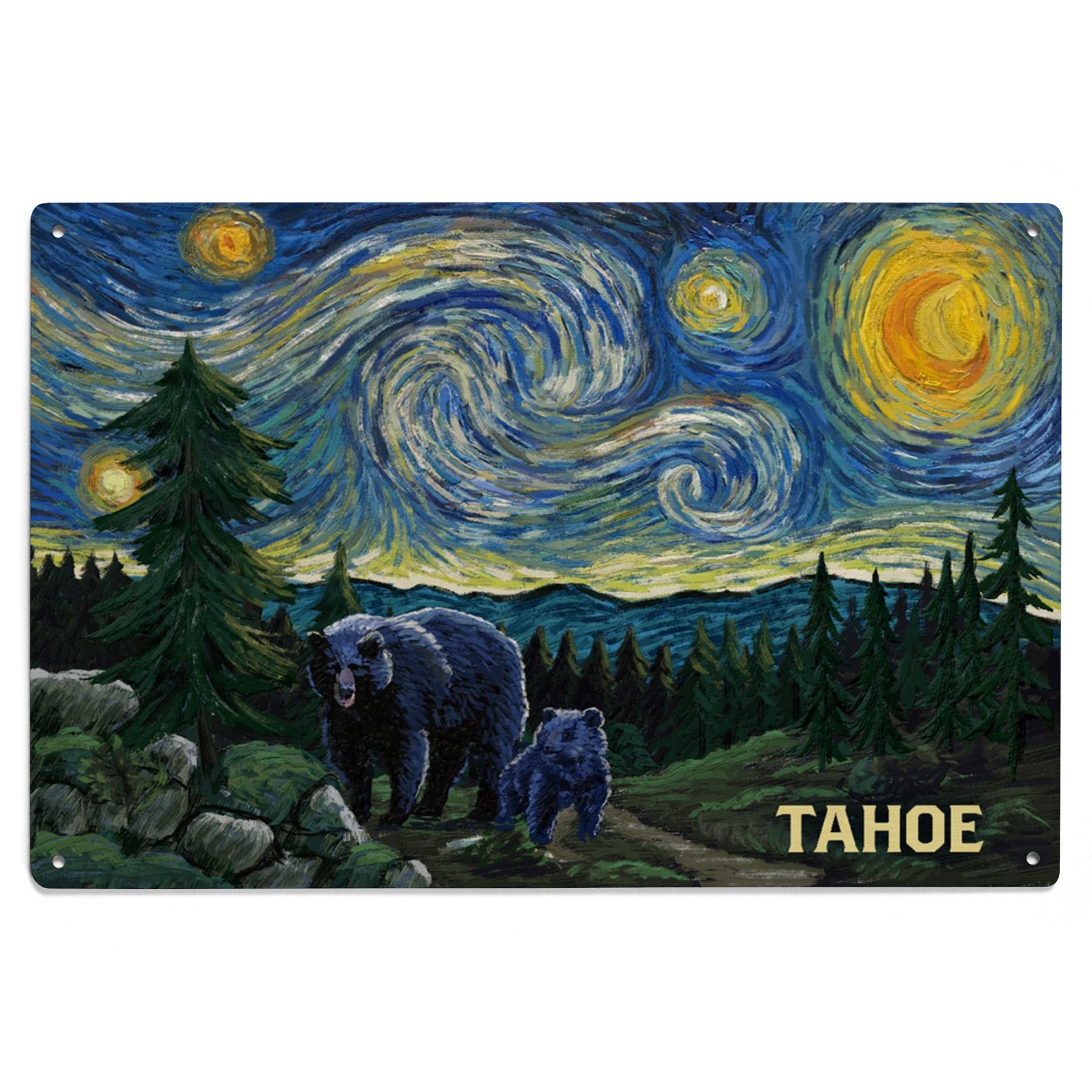 Lake Tahoe, California, Starry Night, Black Bear and Cub, Wood Signs and Postcards