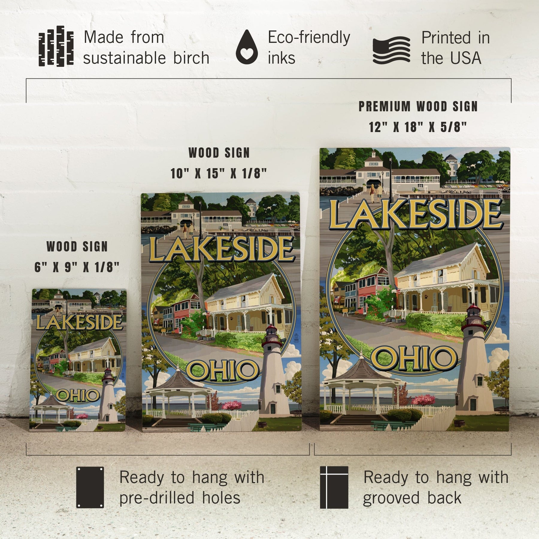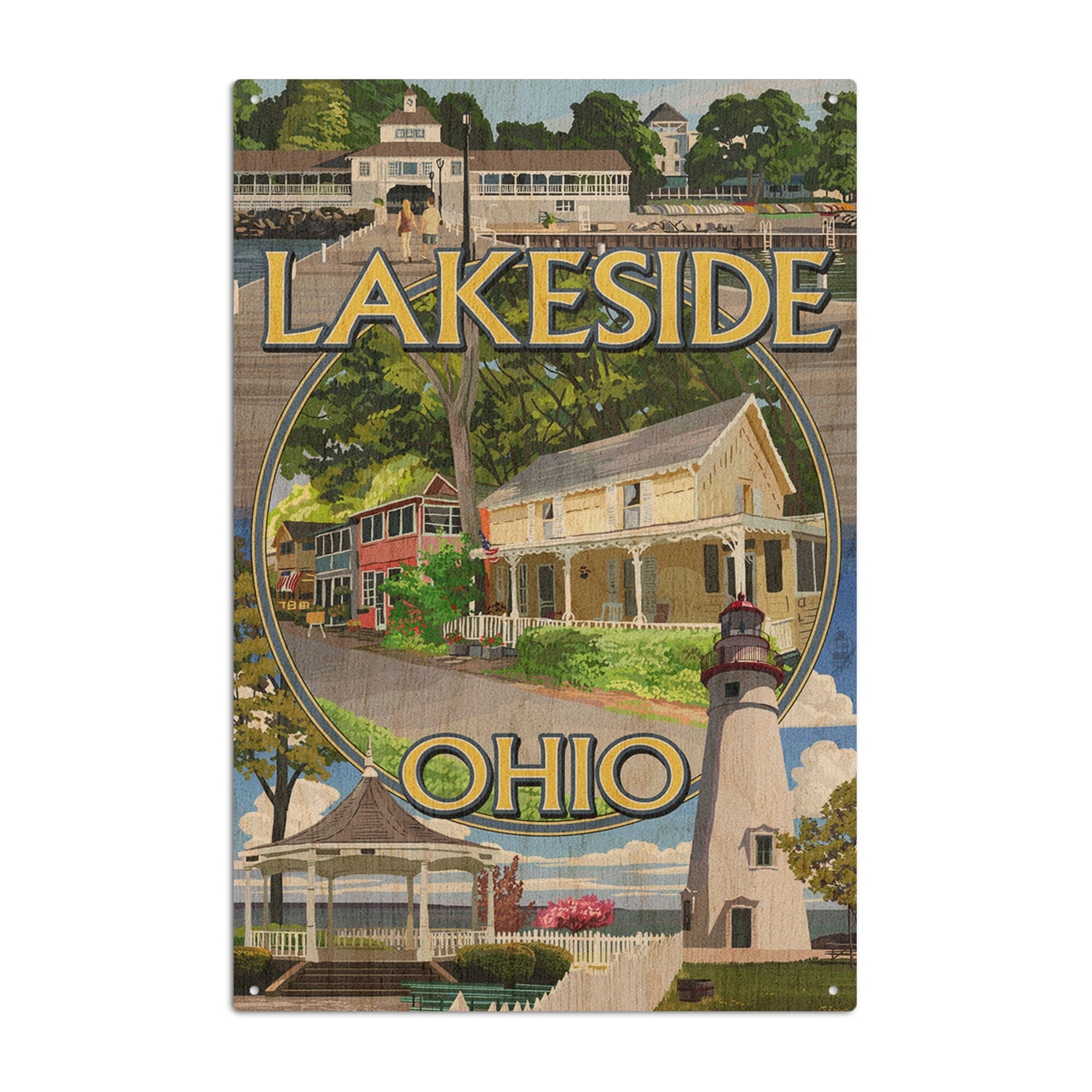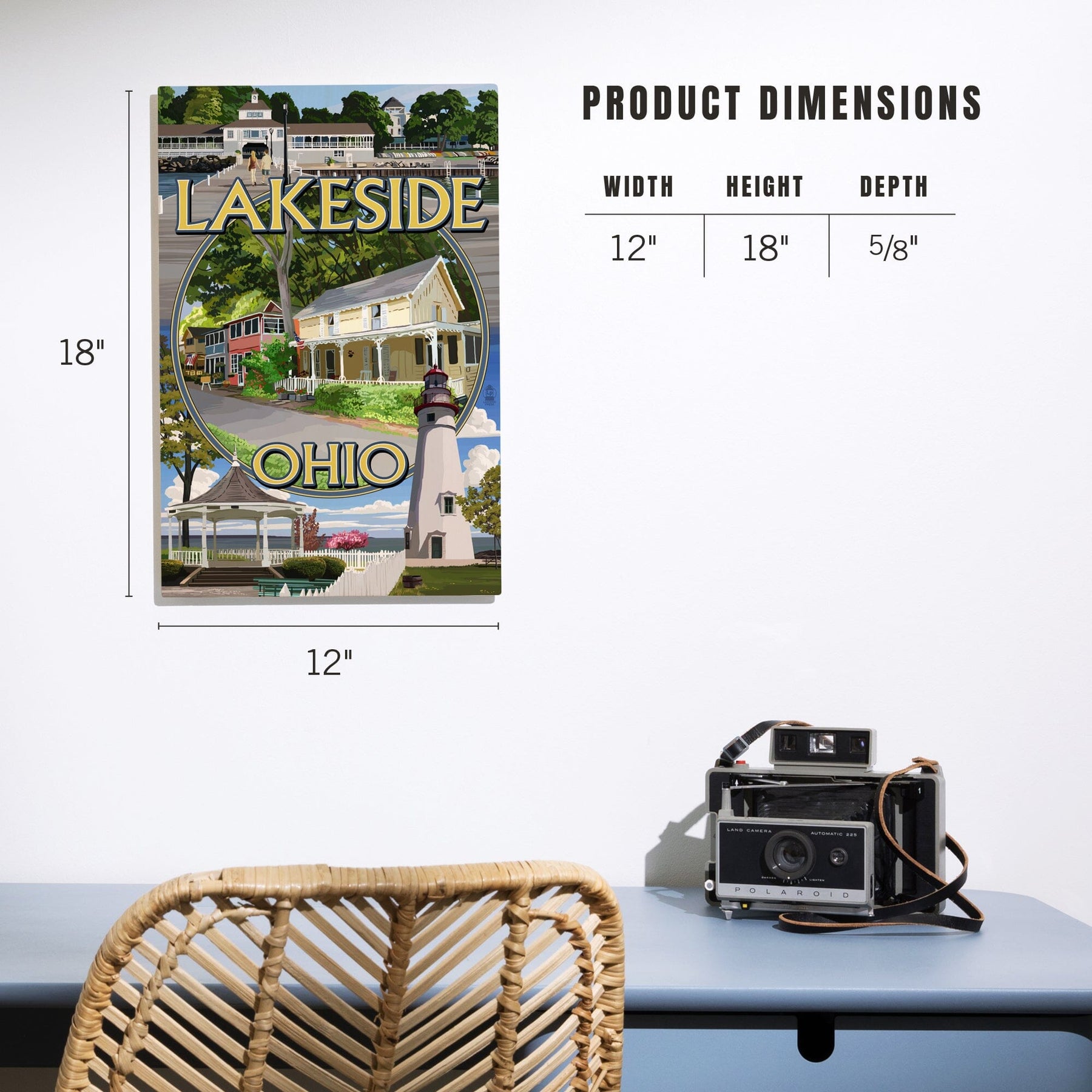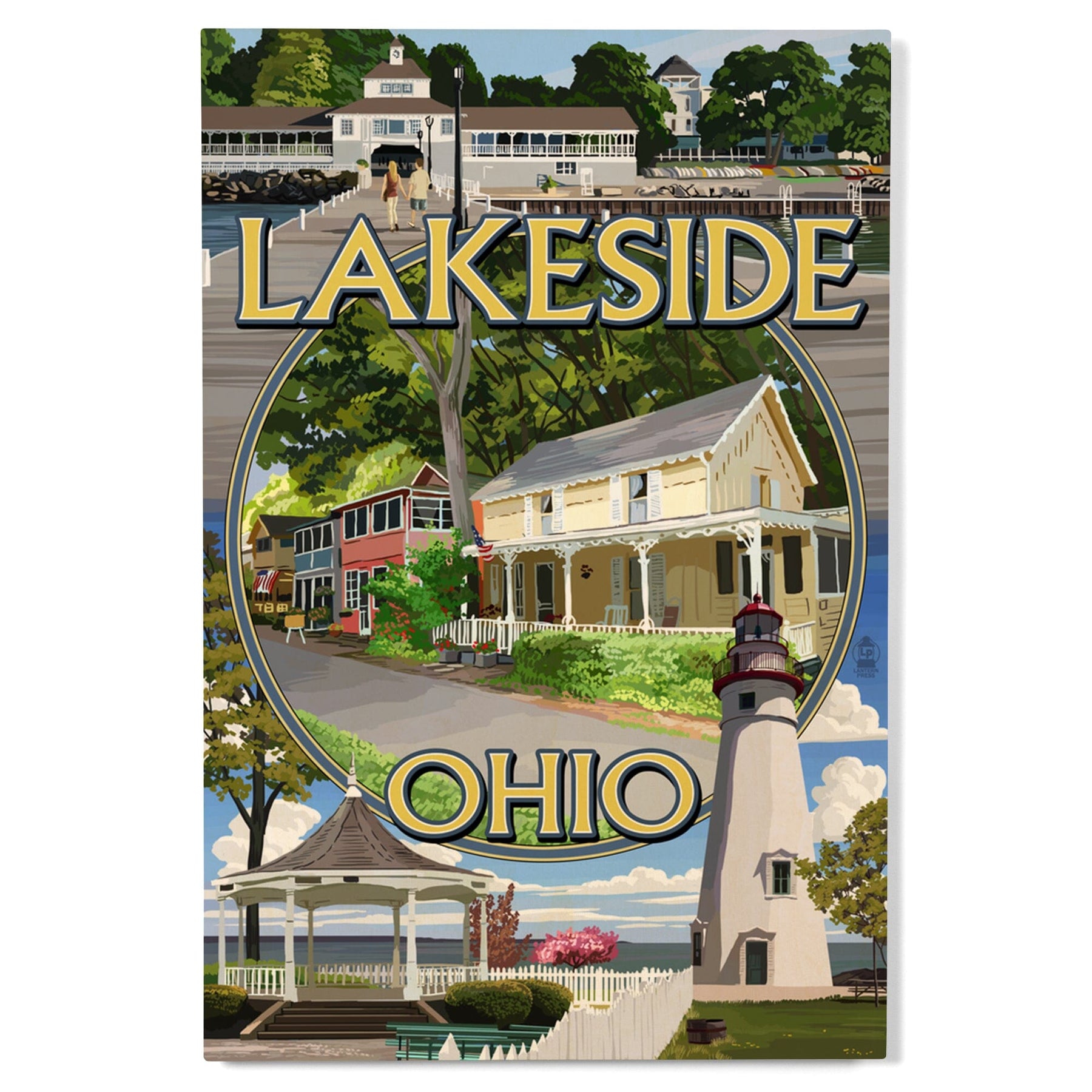 Lakeside, Ohio, Montage Scenes, Lantern Press Poster, Wood Signs and Postcards - Lantern Press