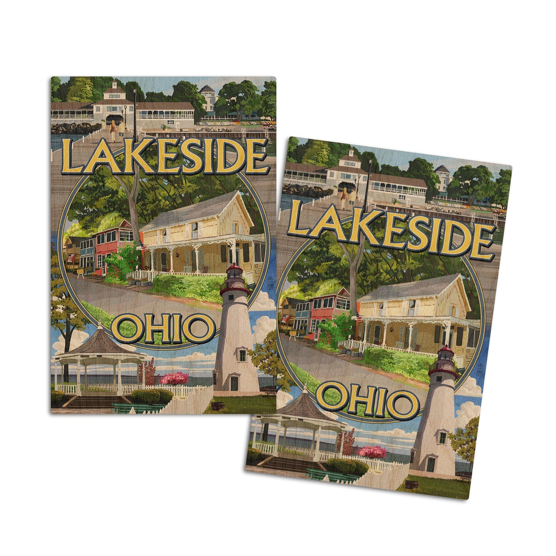 Lakeside, Ohio, Montage Scenes, Lantern Press Poster, Wood Signs and Postcards