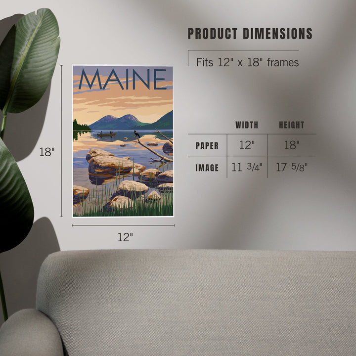 Maine, Lake Scene and Canoe, Art & Giclee Prints - Lantern Press