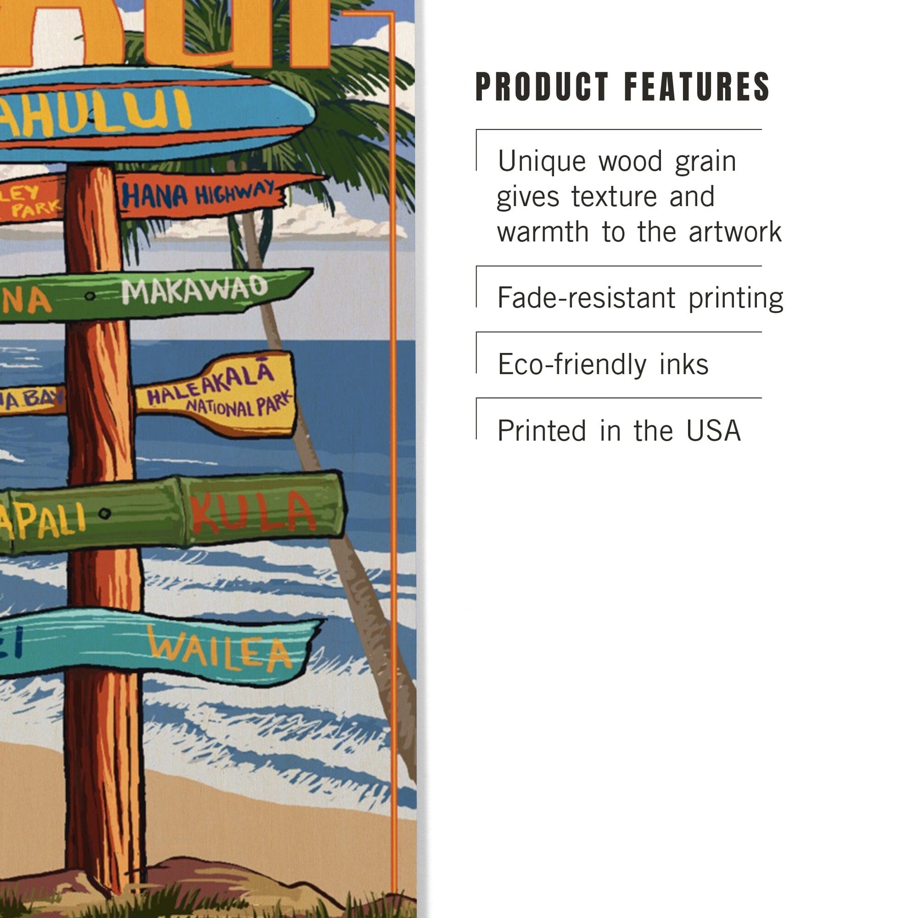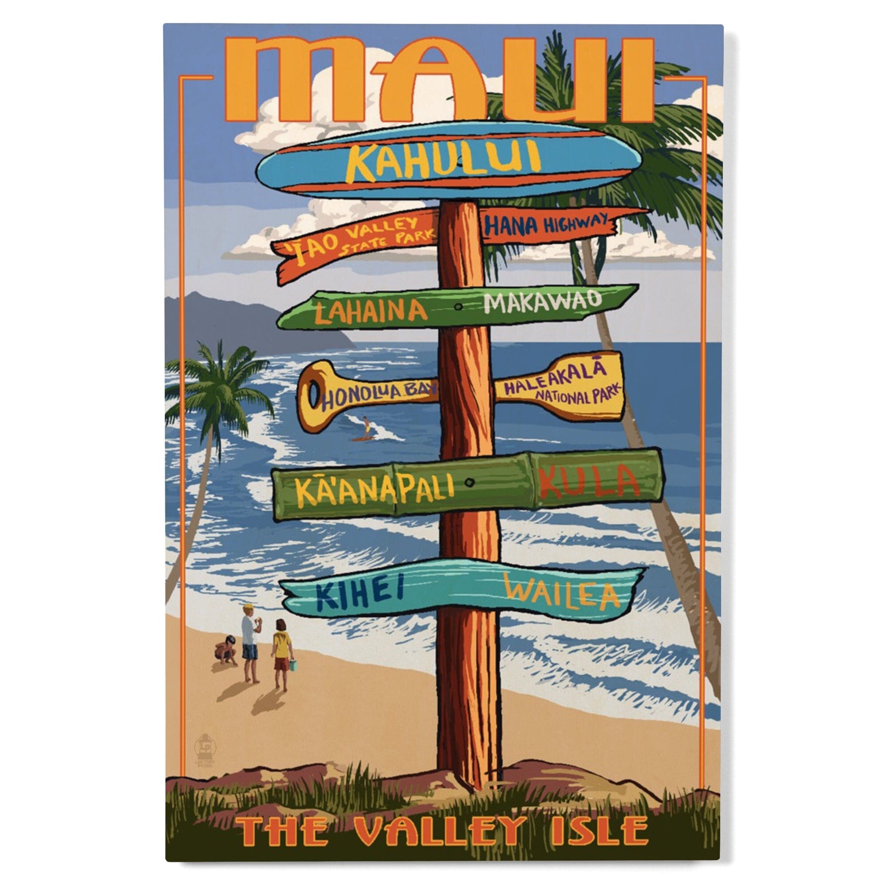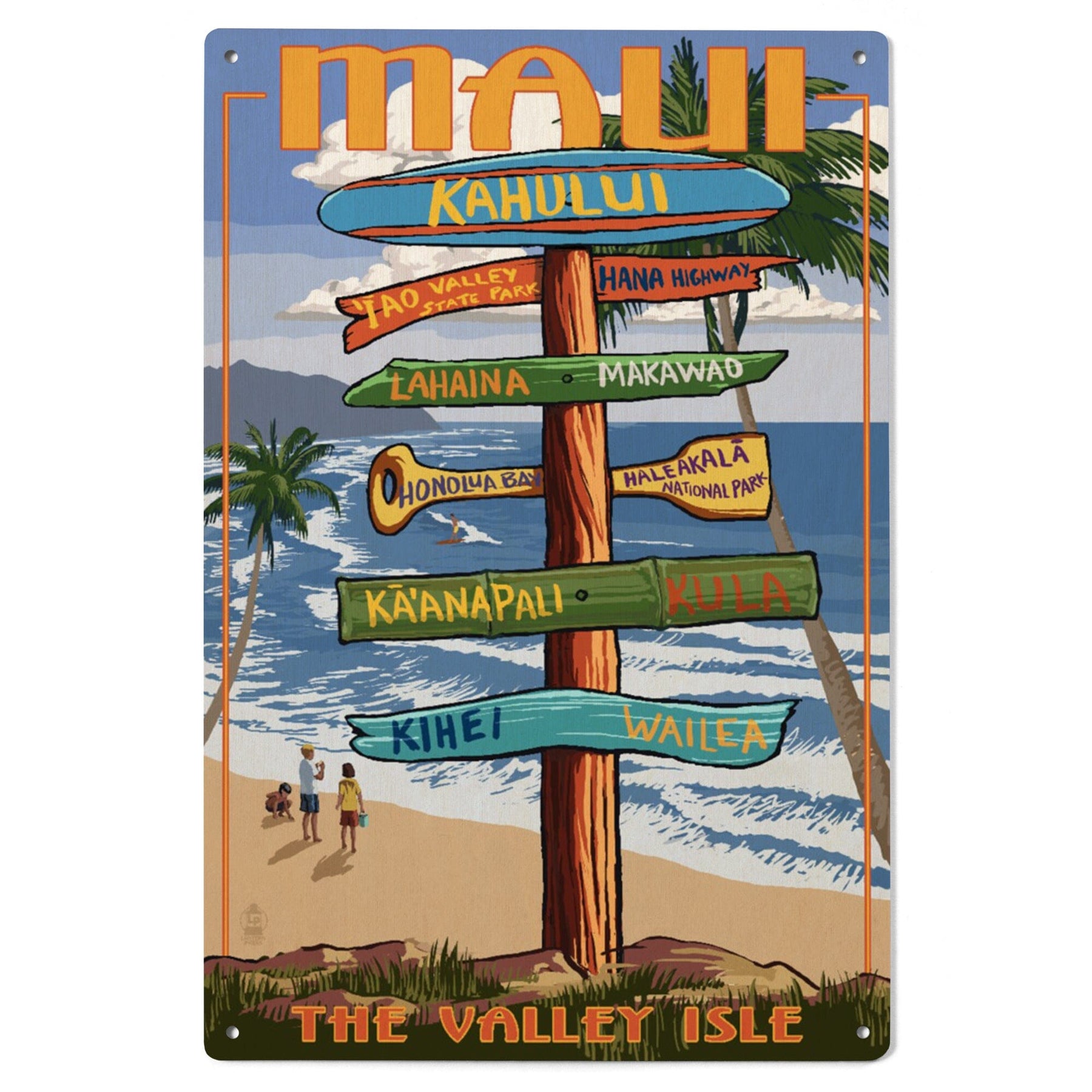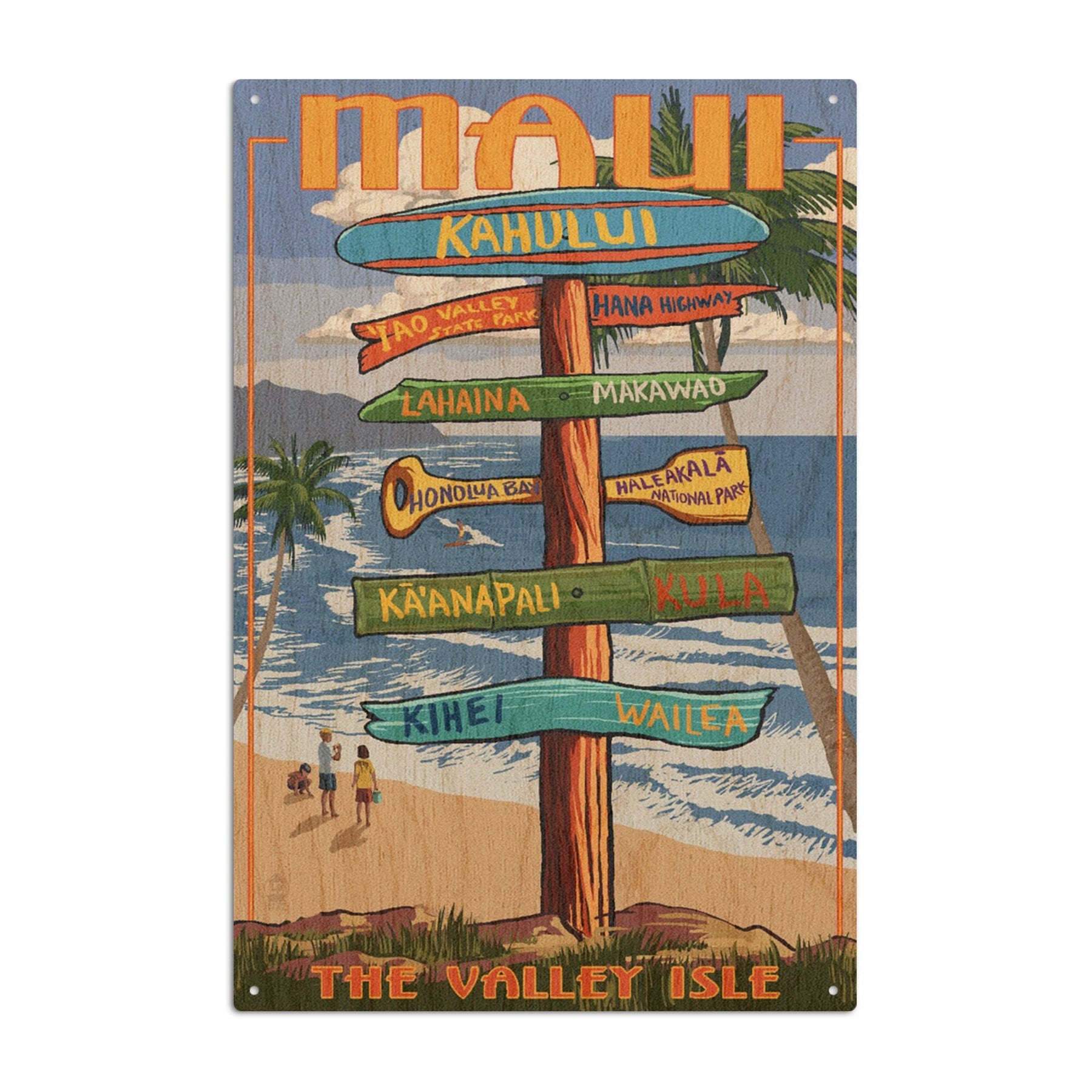 Maui, Hawaii, Destination Signpost, Lantern Press Artwork, Wood Signs and Postcards