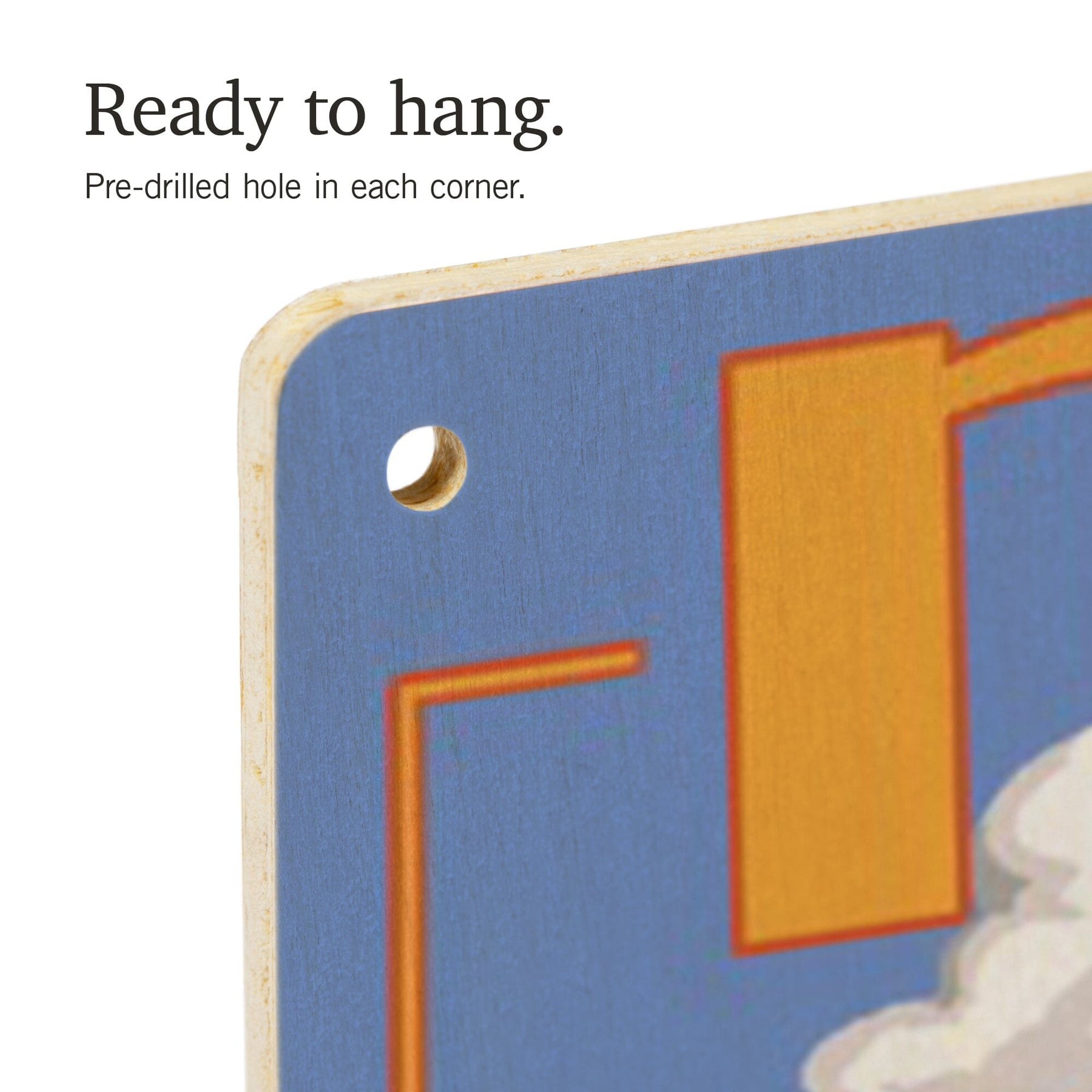 • Hole in each corner, ready to hang