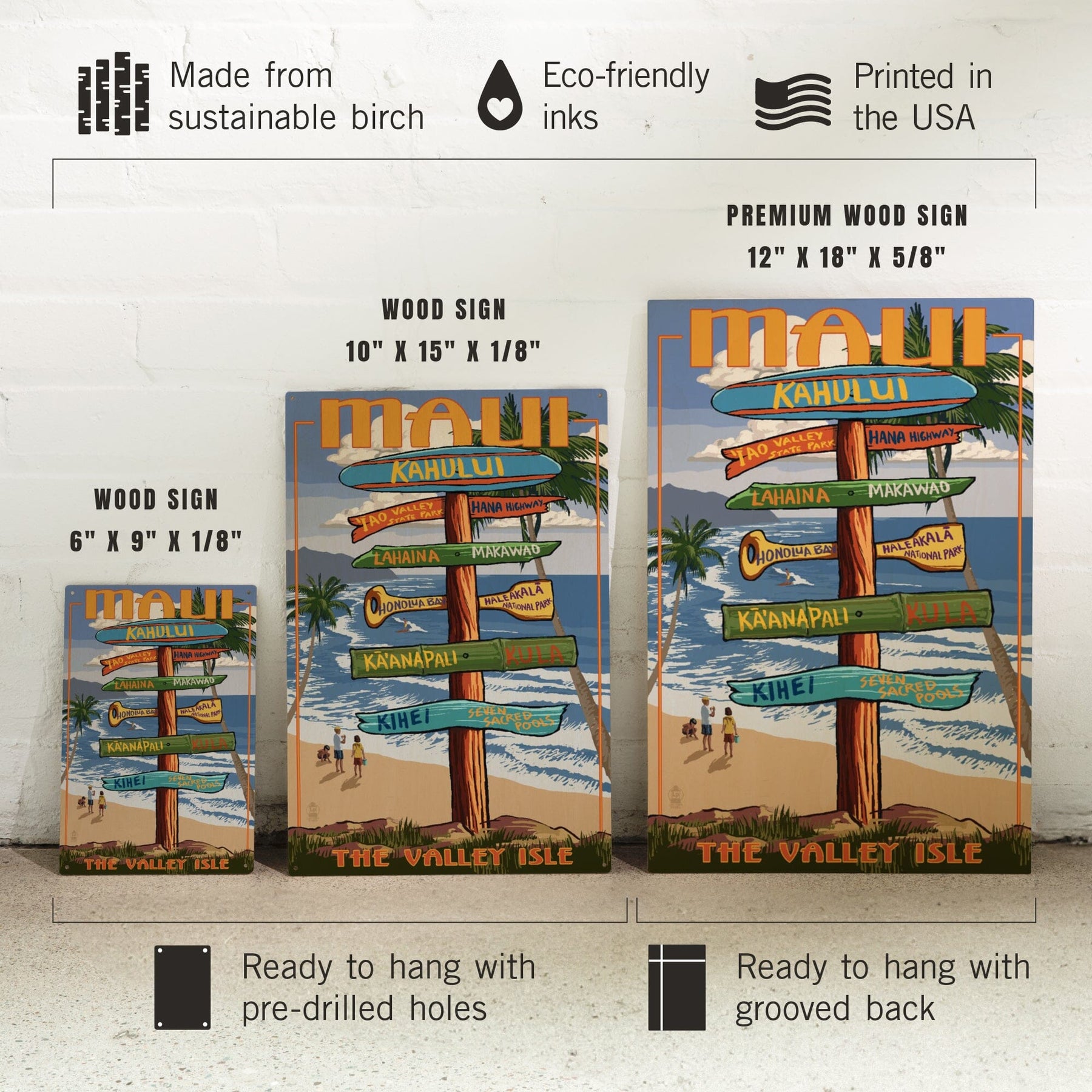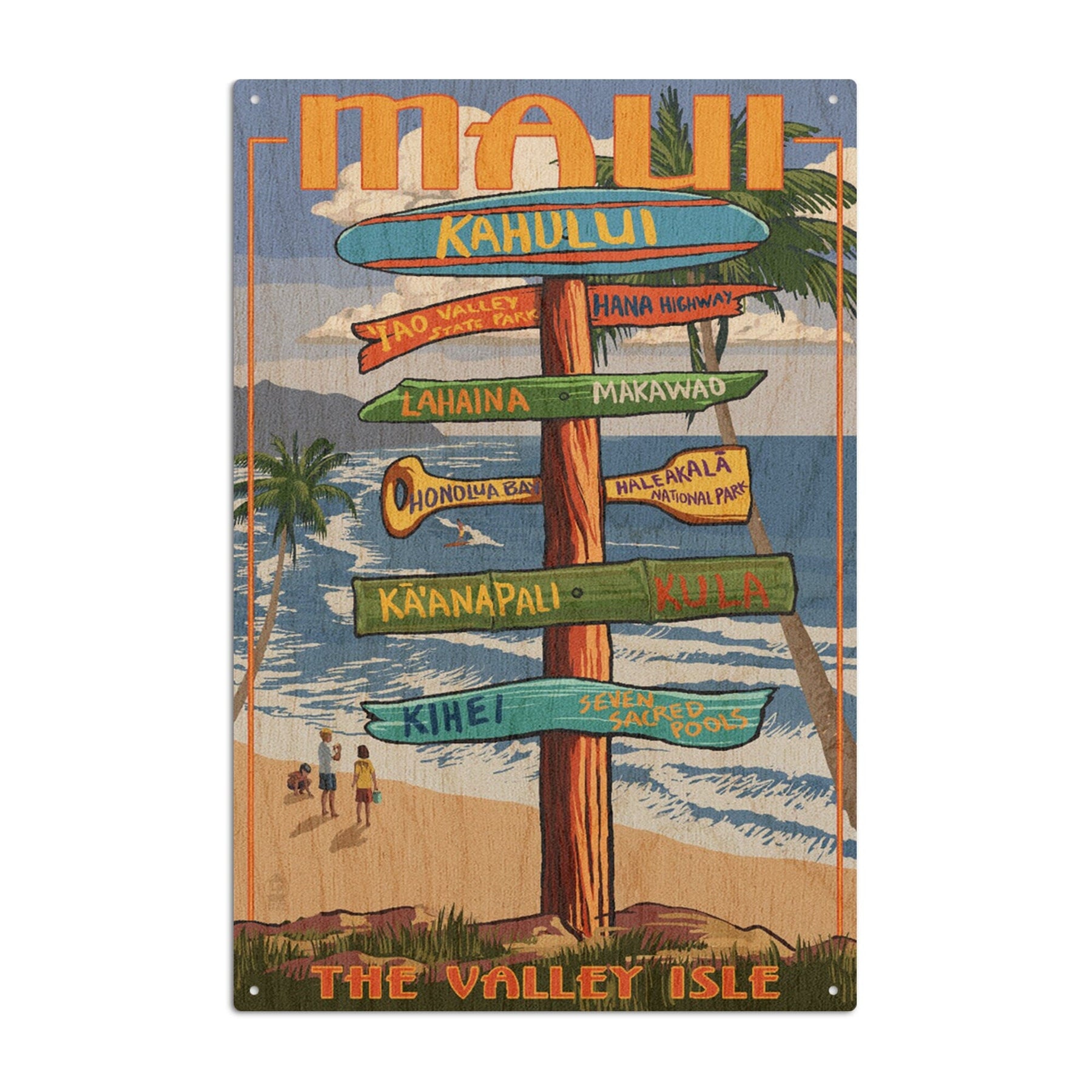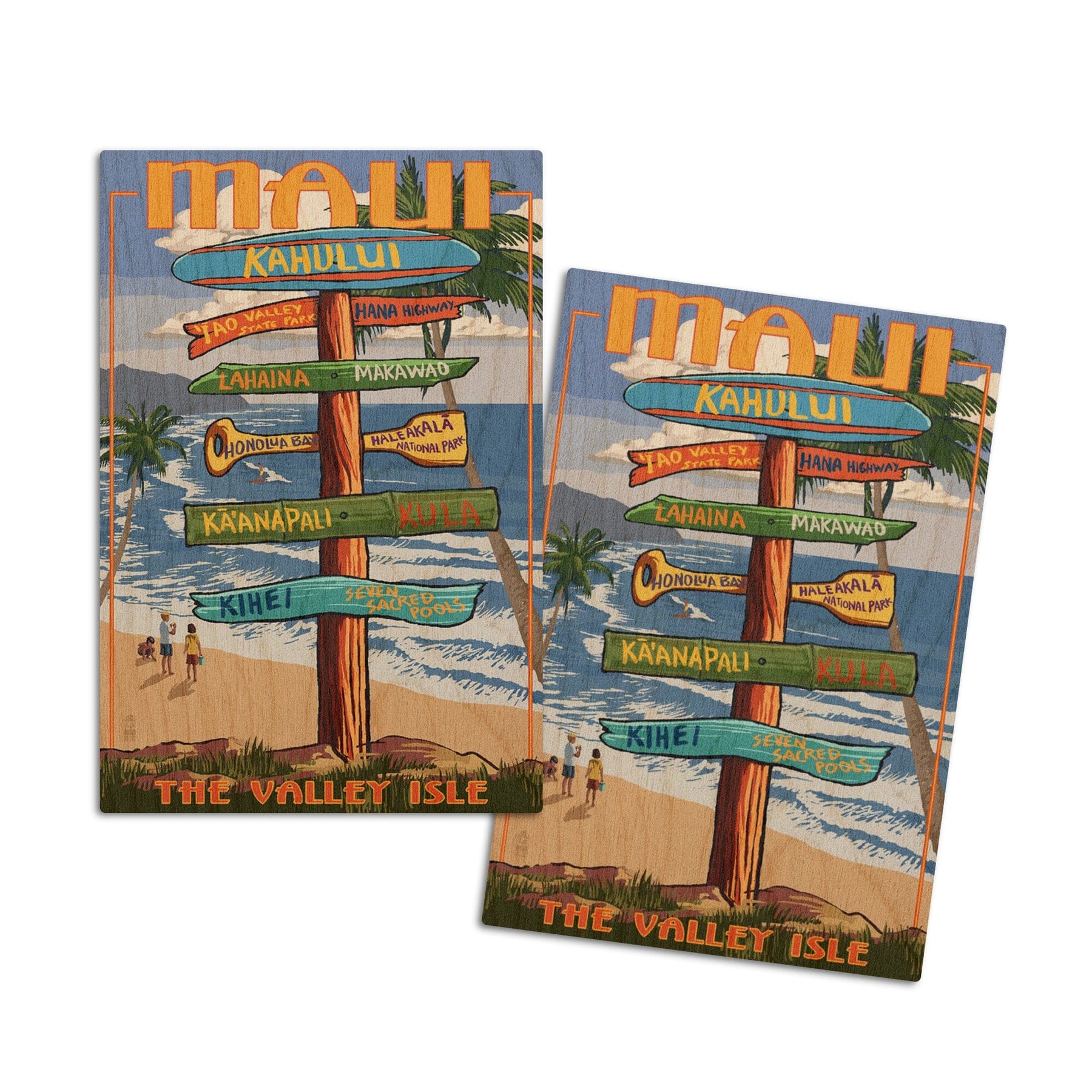 Maui, Hawaii, Signpost, Lantern Press Artwork, Wood Signs and Postcards