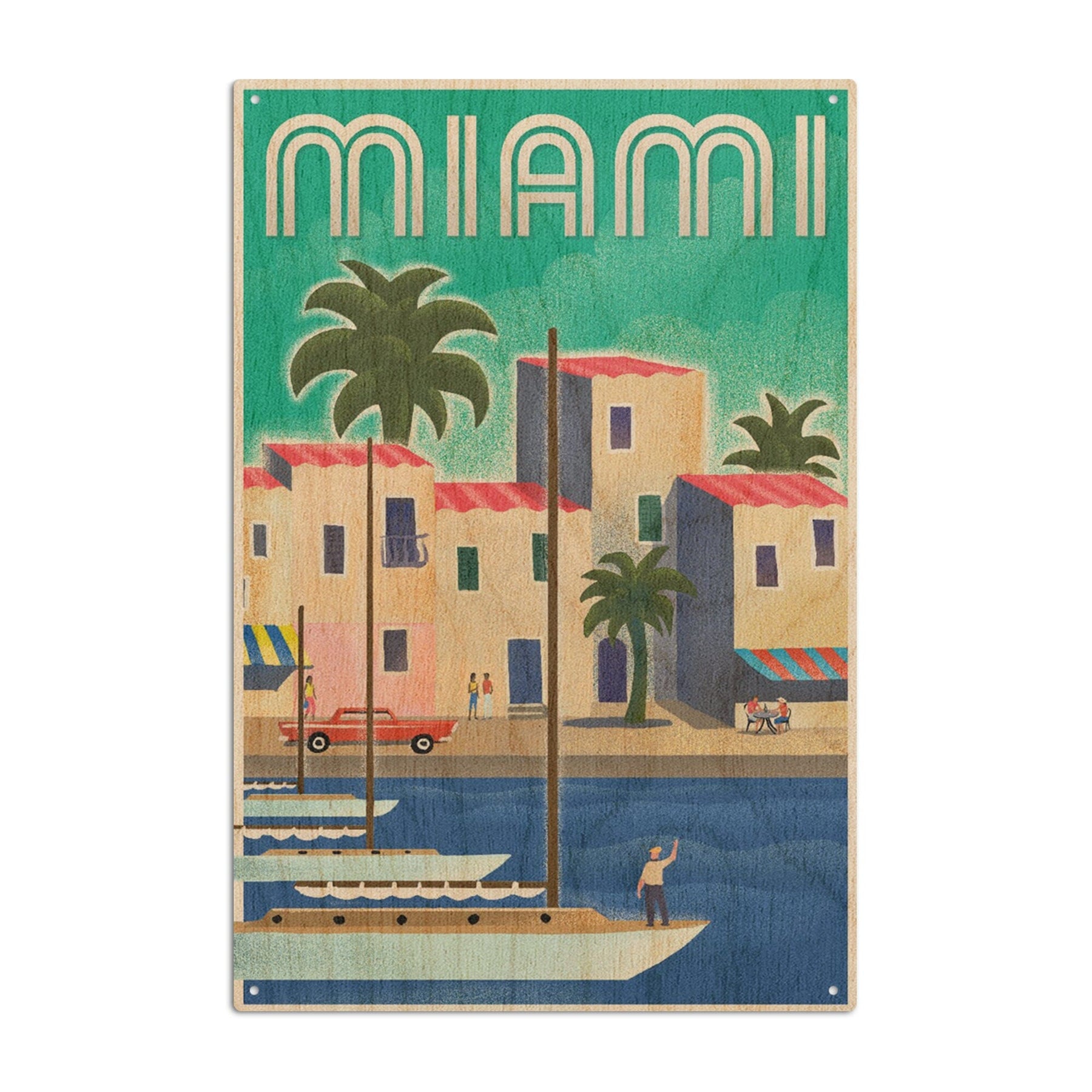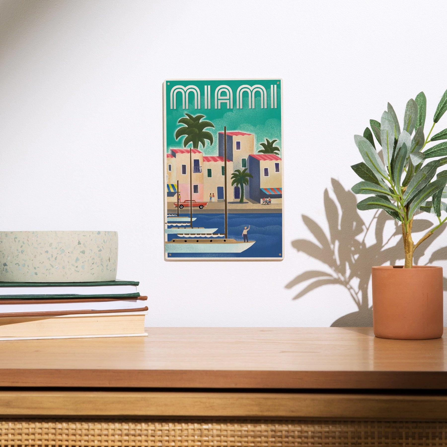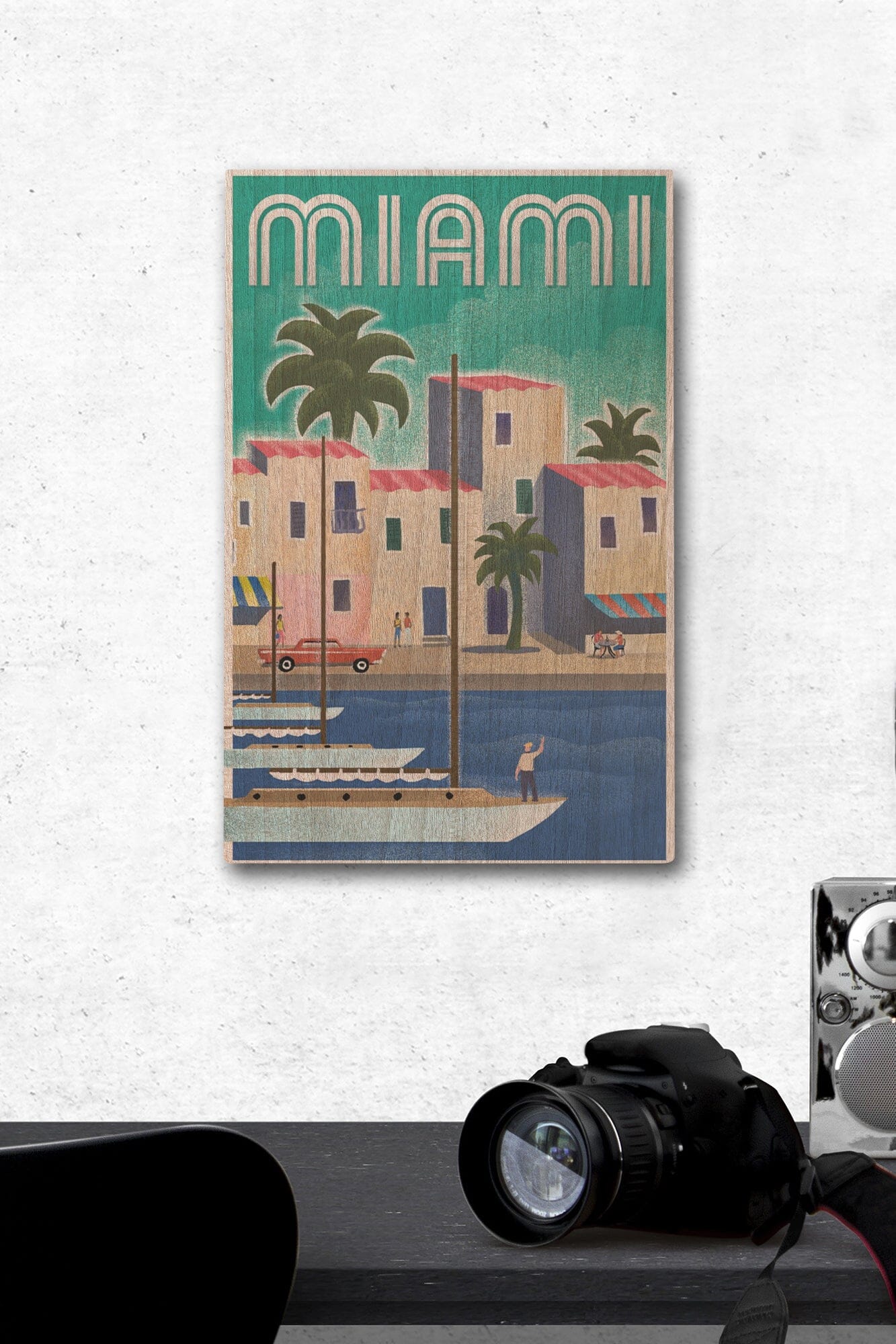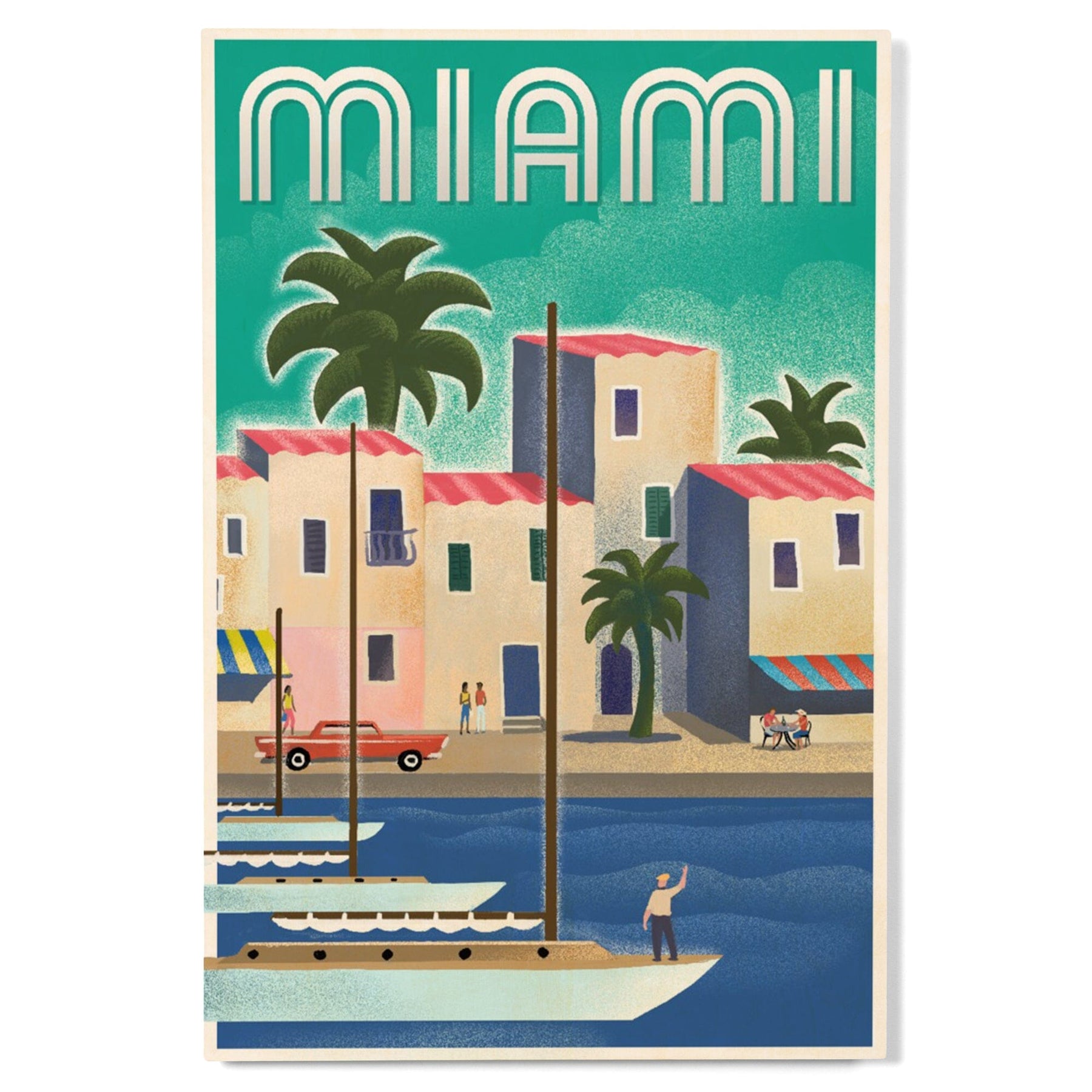 Miami, Florida, Lithograph, Lantern Press Artwork, Wood Signs and Postcards