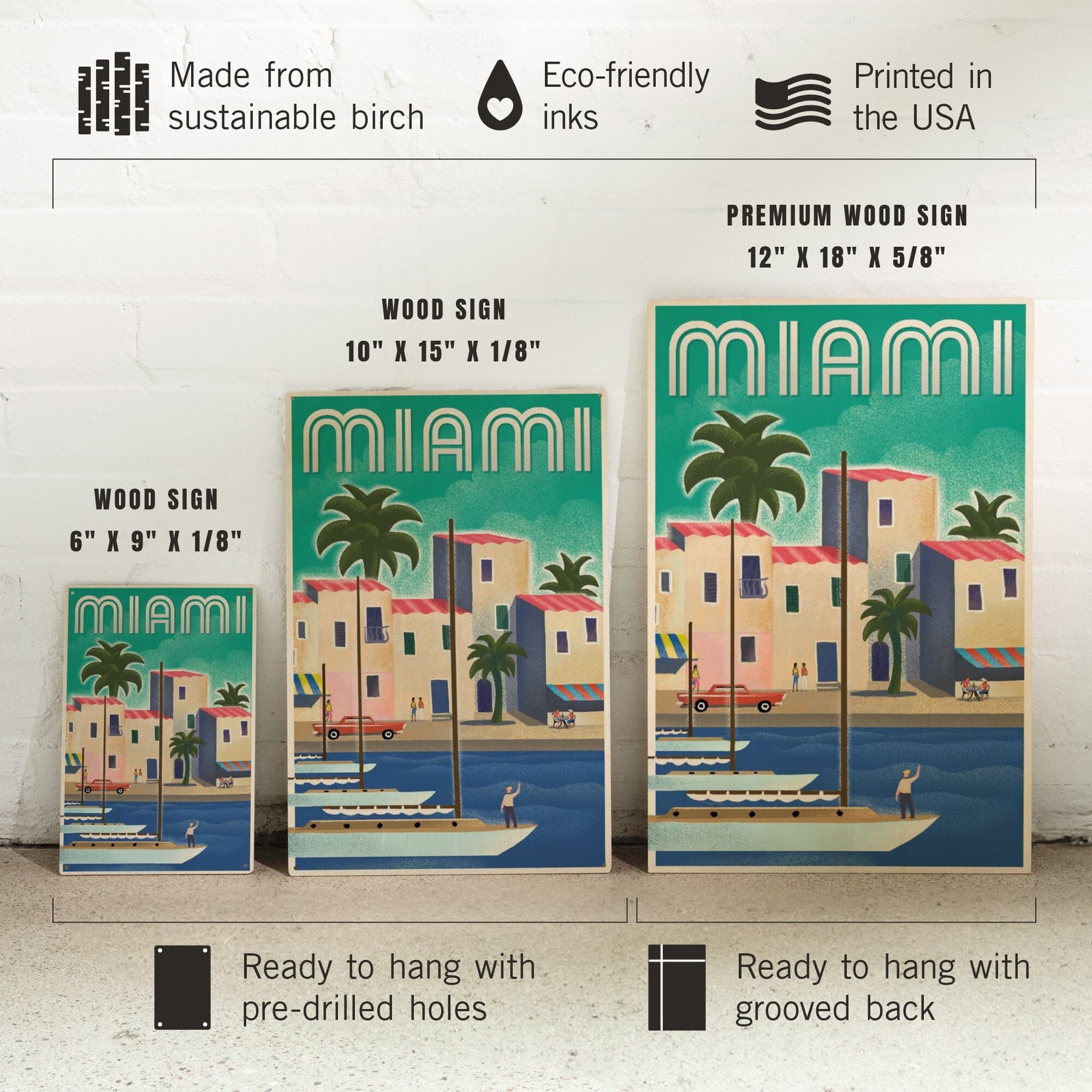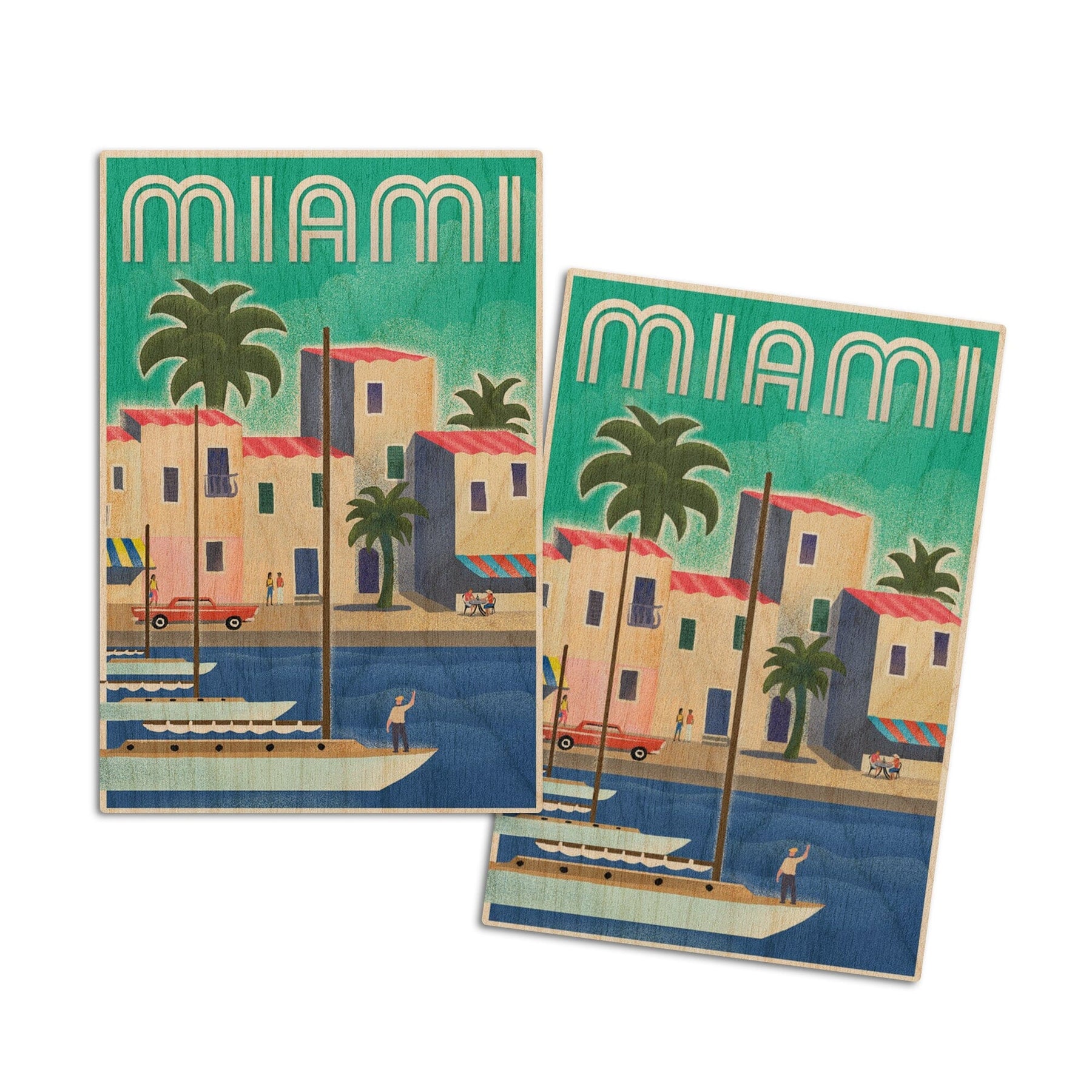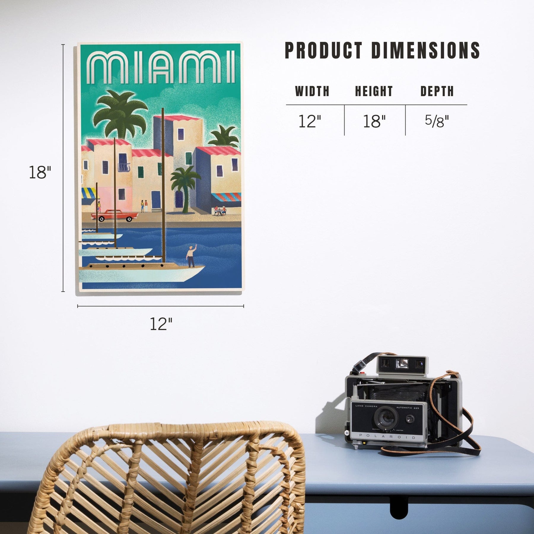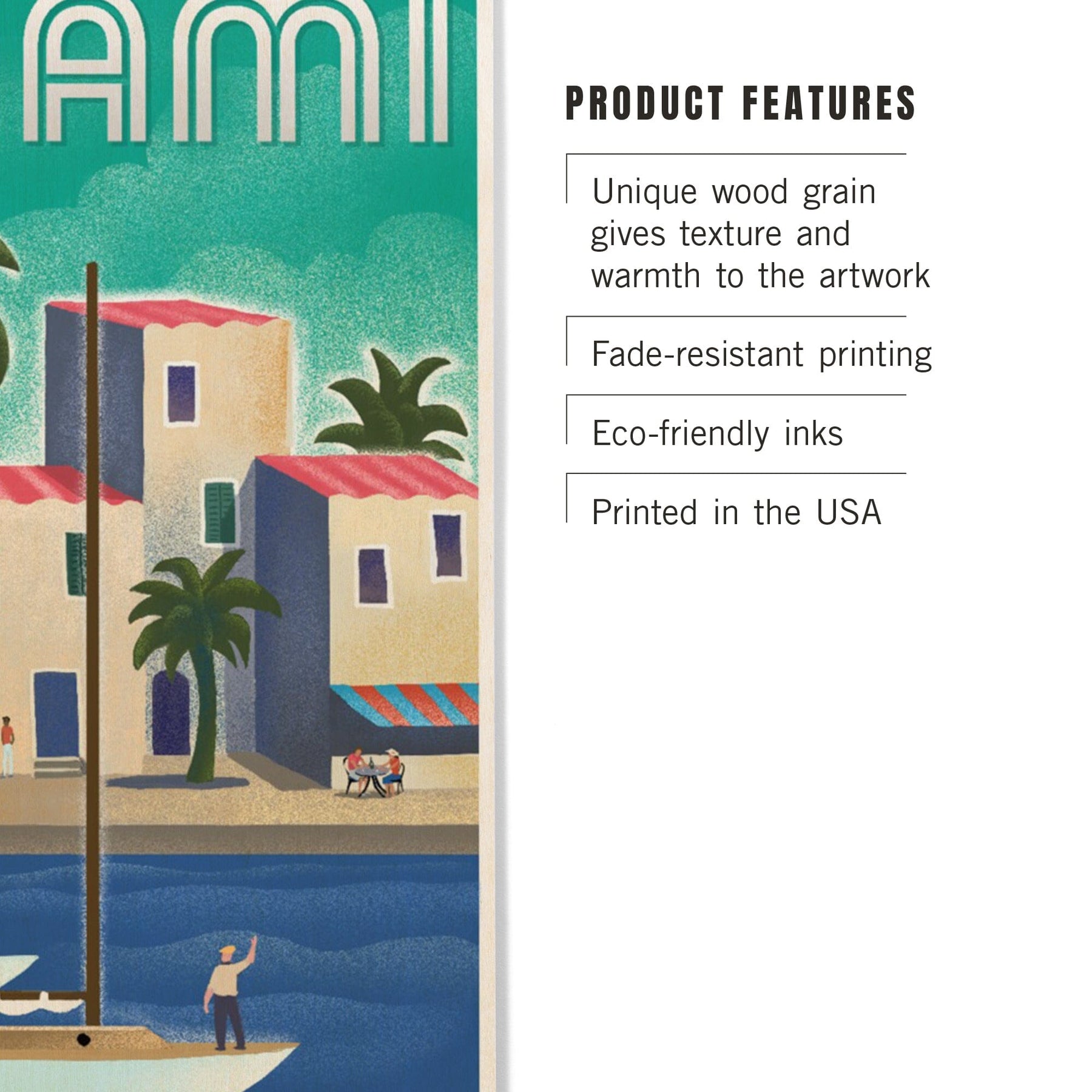 Miami, Florida, Lithograph, Lantern Press Artwork, Wood Signs and Postcards