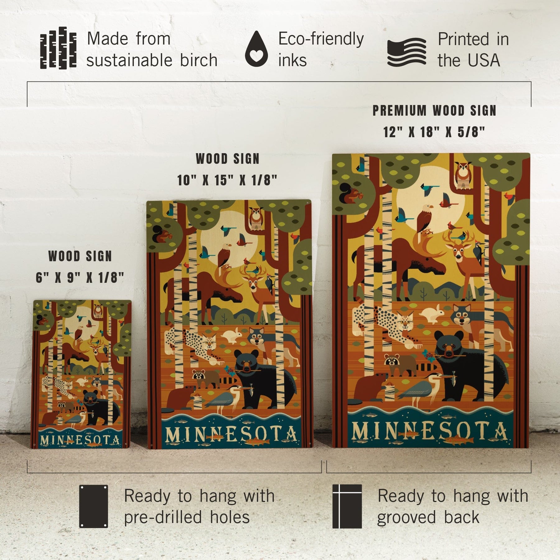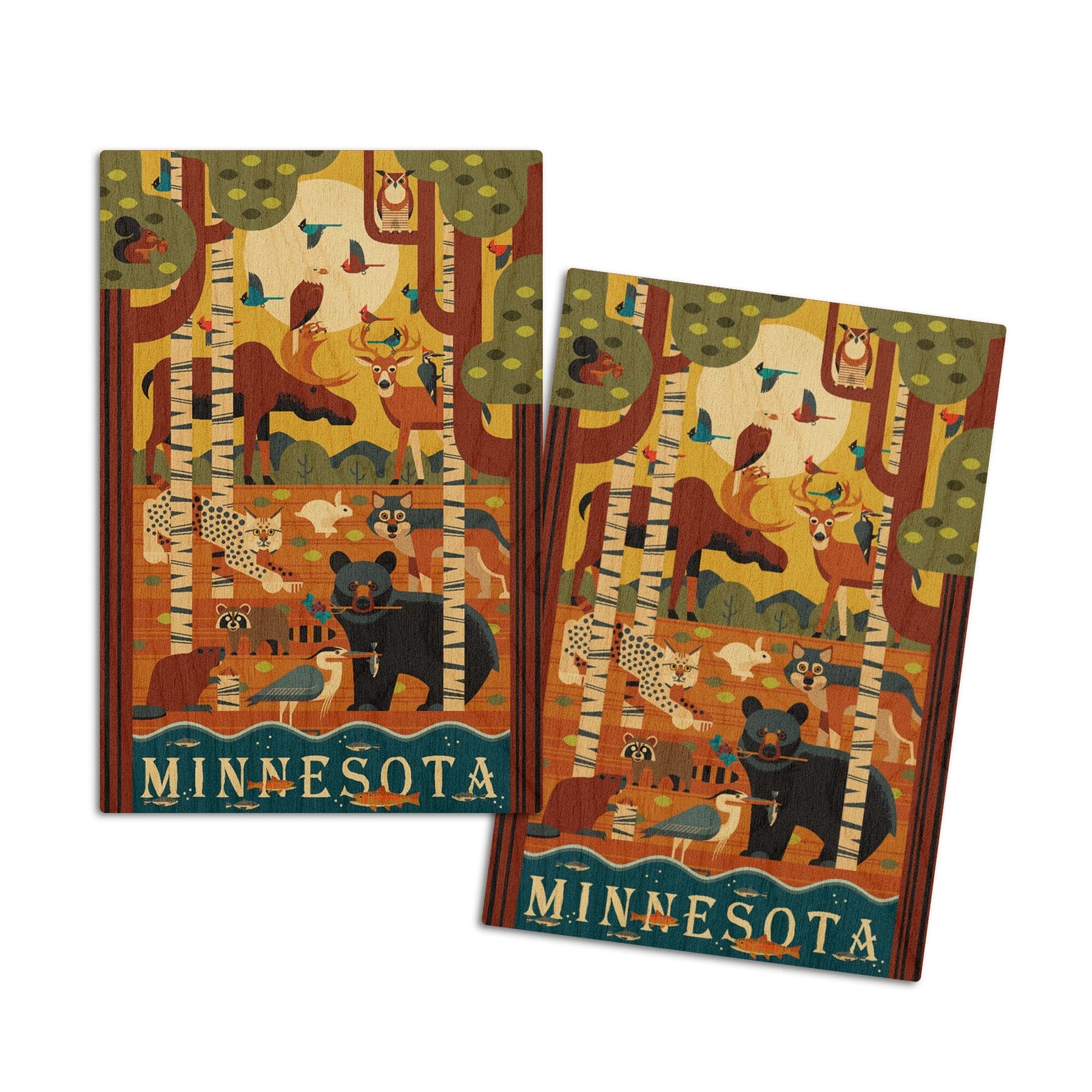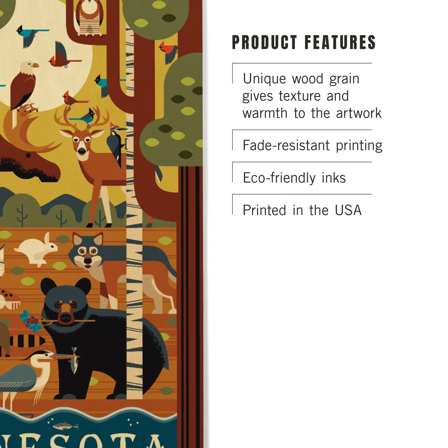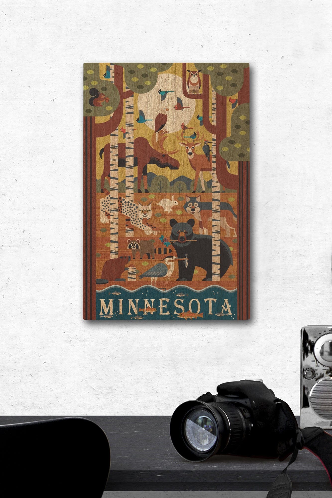 Minnesota, Forest Animals, Geometric, Lantern Press Artwork, Wood Signs and Postcards