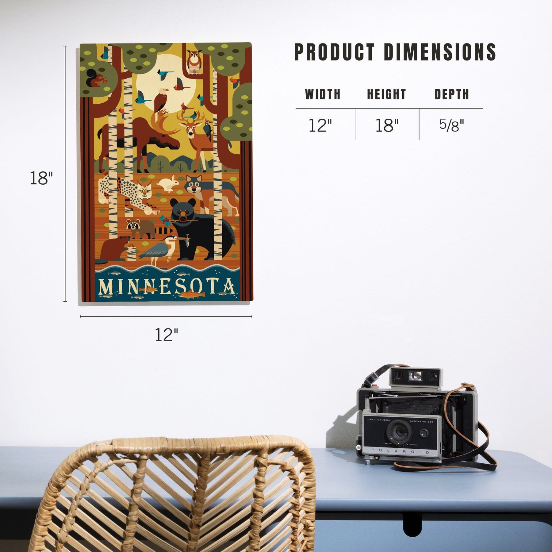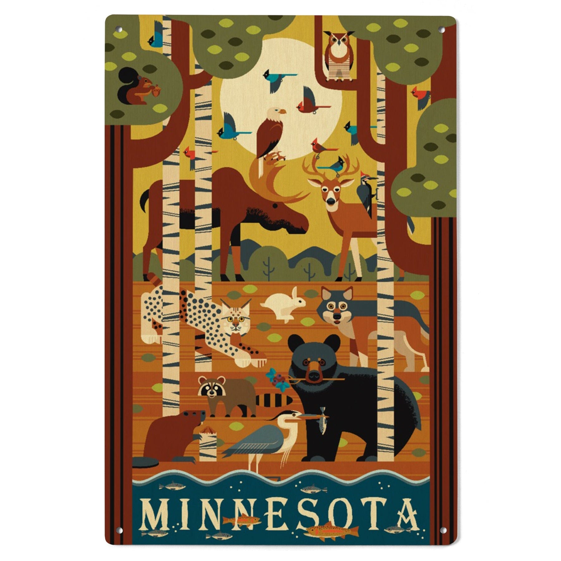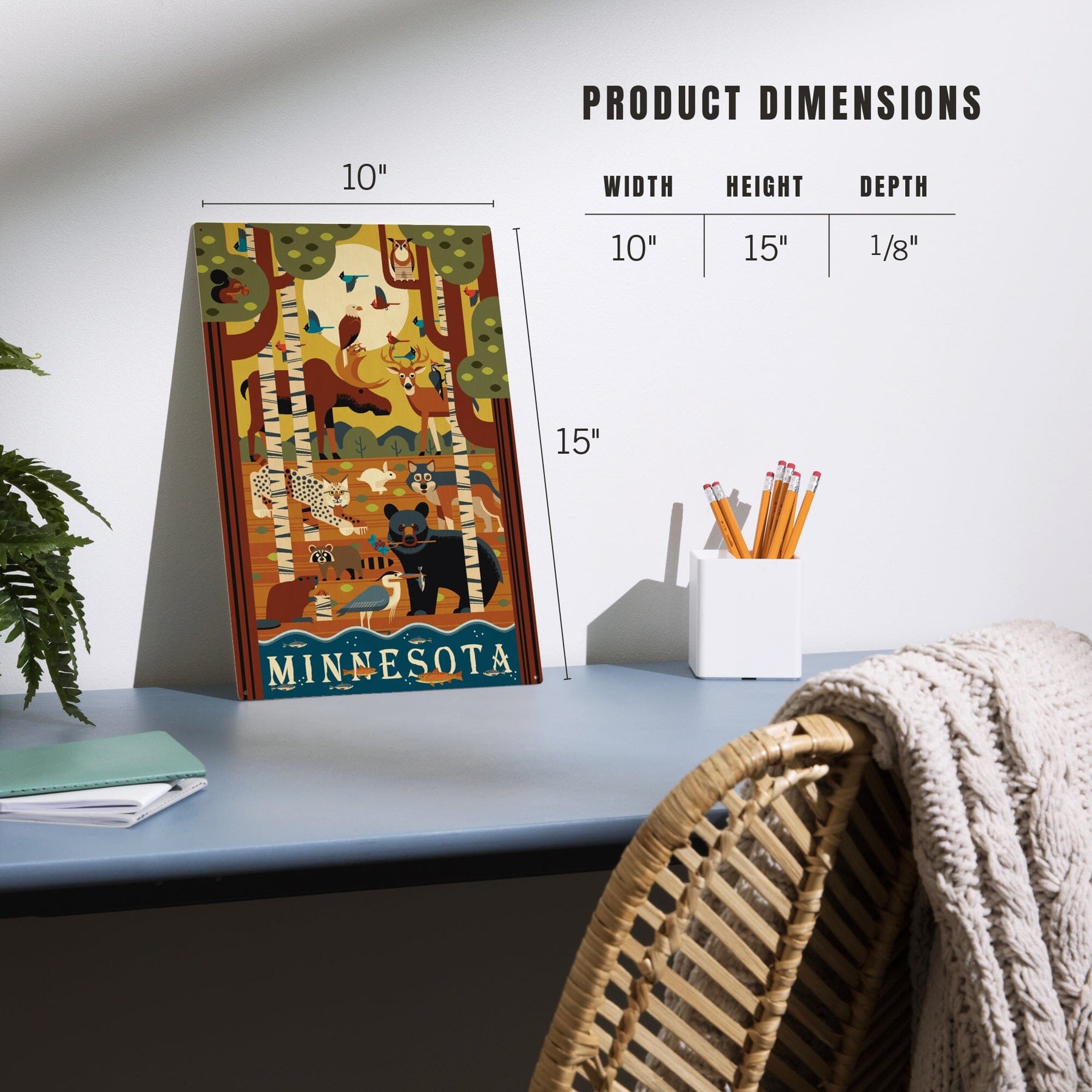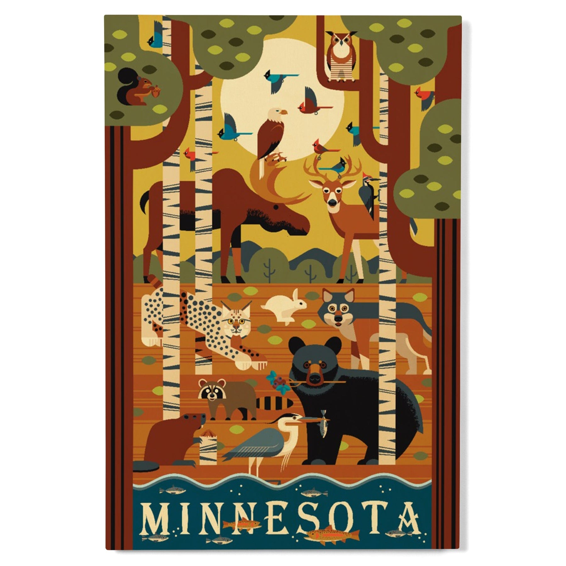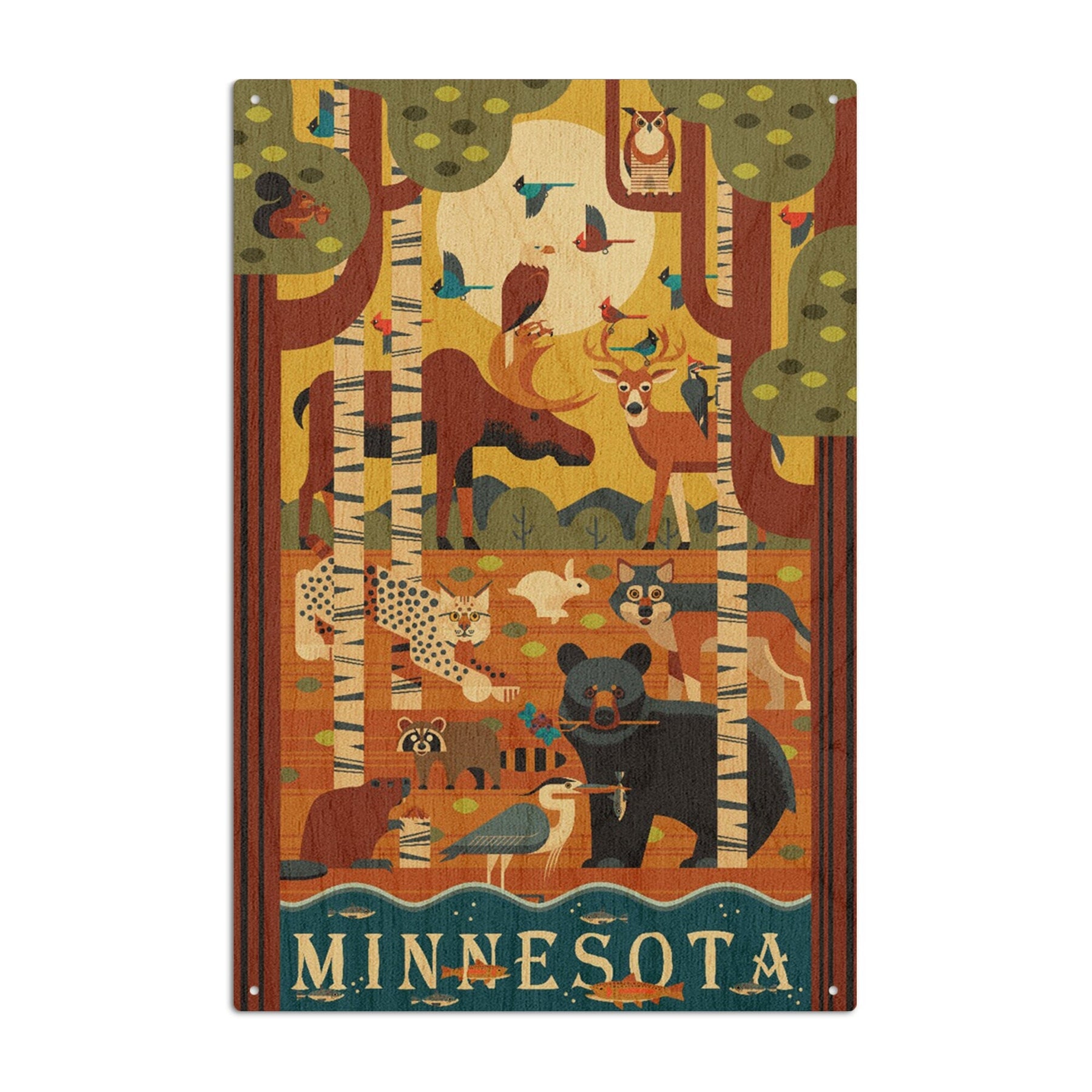 Minnesota, Forest Animals, Geometric, Lantern Press Artwork, Wood Signs and Postcards