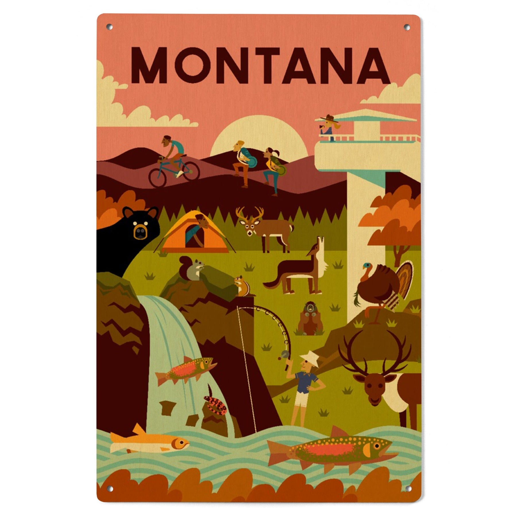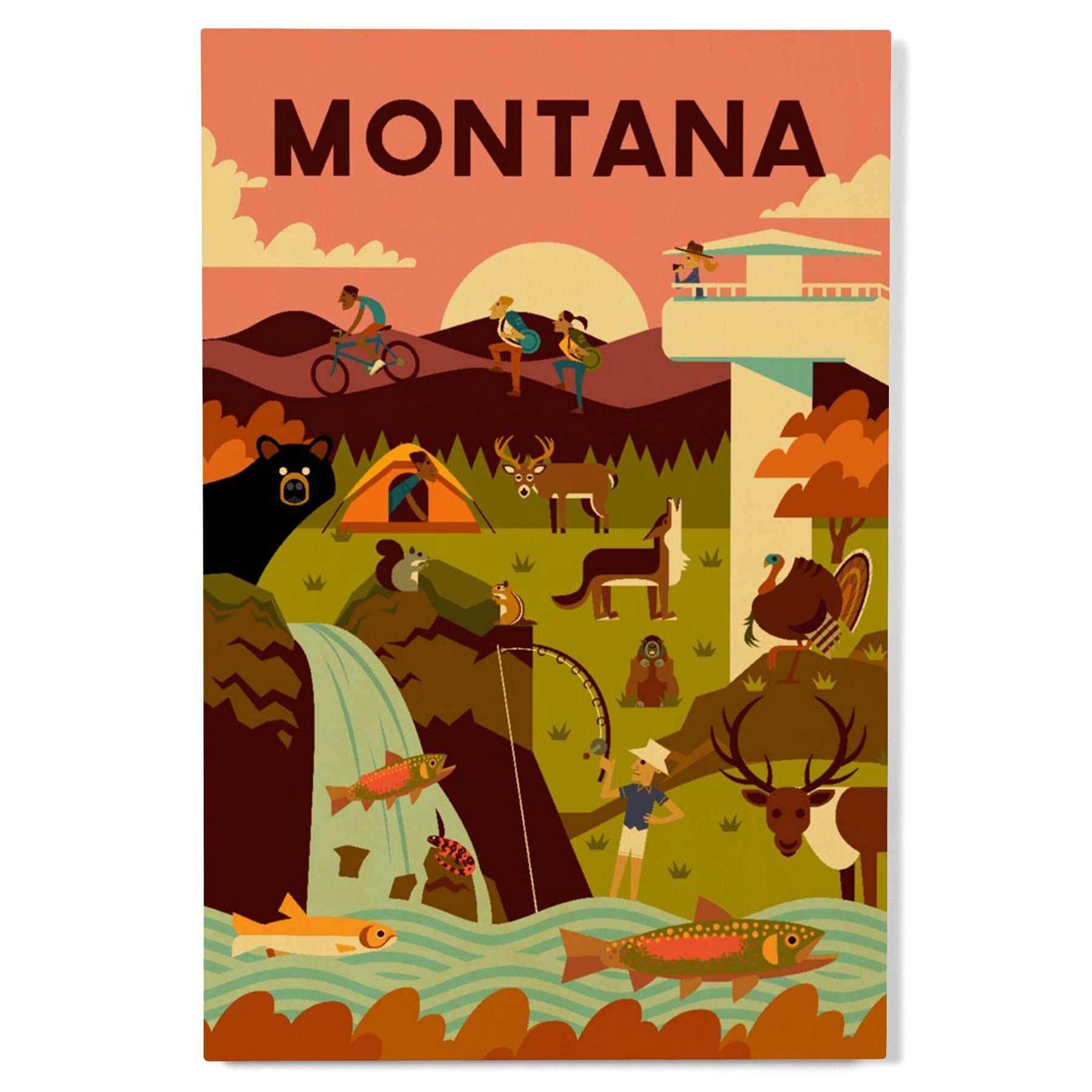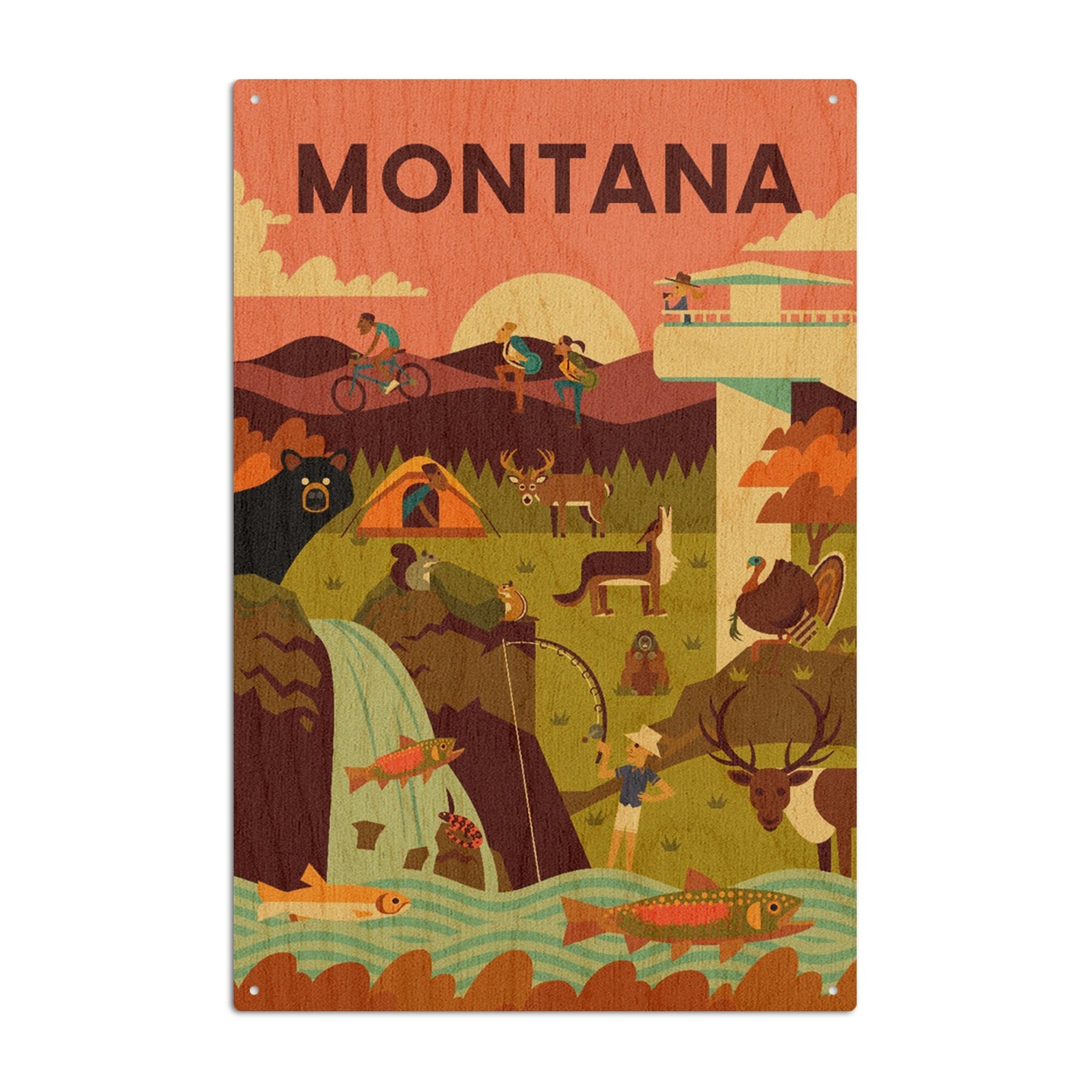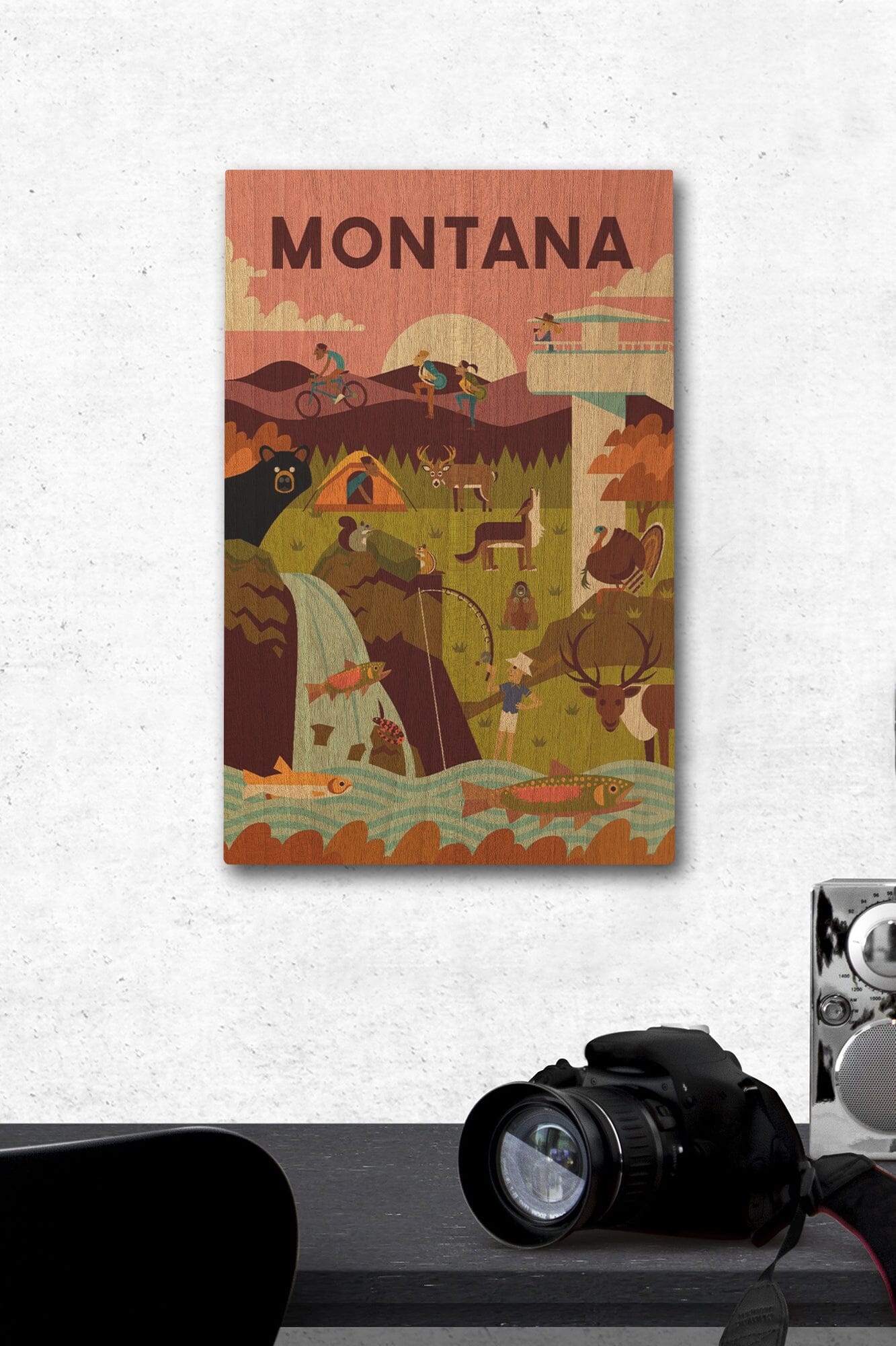 Montana, Geometric National Park Series, Lantern Press Artwork, Wood Signs and Postcards Wood Lantern Press