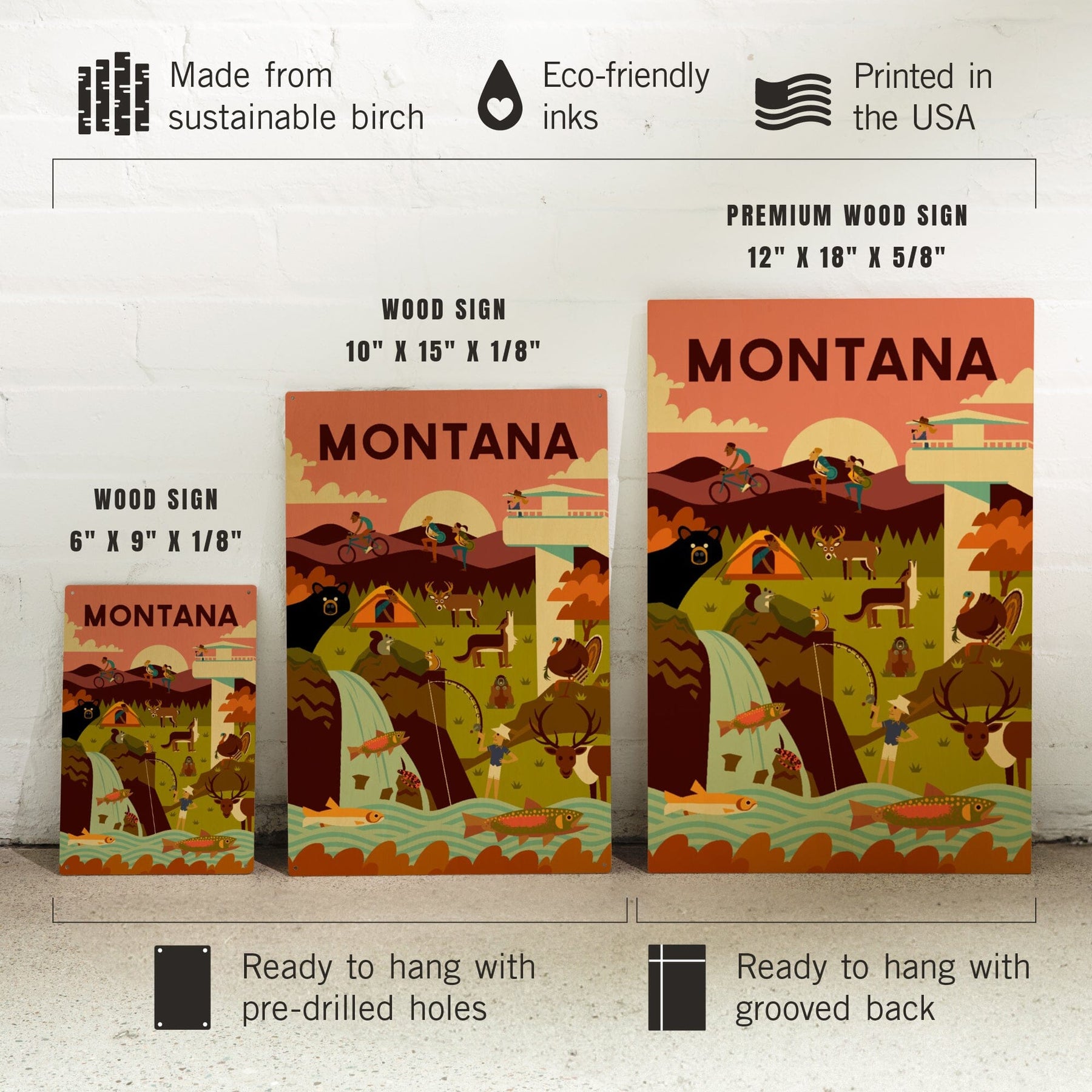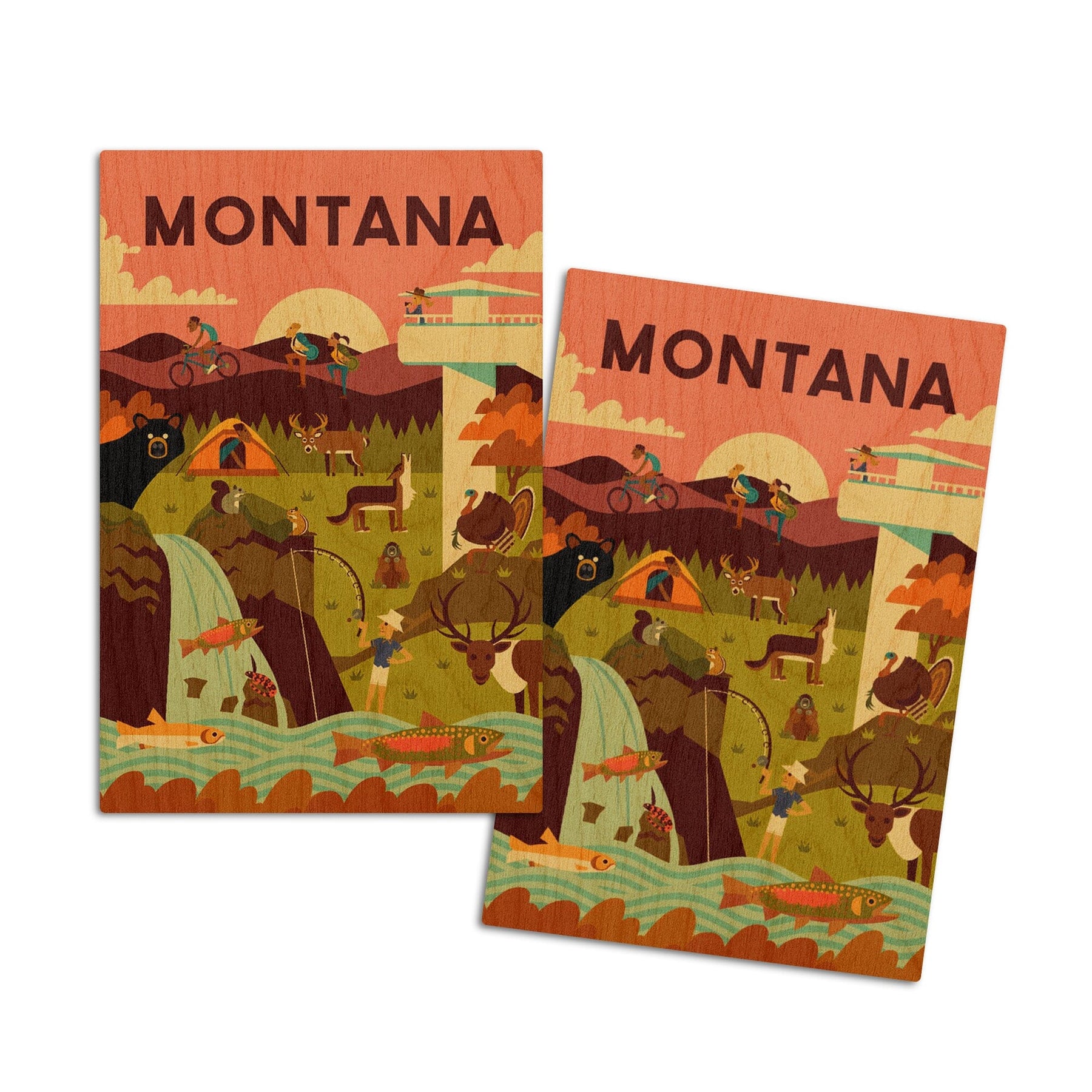 Montana, Geometric National Park Series, Lantern Press Artwork, Wood Signs and Postcards