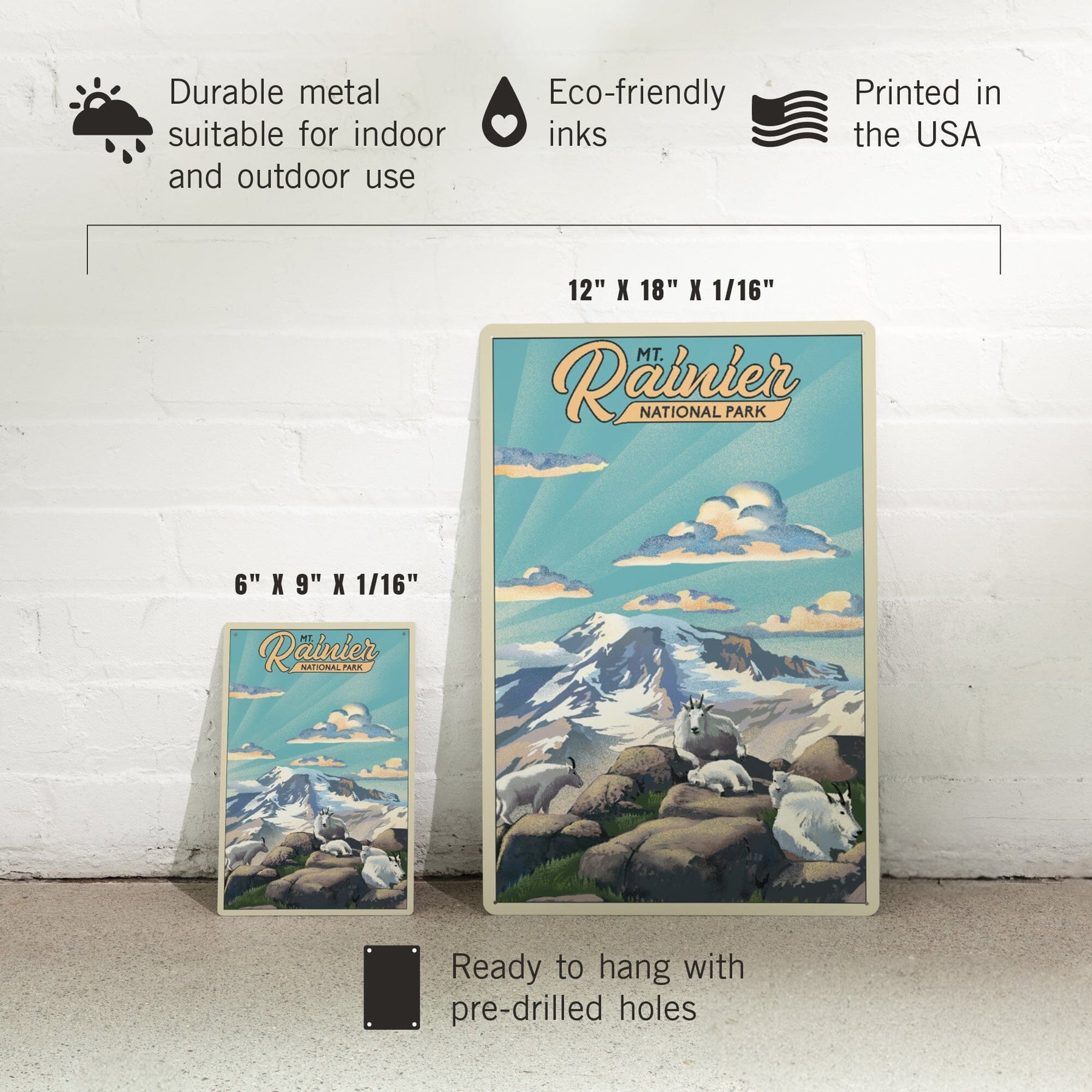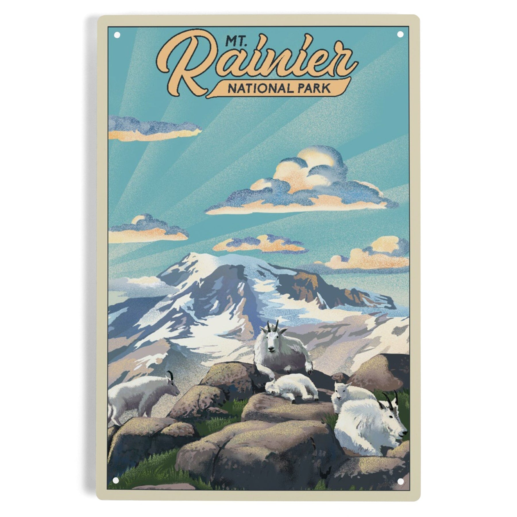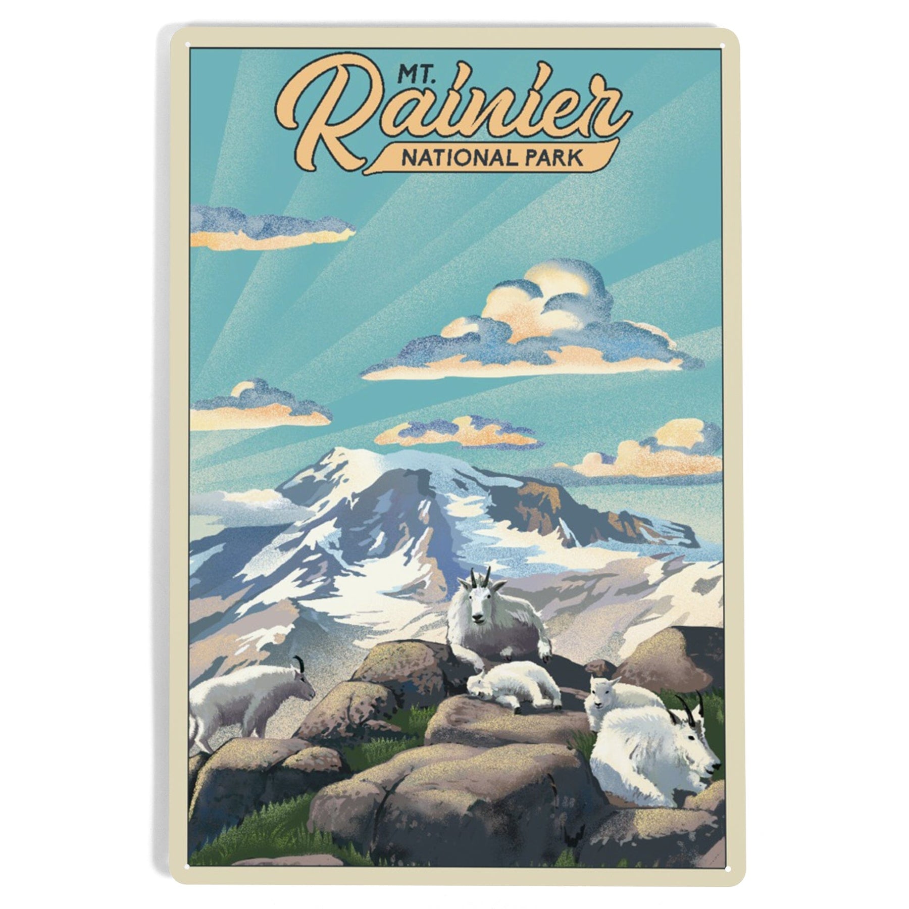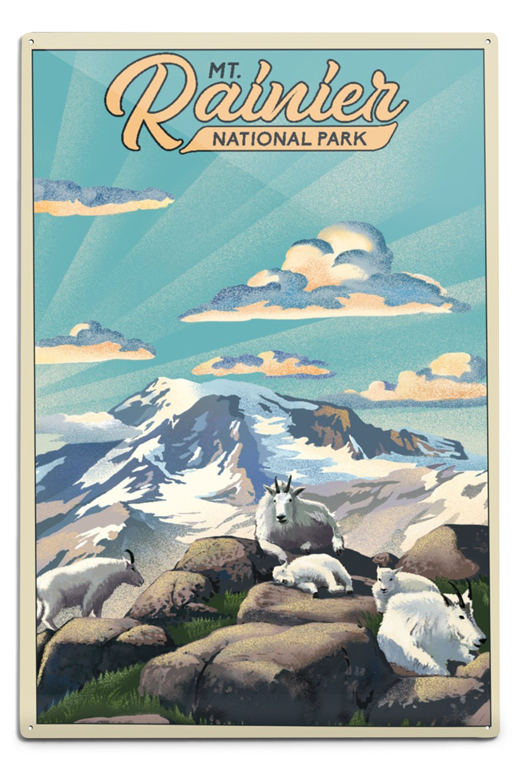 Mt Rainier National Park, Goats, Lithograph, Metal Signs