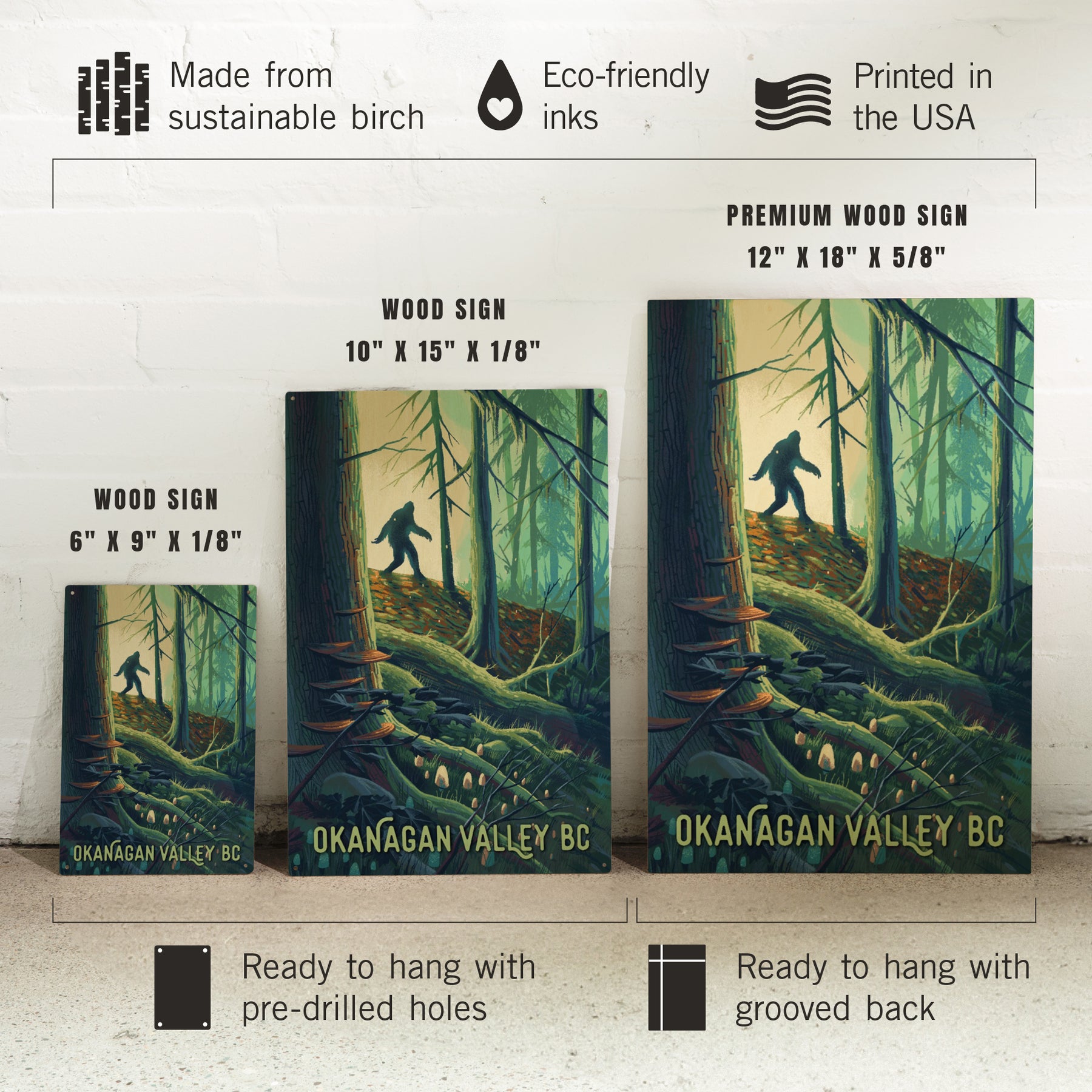 Okanagan Valley, British Columbia, Get Outside, Wanderer, Bigfoot in Forest, Wood Signs and Postcards Wood Lantern Press