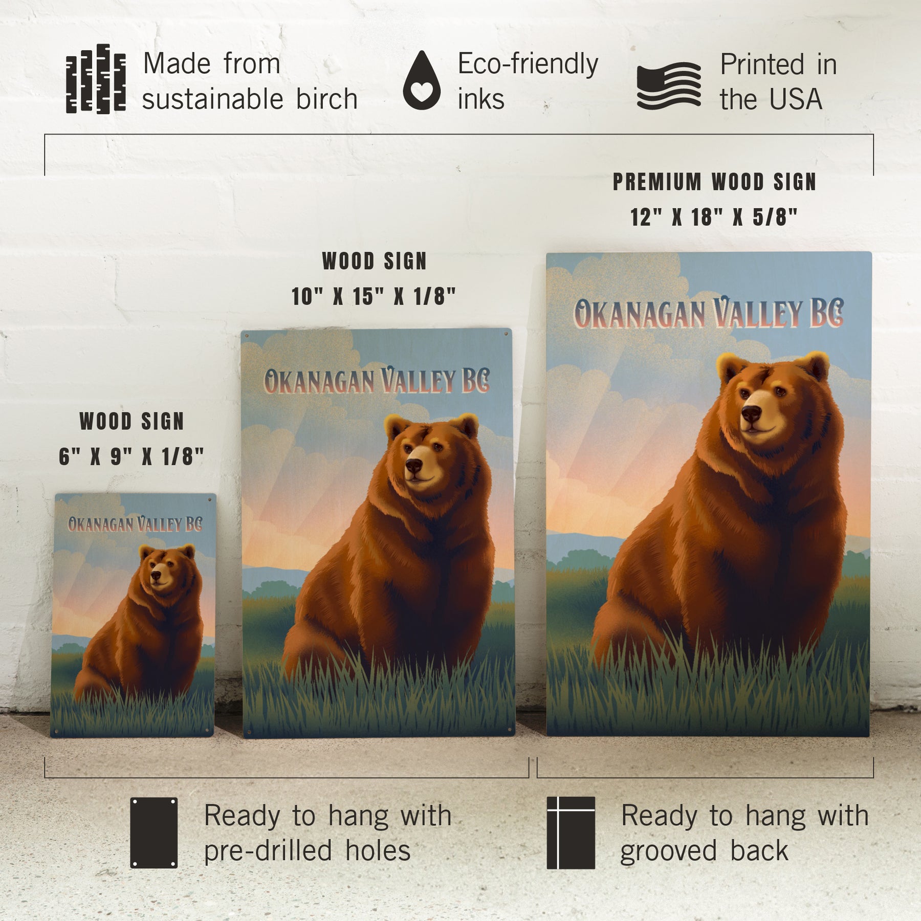 Okanagan Valley, British Columbia, Lithograph Wildlife Series, Grizzly Bear, Wood Signs and Postcards Wood Lantern Press