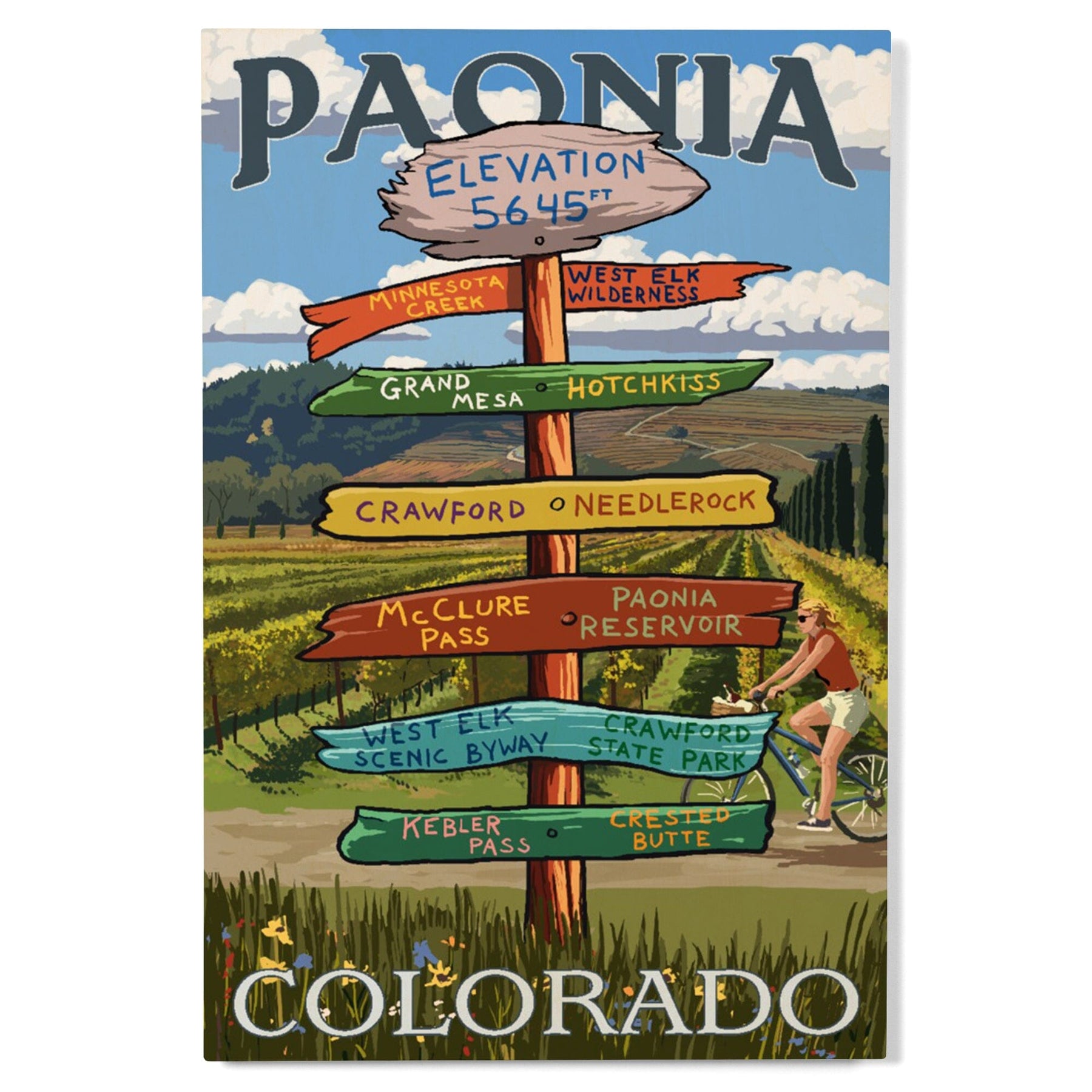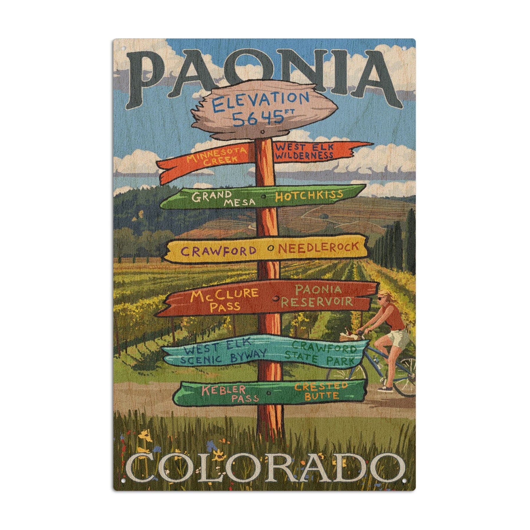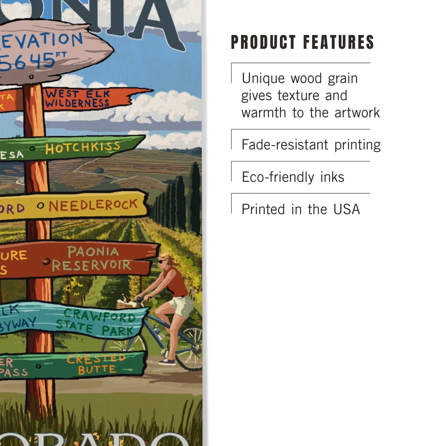 Paonia, Colorado, Destination Signpost, Lantern Press Artwork, Wood Signs and Postcards