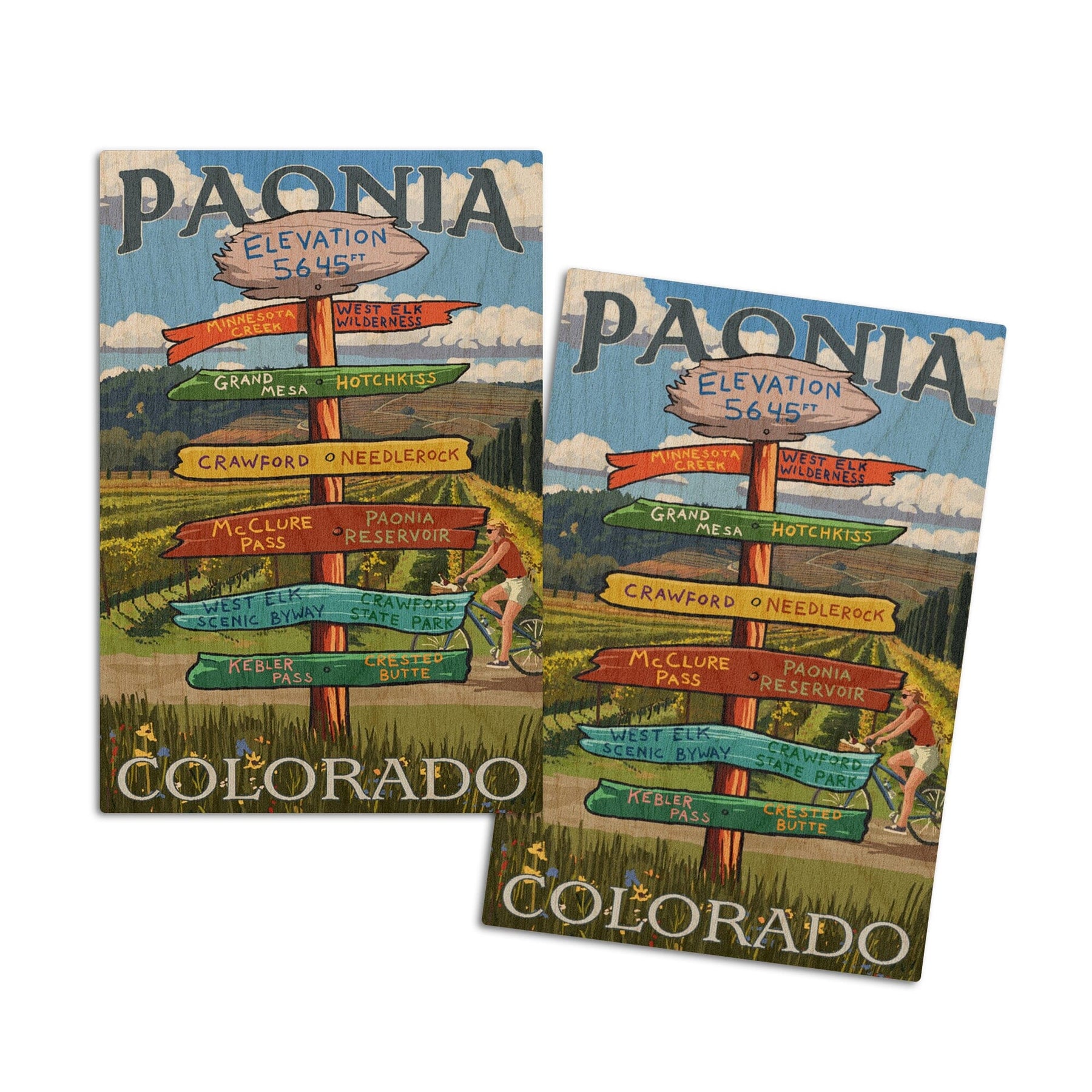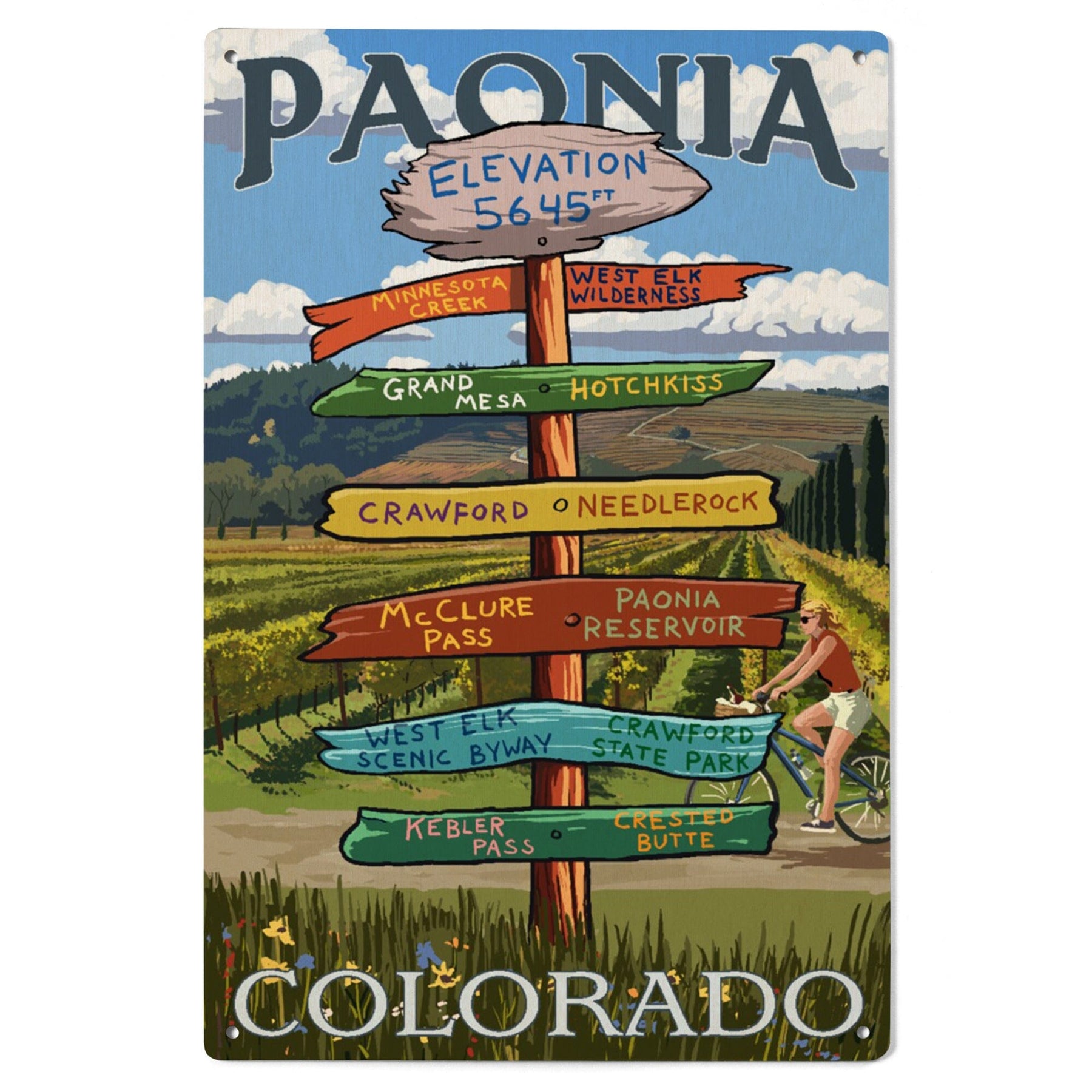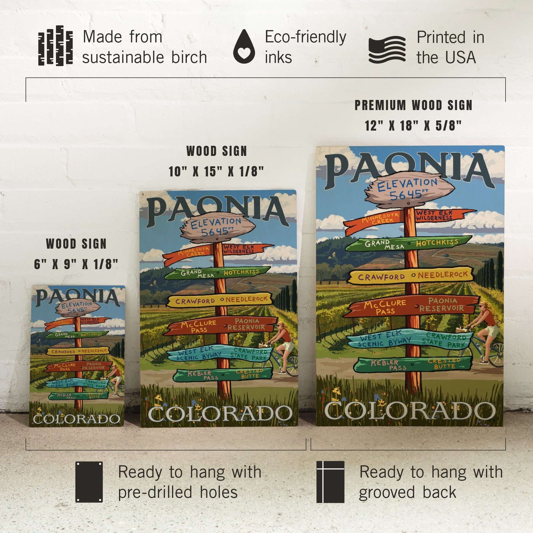 Paonia, Colorado, Destination Signpost, Lantern Press Artwork, Wood Signs and Postcards