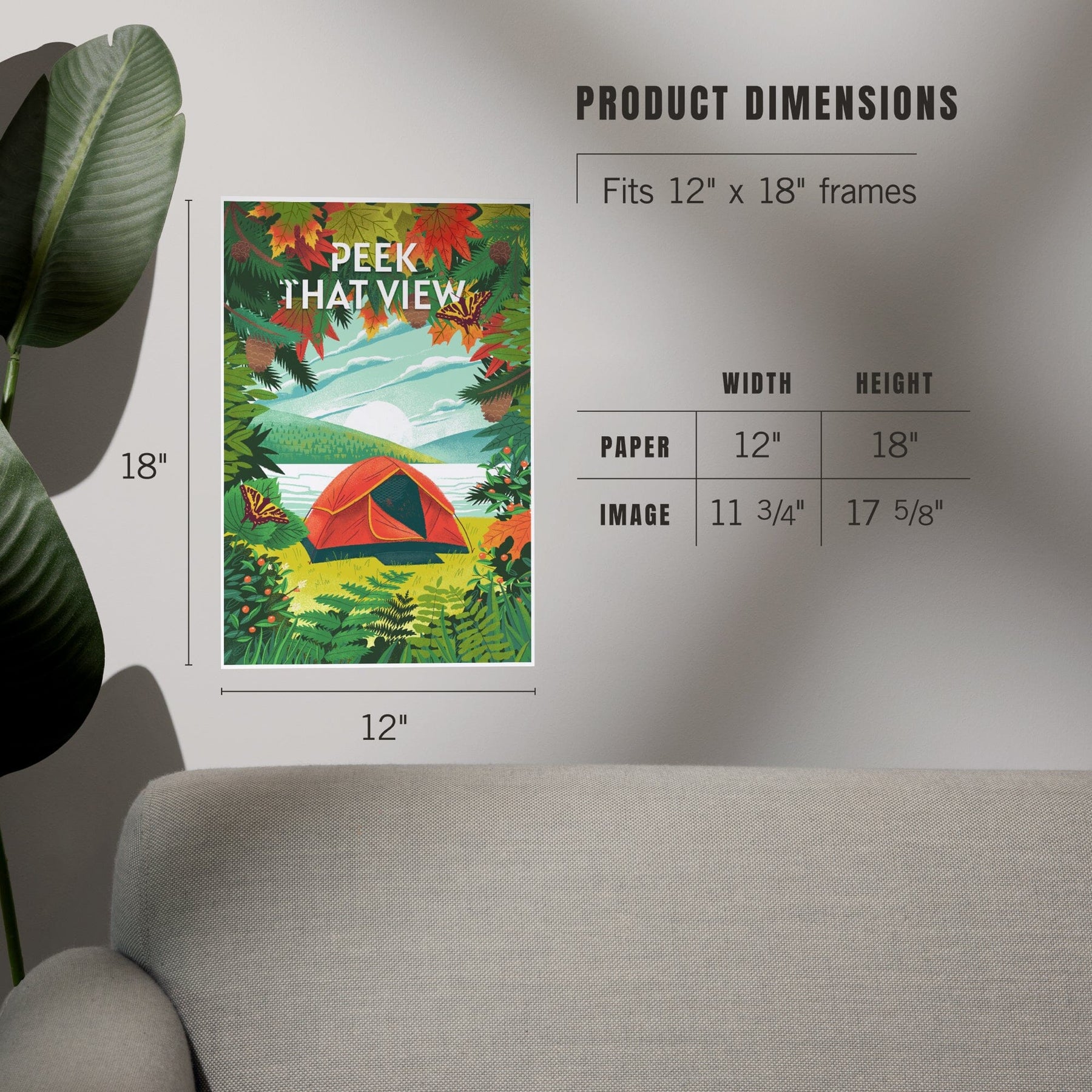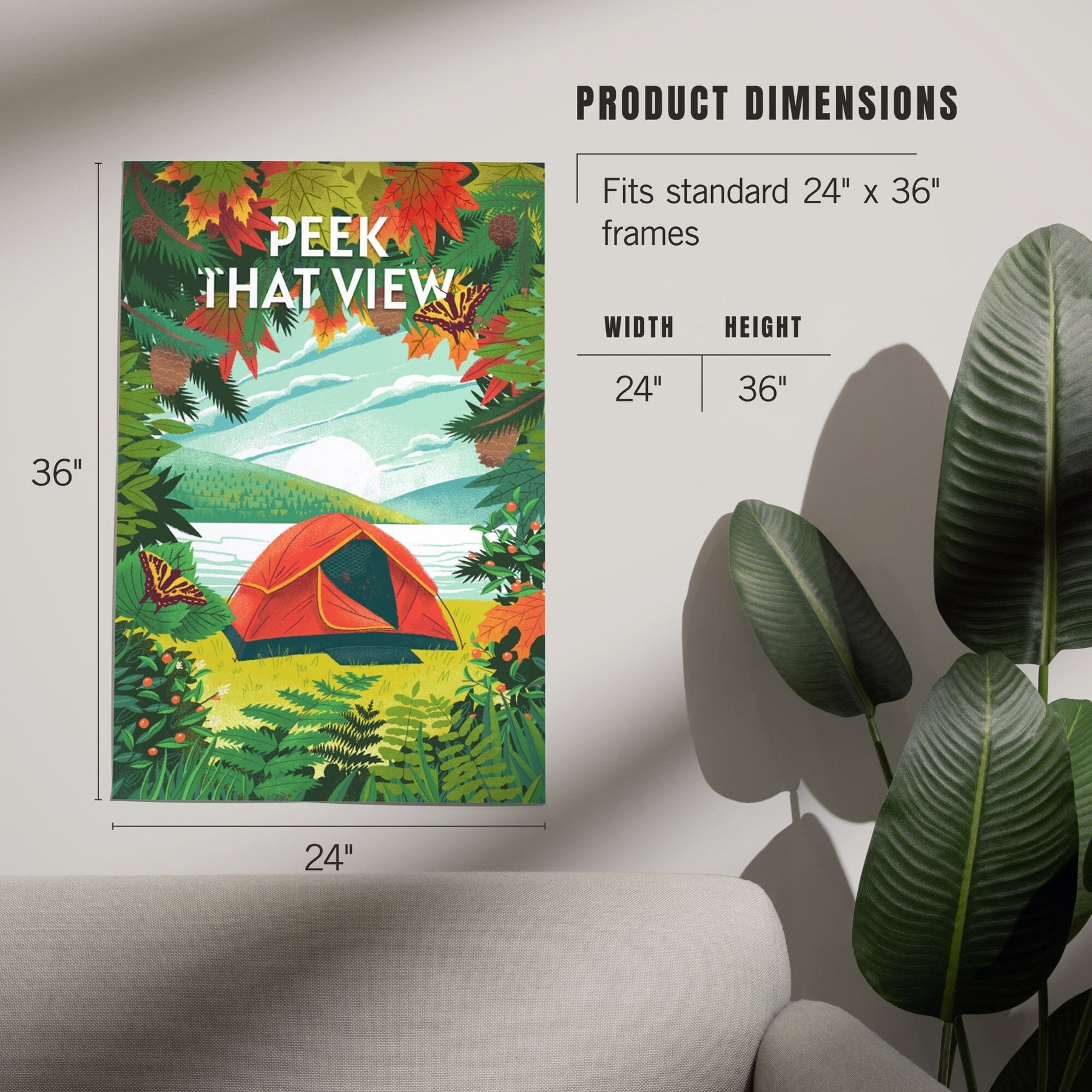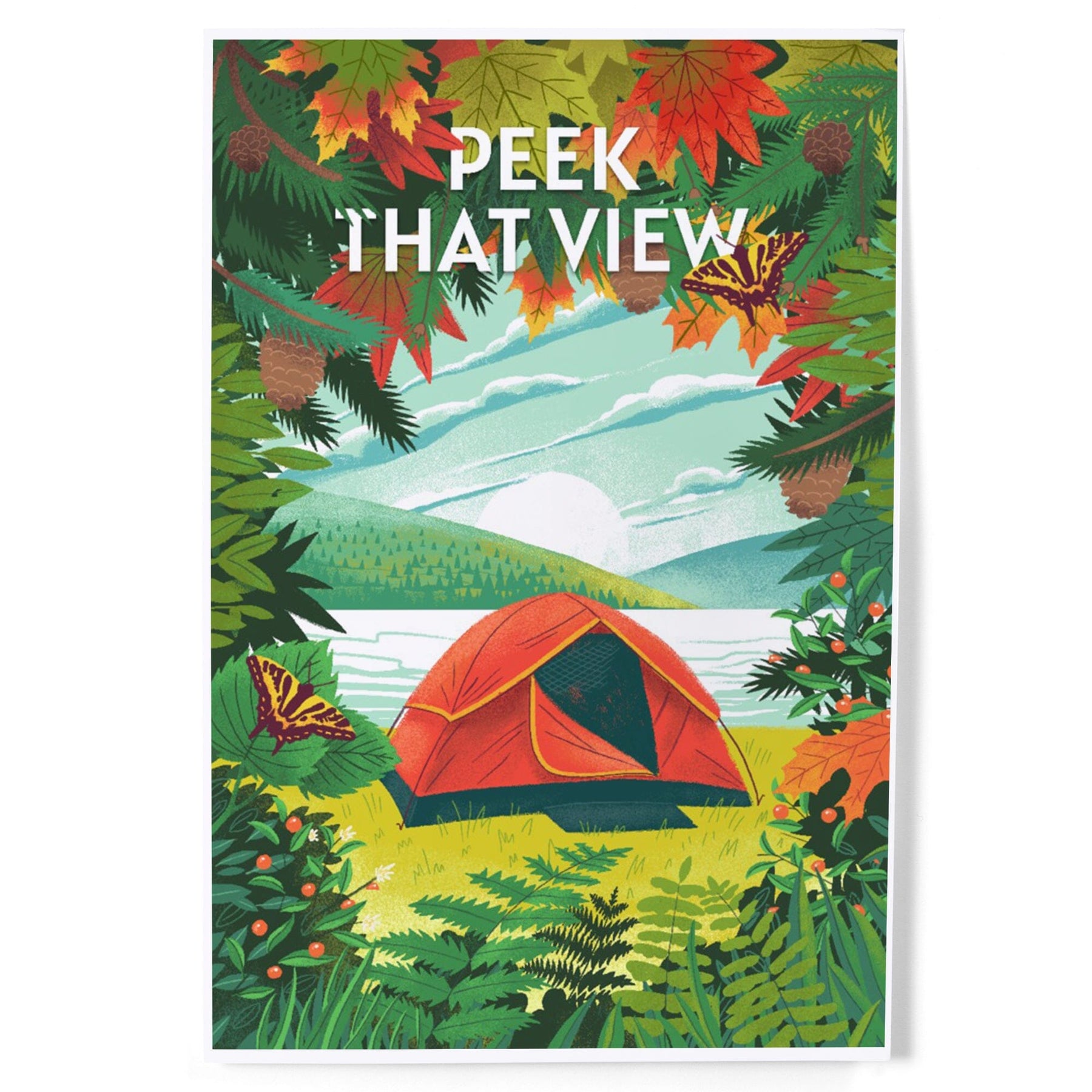 Peek That View, Tent Camping, Fall Colors, Art & Giclee Prints Art Lantern Press