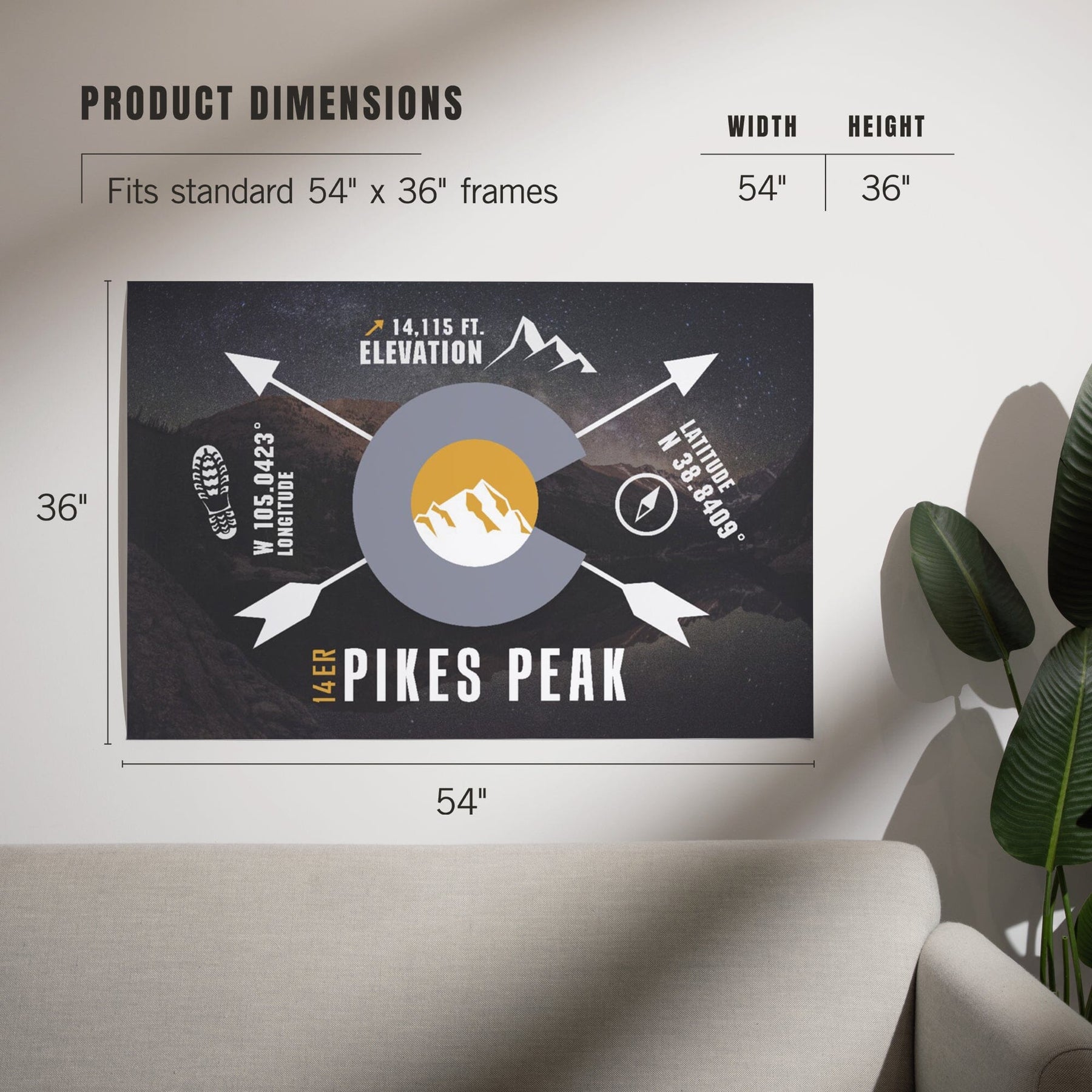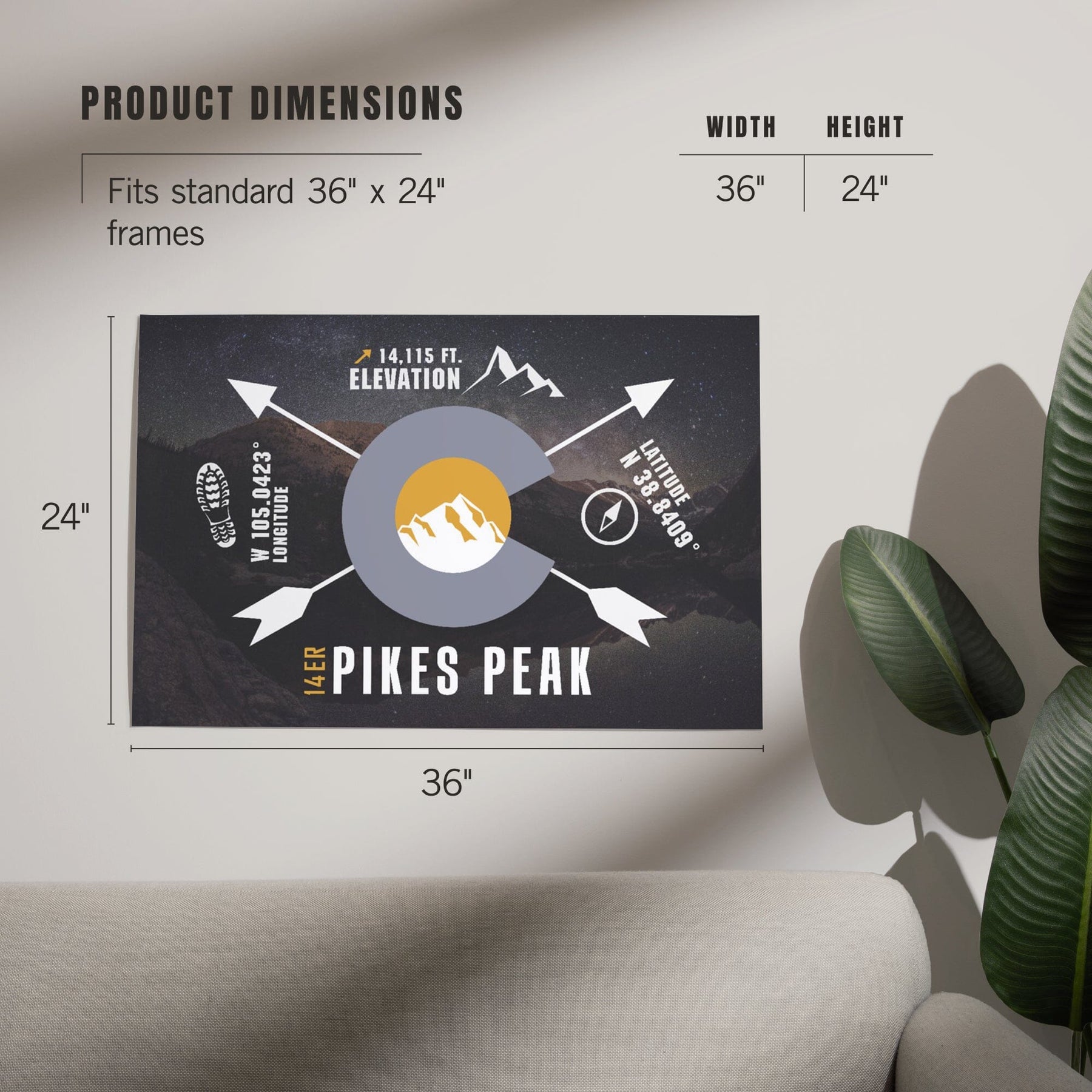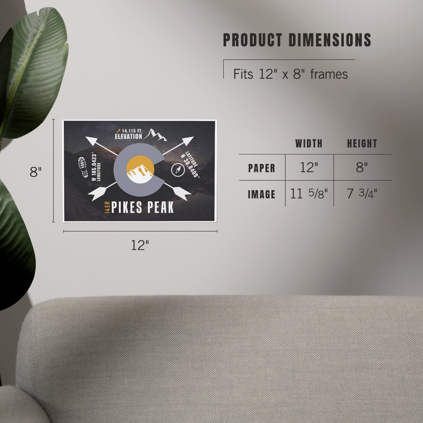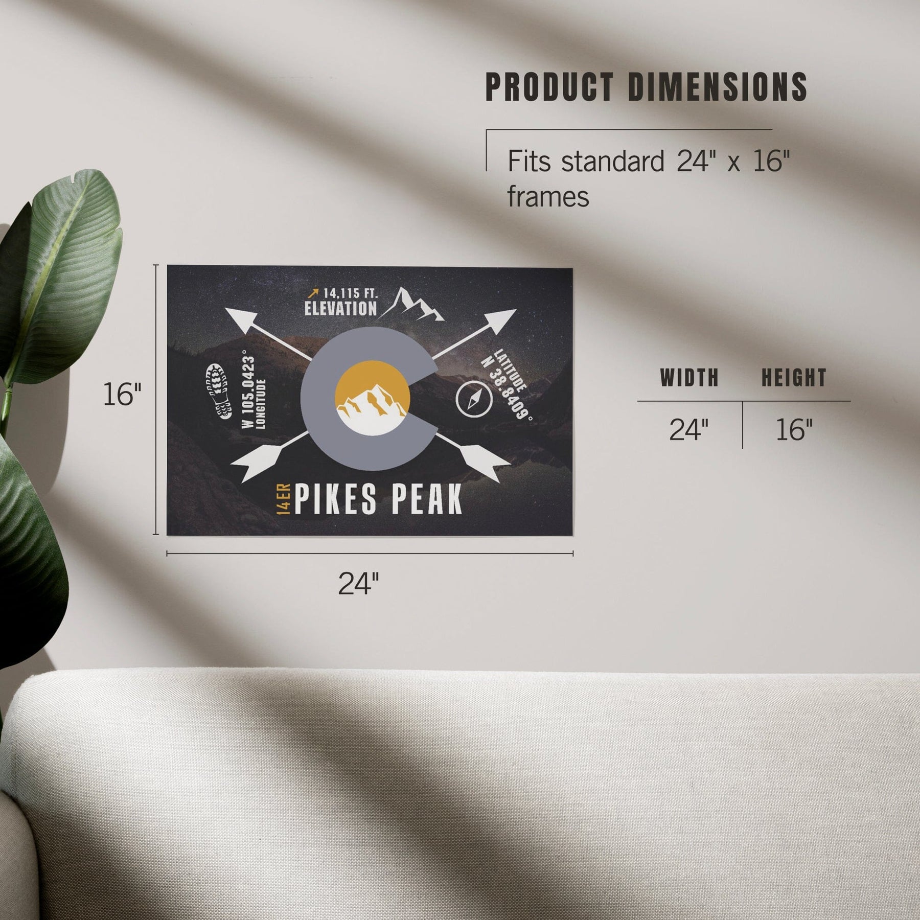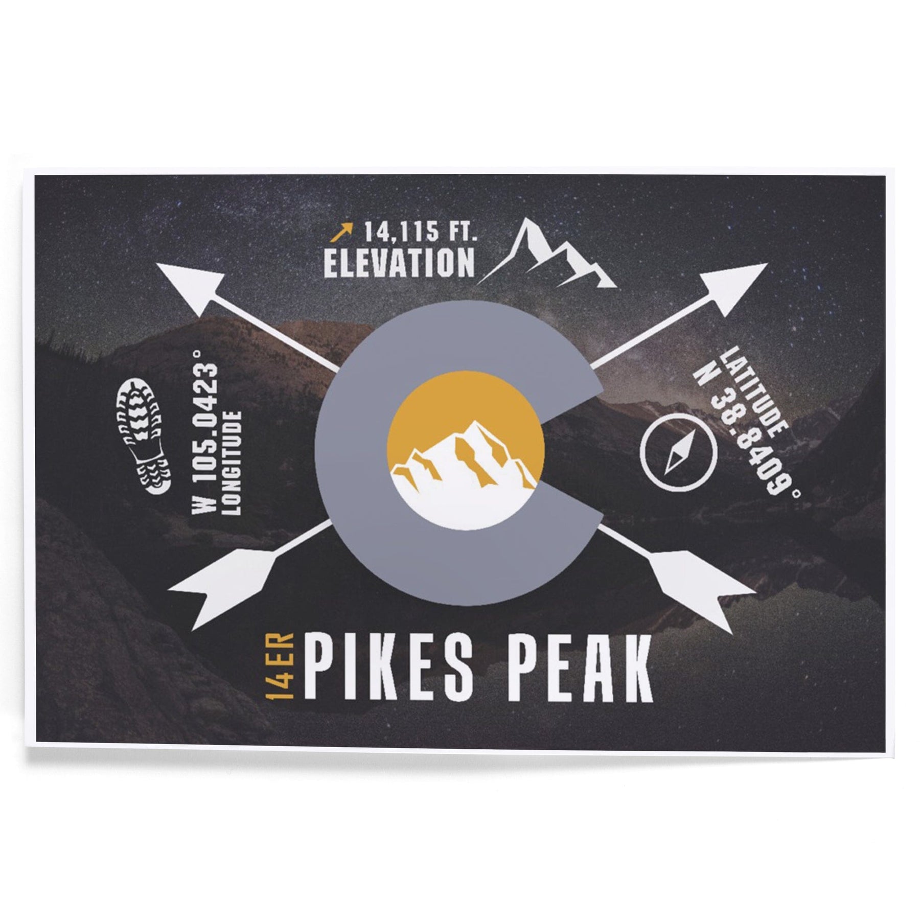 Pikes Peak, Colorado, Infographic, The Fourteeners, Art & Giclee Prints Art Lantern Press