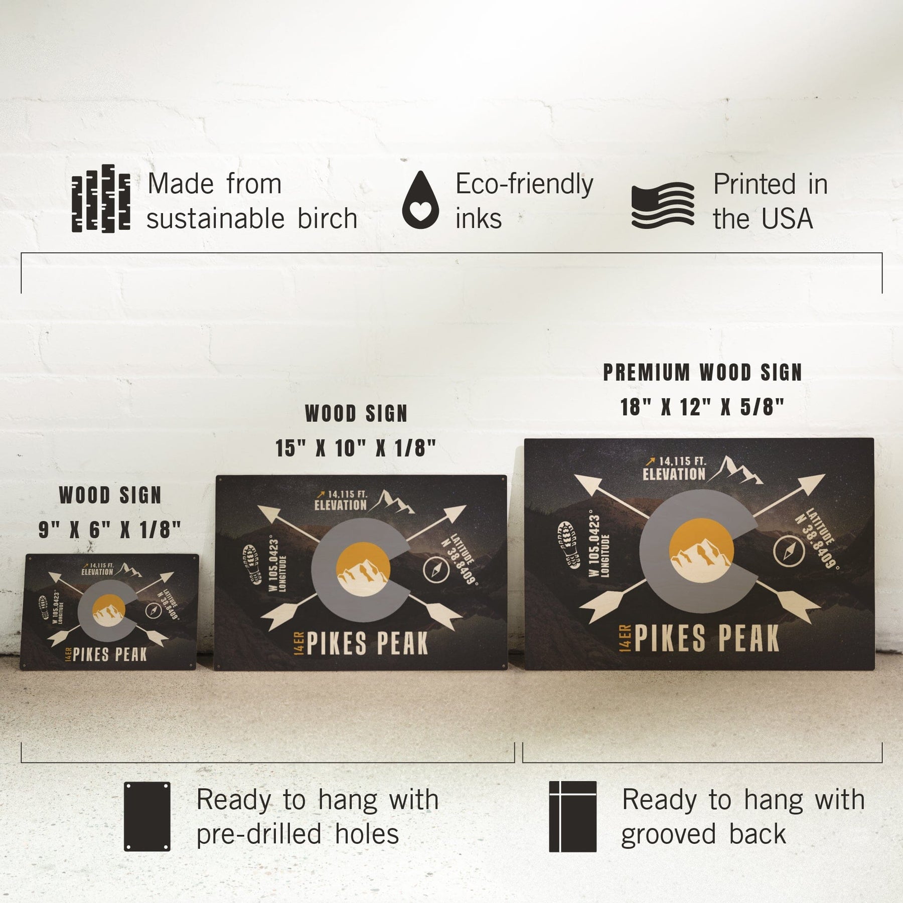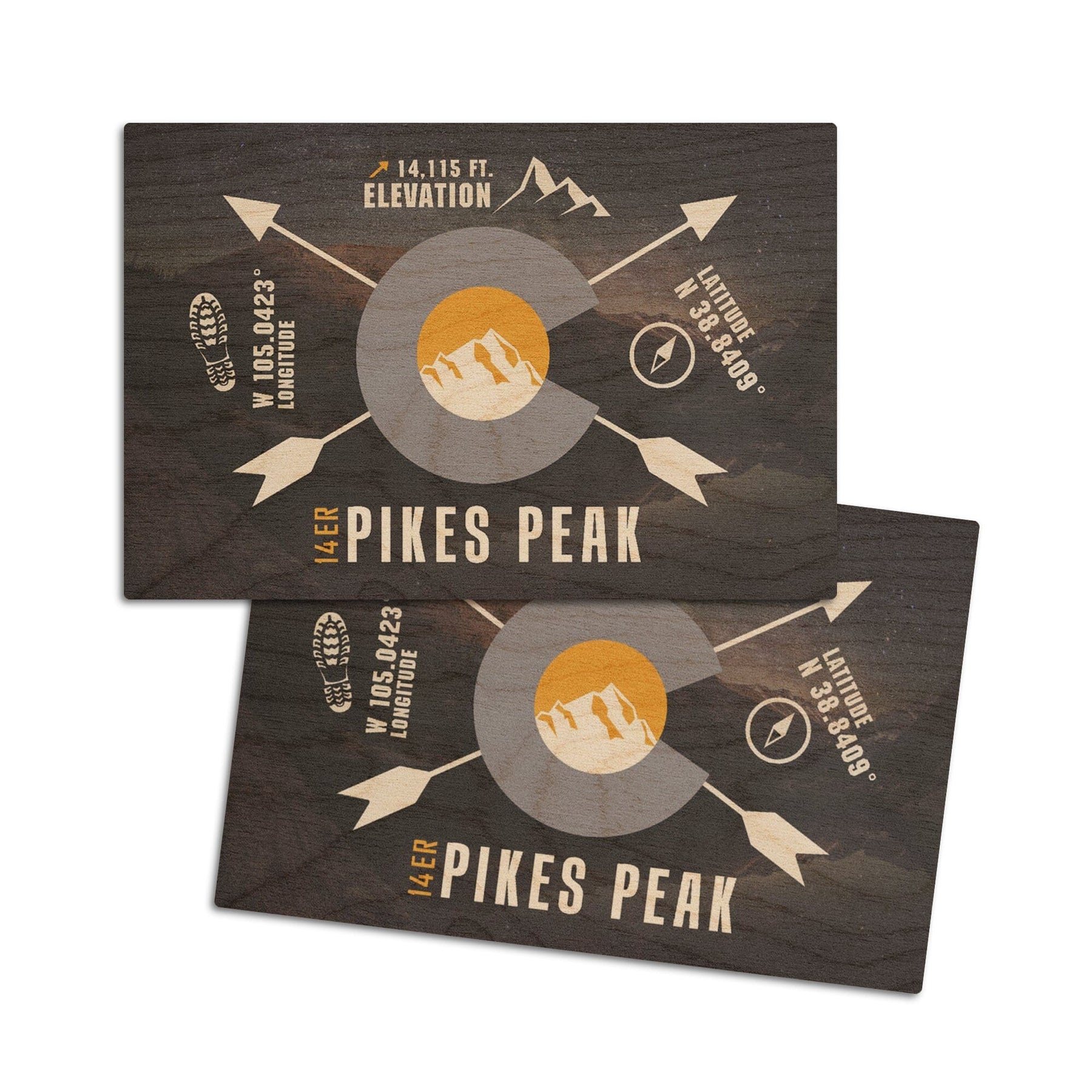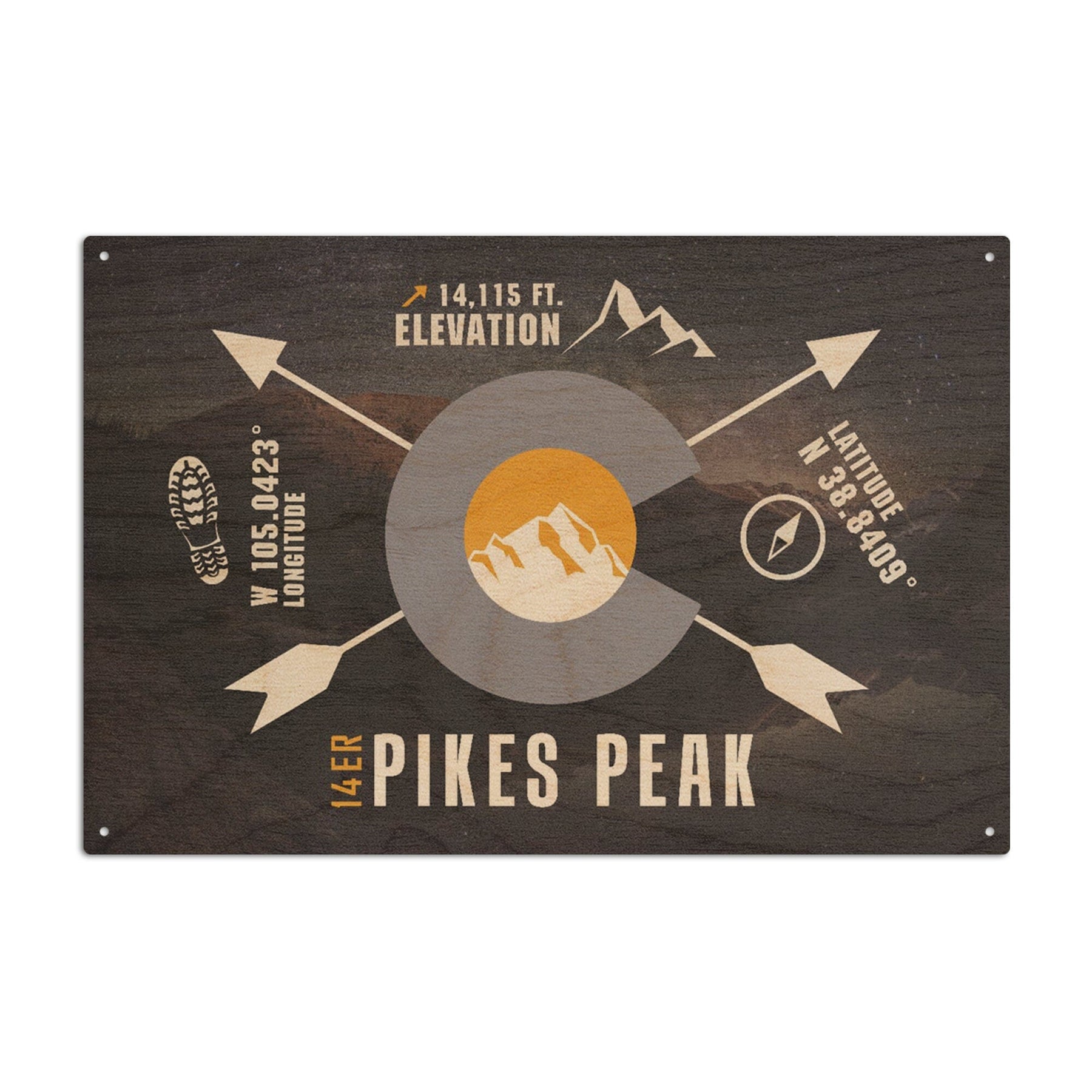 Pikes Peak, Colorado, Infographic, The Fourteeners, Lantern Press Artwork, Wood Signs and Postcards