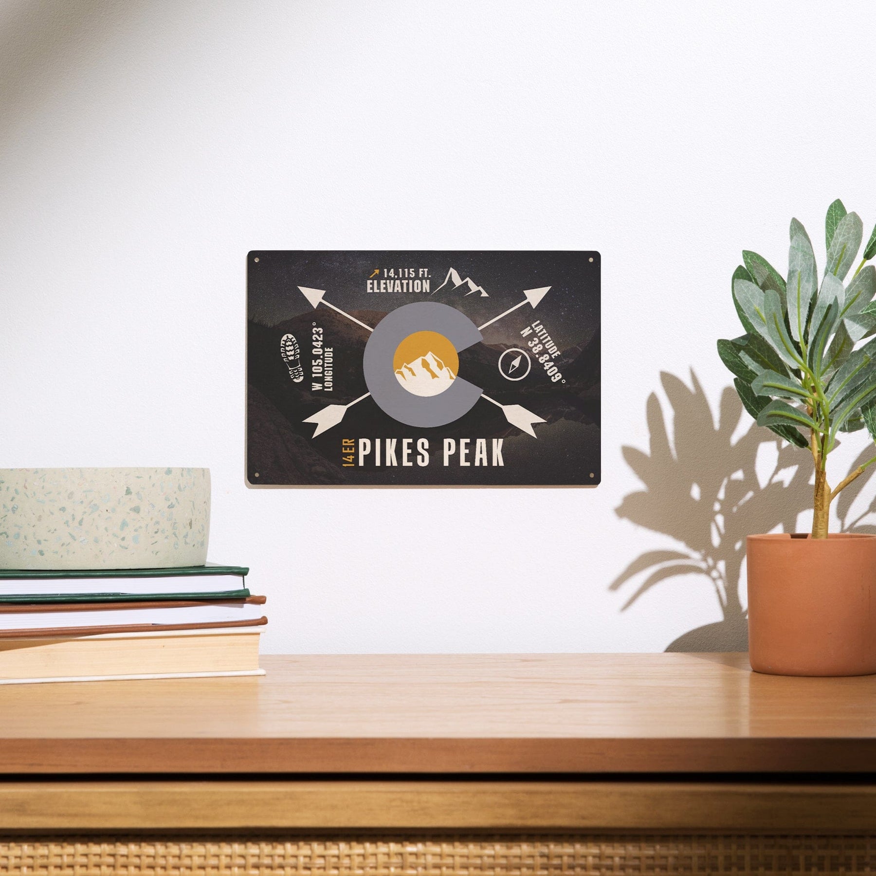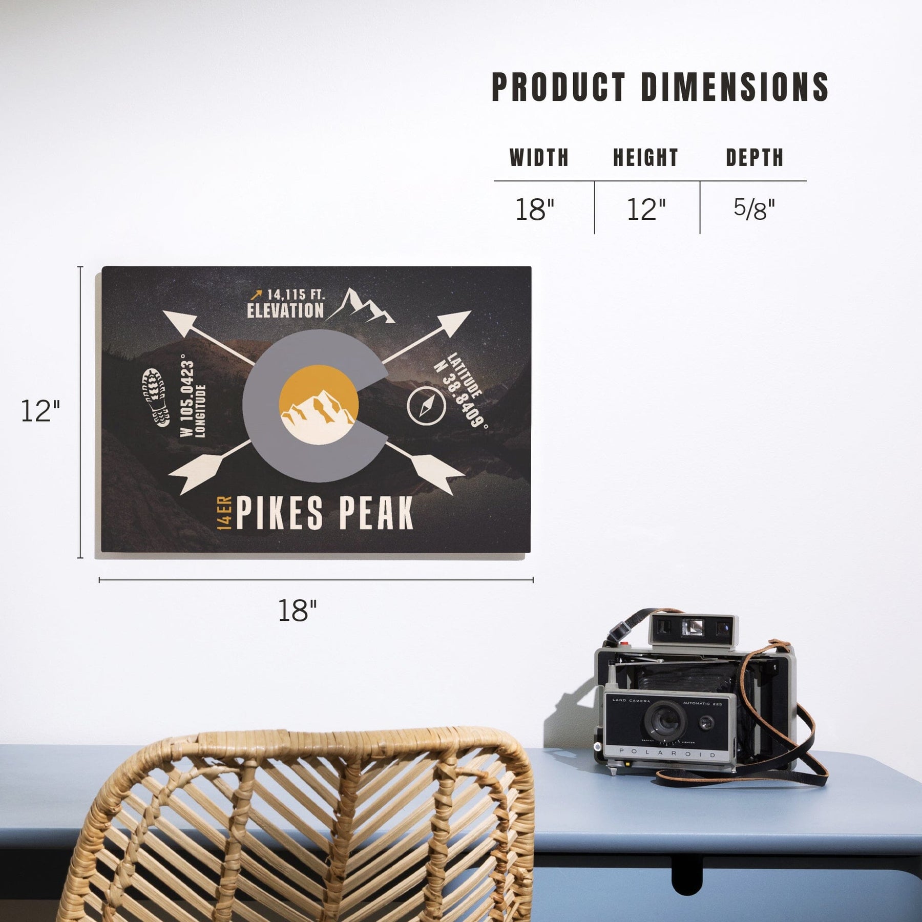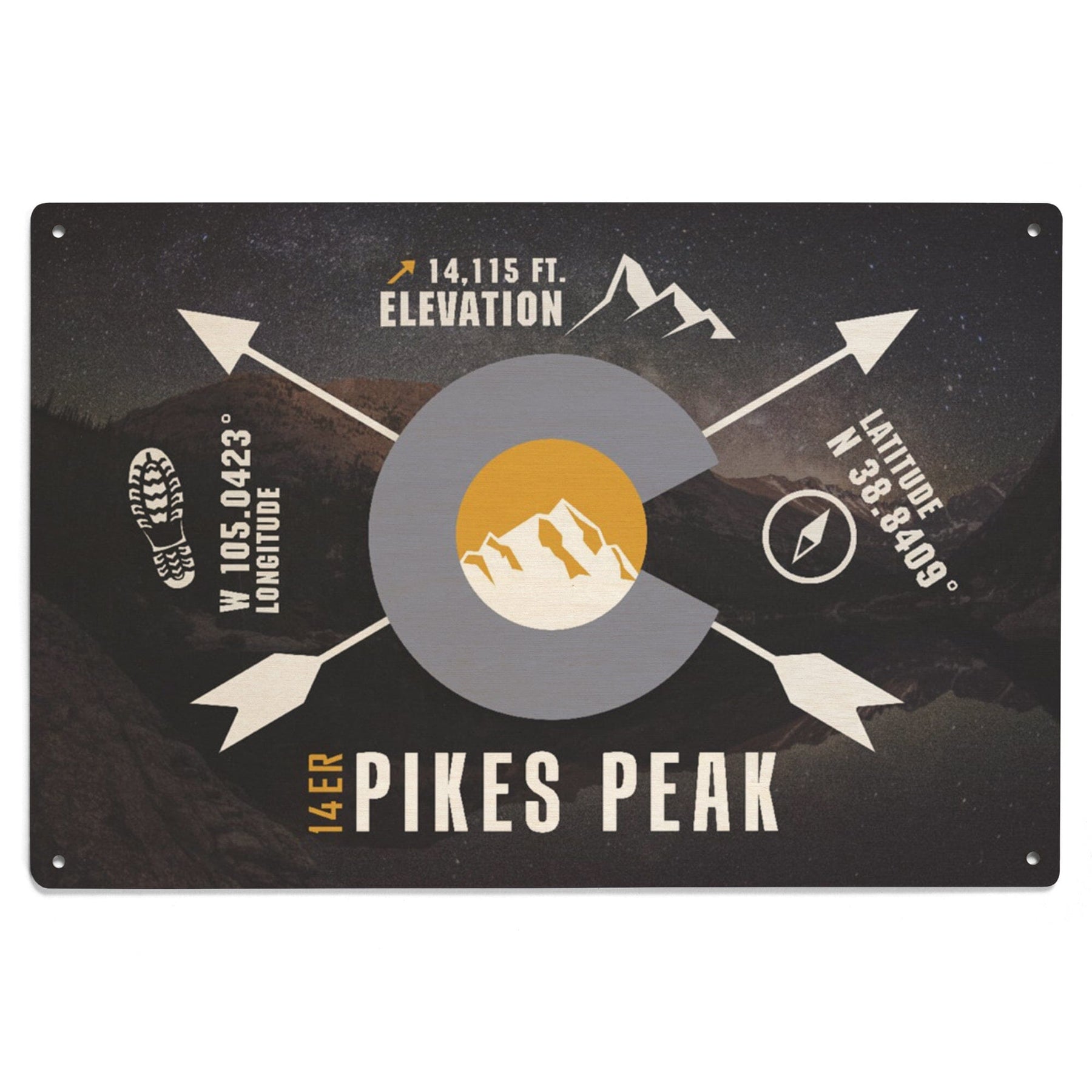 Pikes Peak, Colorado, Infographic, The Fourteeners, Lantern Press Artwork, Wood Signs and Postcards