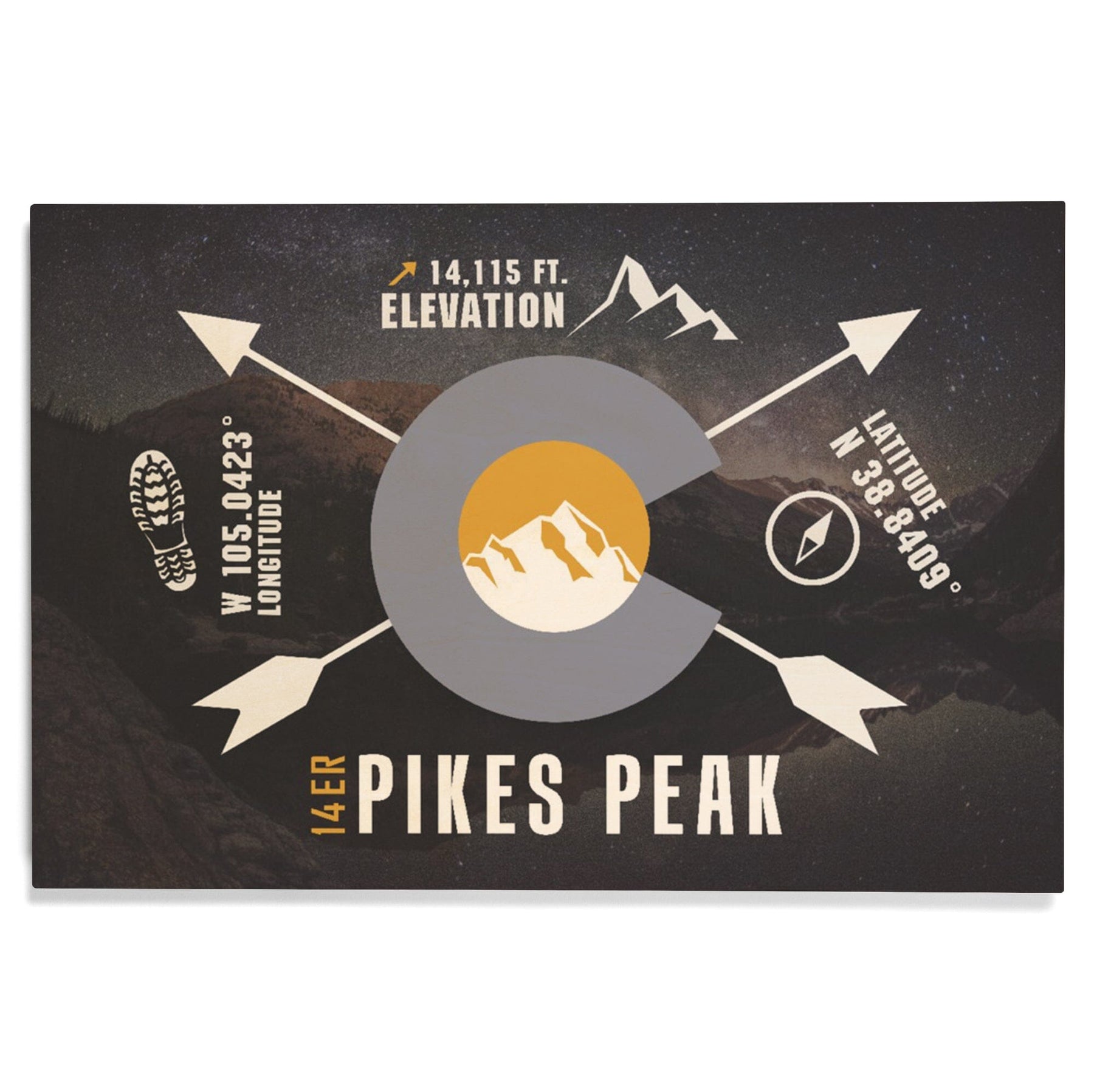 Pikes Peak, Colorado, Infographic, The Fourteeners, Lantern Press Artwork, Wood Signs and Postcards Wood Lantern Press