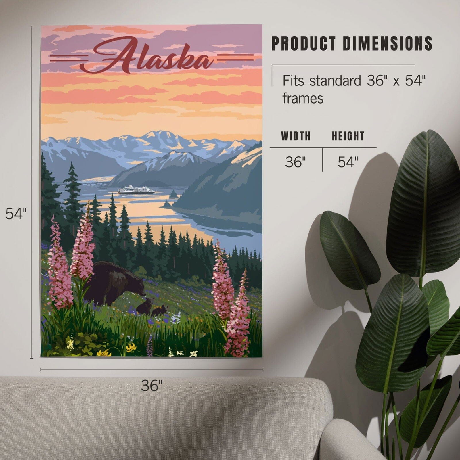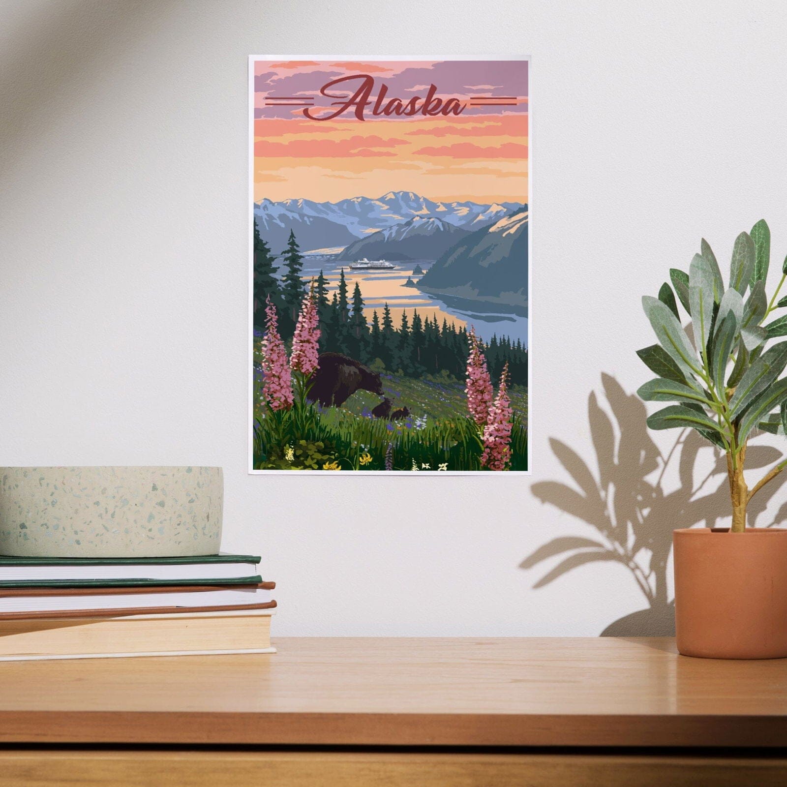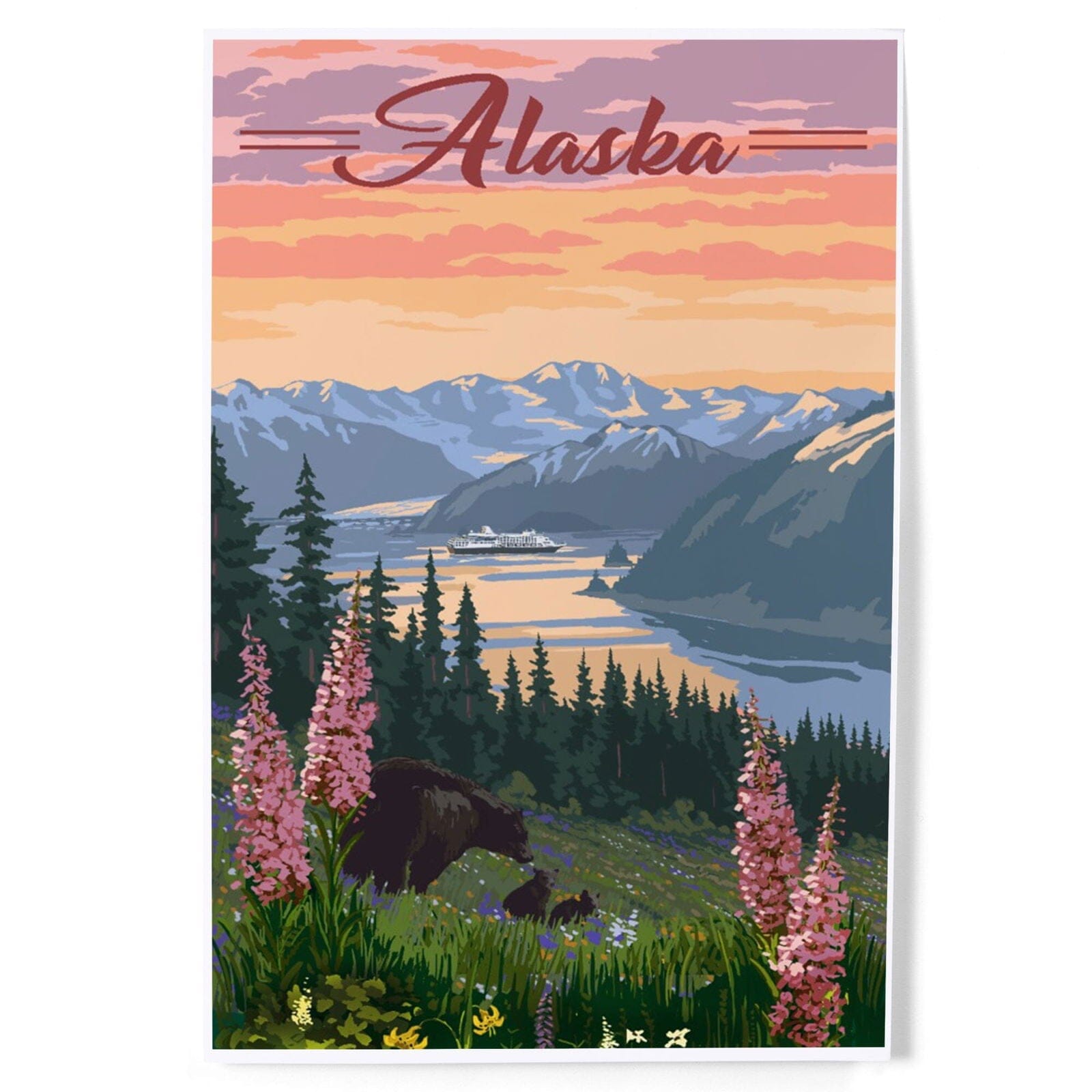 Alaska, Bear and Spring Flowers, Cruise Ship, Art & Giclee Prints Art Lantern Press