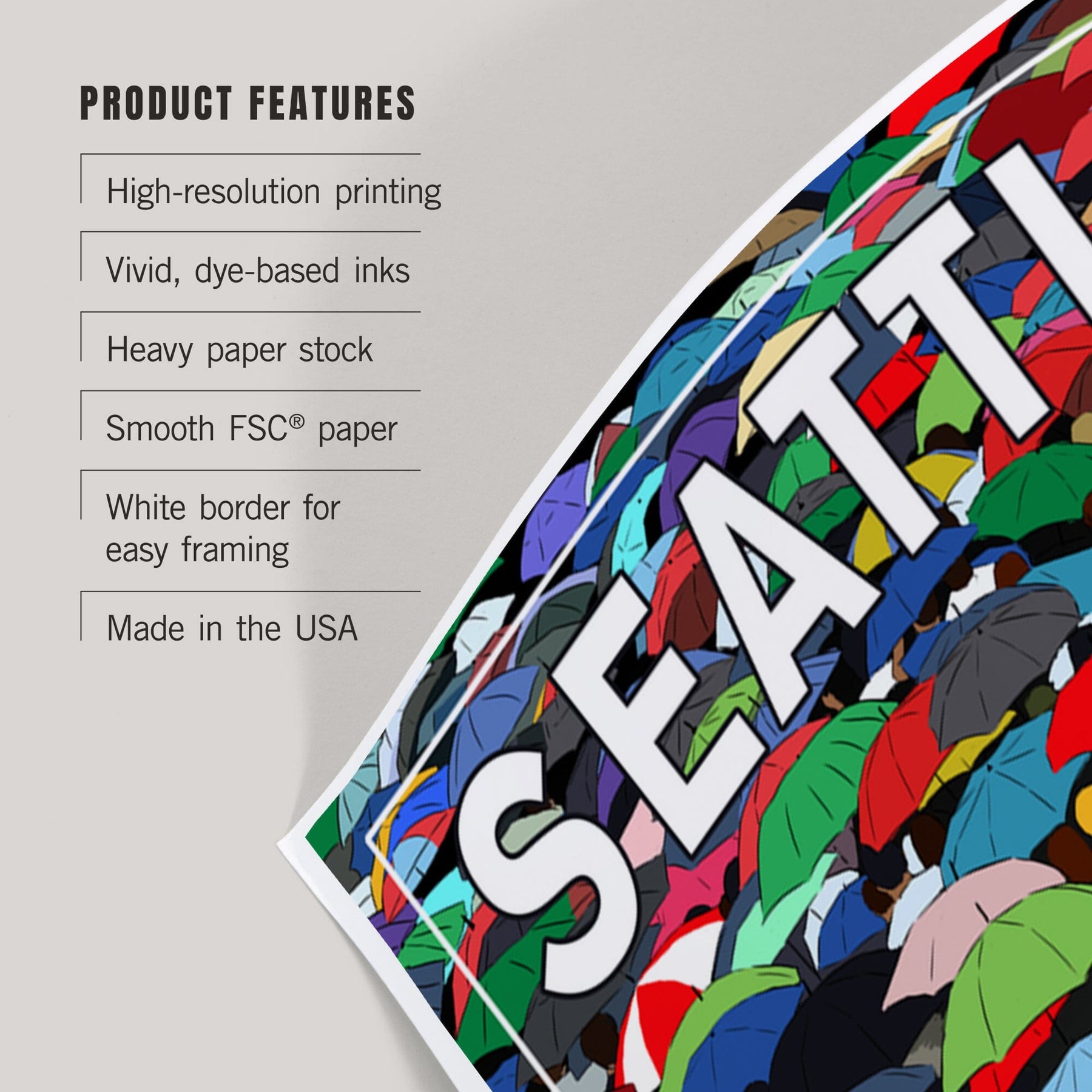 Seattle, Washington, Umbrellas, Art & Giclee Prints
