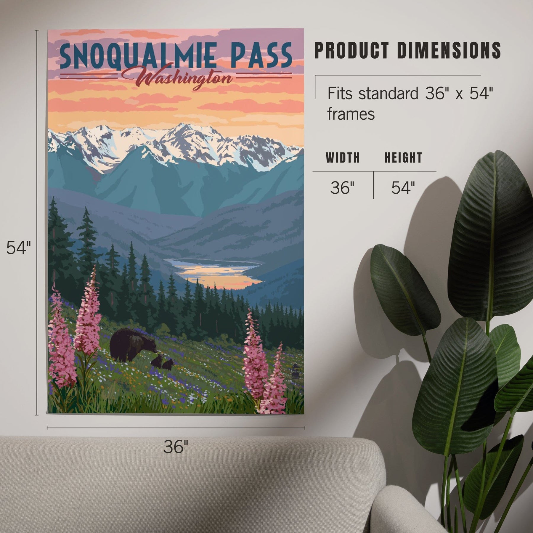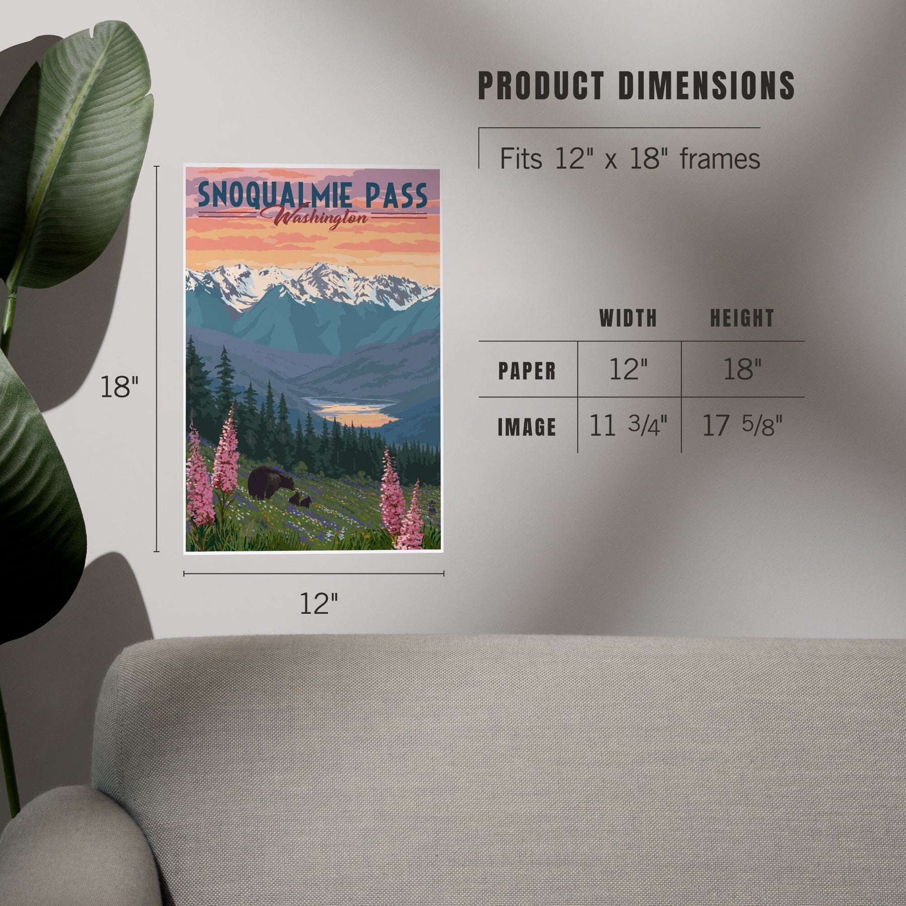 Snoqualmie Pass, Washington, Bear and Spring Flowers, Art & Giclee Prints Art Lantern Press
