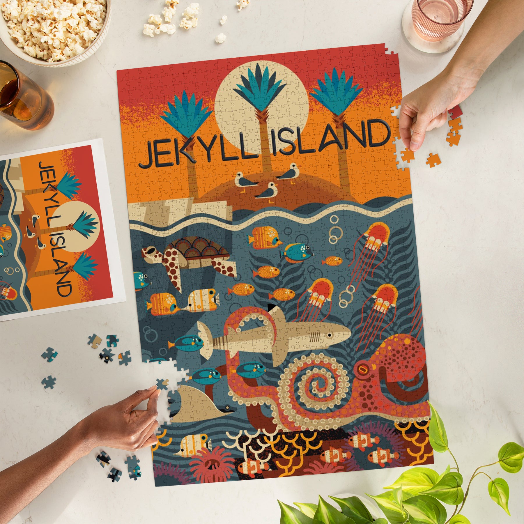 Jekyll Island, Georgia, Textured Geometric, Jigsaw Puzzle Puzzle Lantern Press
