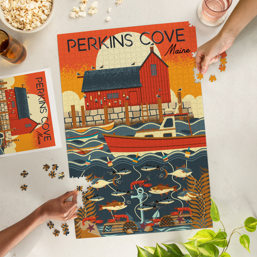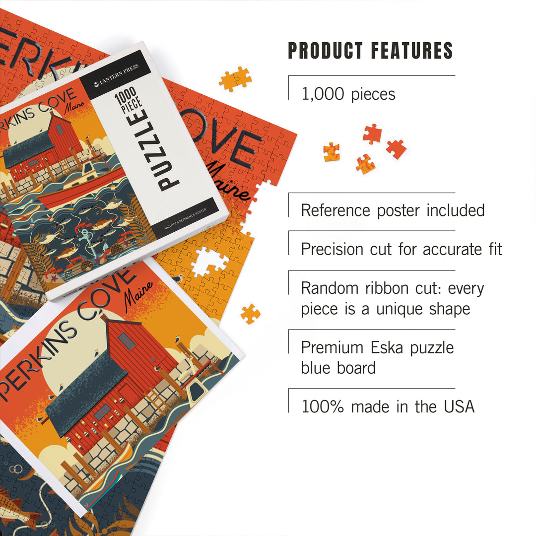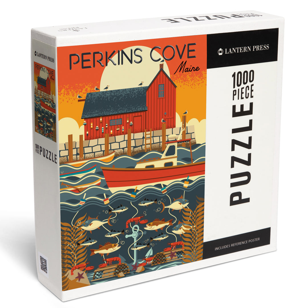 Perkins Cove, Maine, Nautical Geometric, Jigsaw Puzzle Puzzle Lantern Press