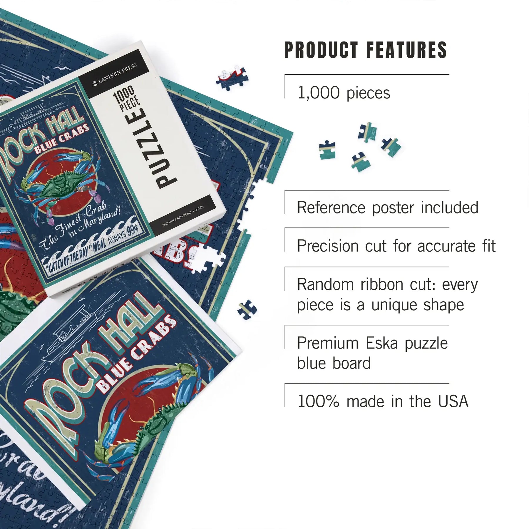 Rock Hall, Maryland, Blue Crabs Vintage Sign, Jigsaw Puzzle Puzzle Lantern Press