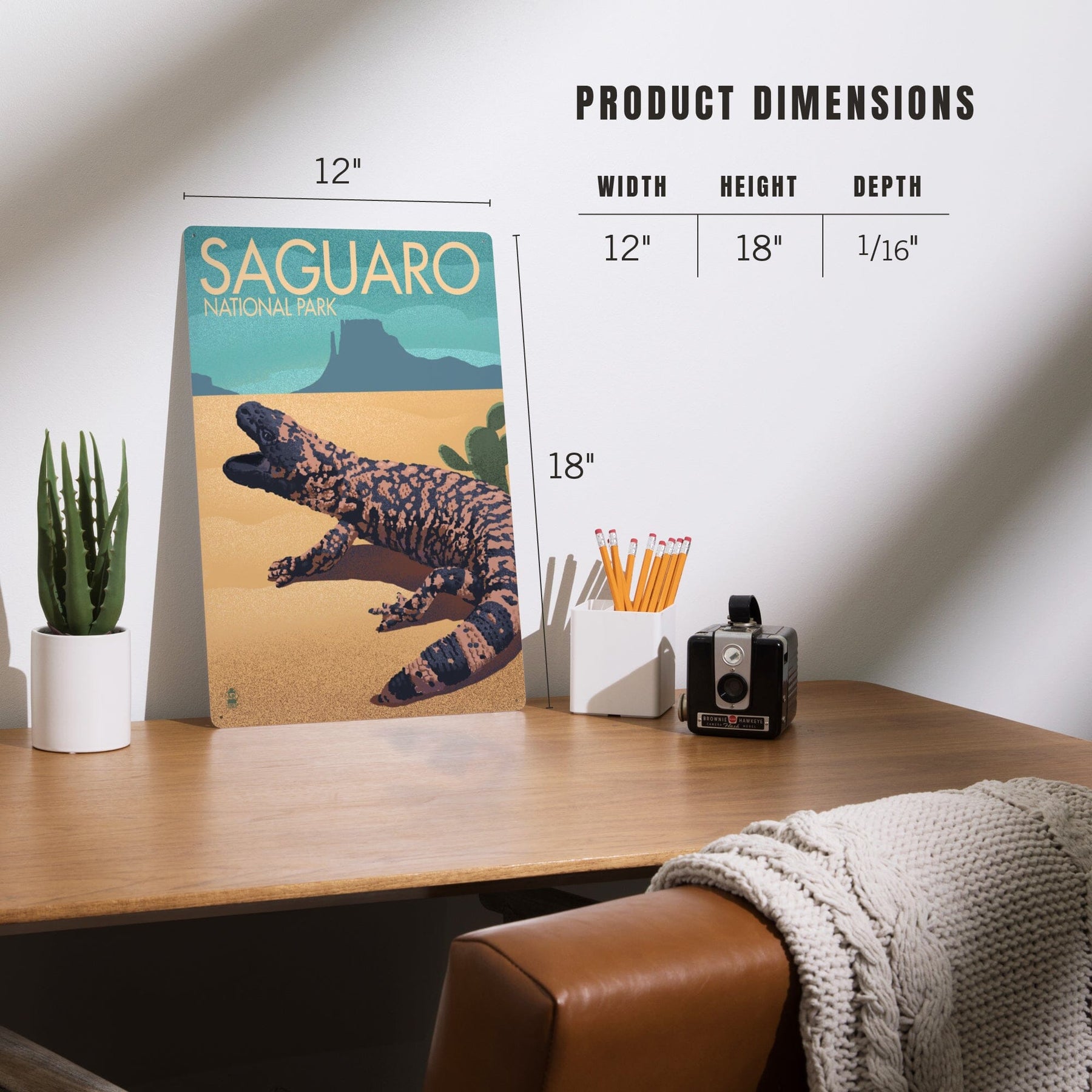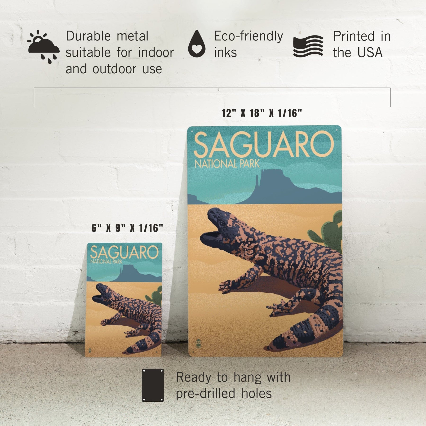 Saguaro National Park, Arizona, Gila Monster, Lithograph, Metal Signs