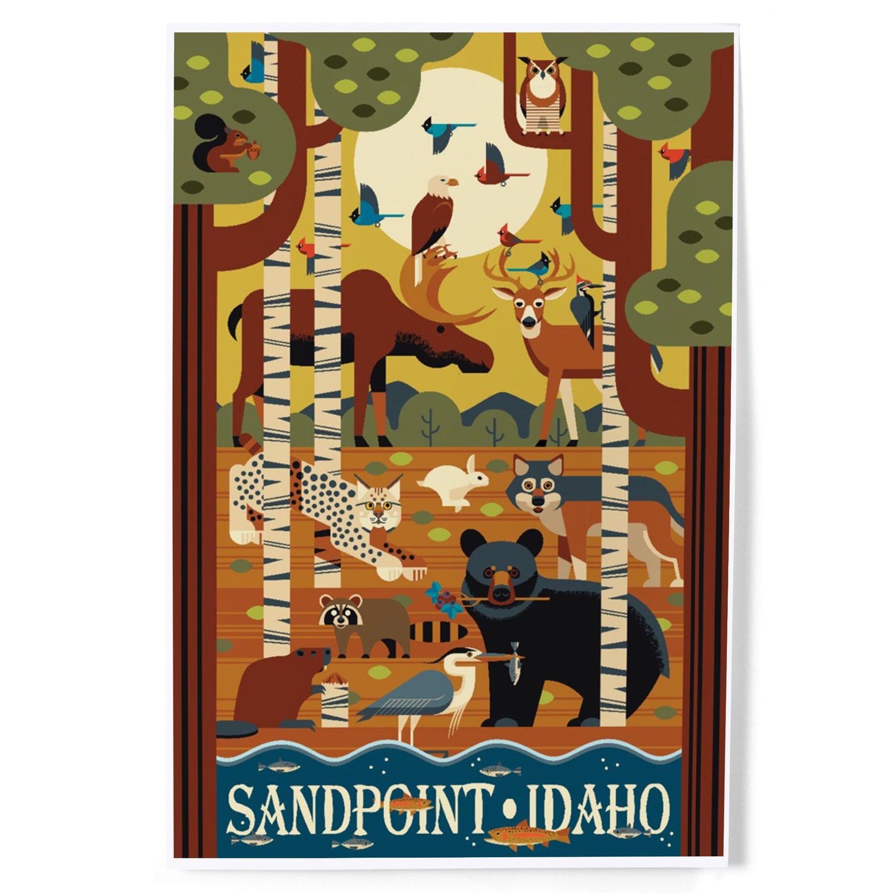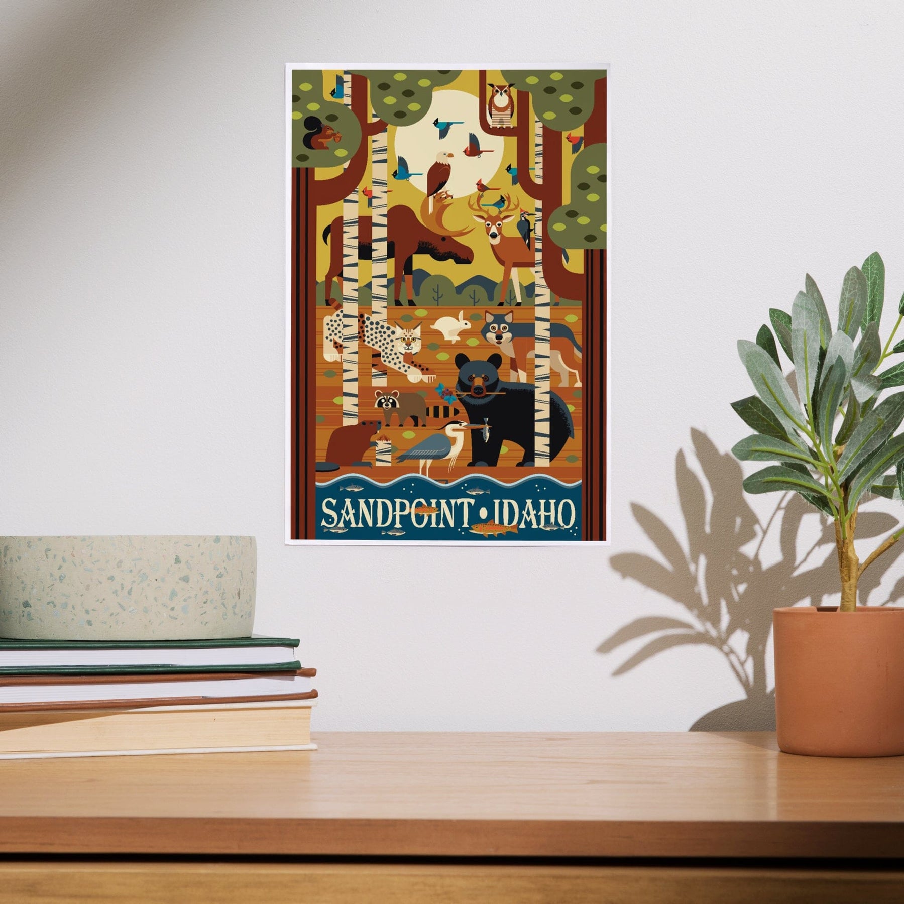 Sandpoint, Idaho, Forest Animals, Geometric, Art & Giclee Prints Art Lantern Press