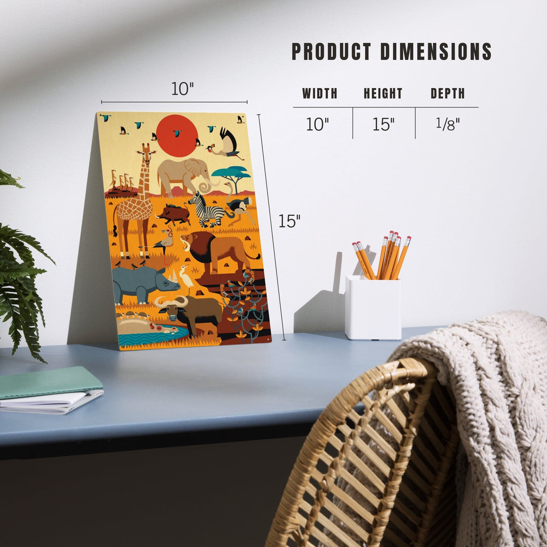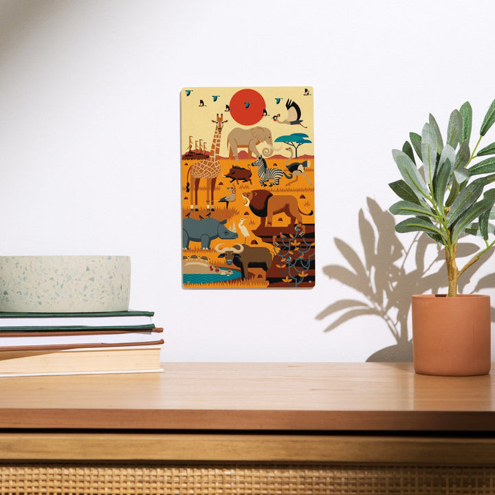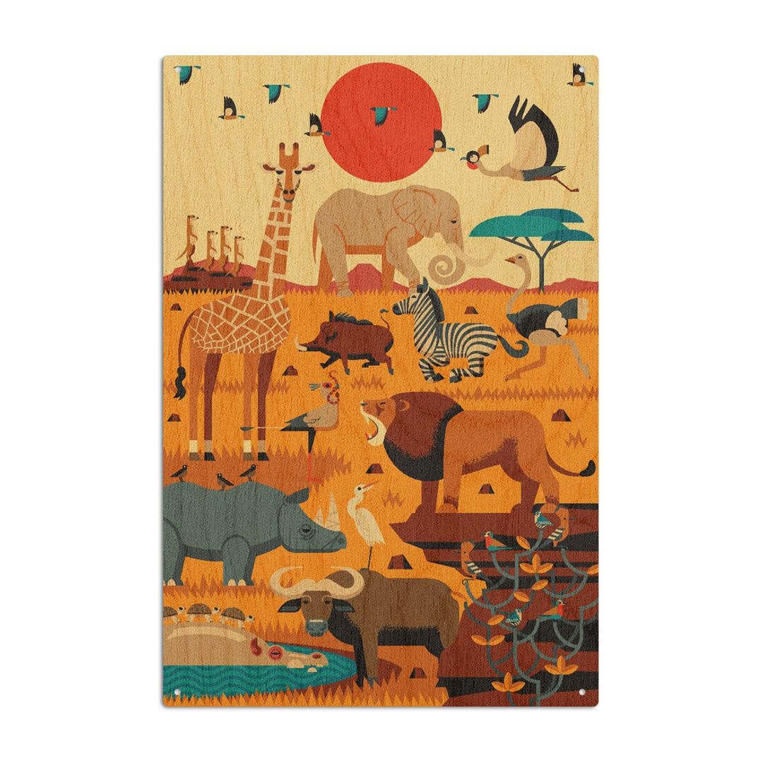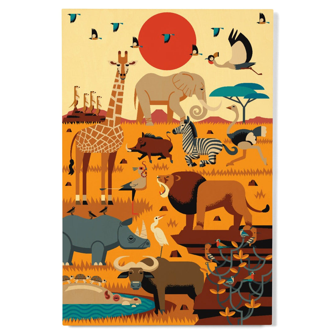 Savanna Animals, Textured Geometric, Lantern Press Artwork, Wood Signs and Postcards Wood Lantern Press