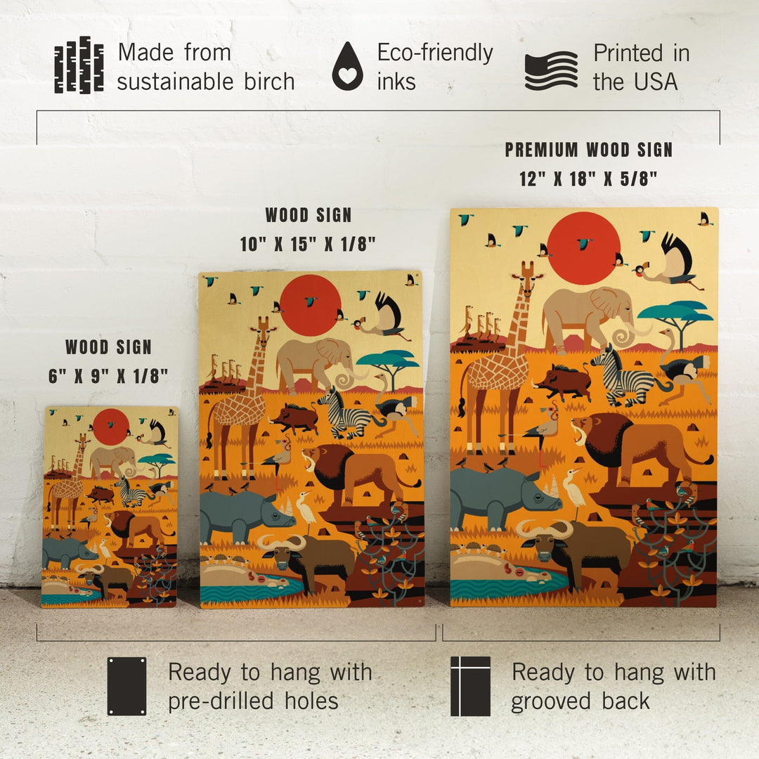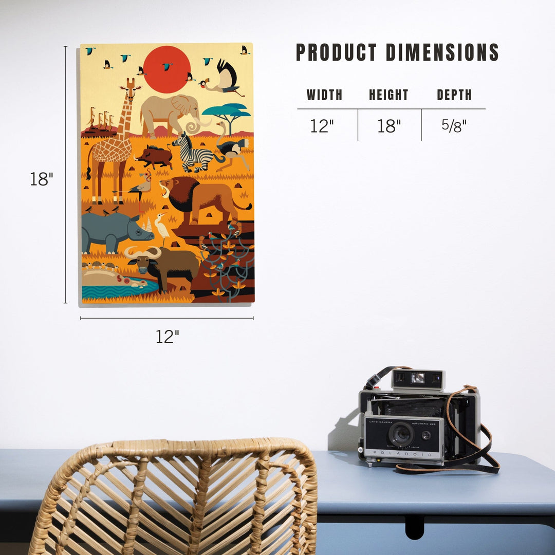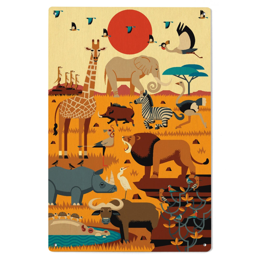 Savanna Animals, Textured Geometric, Lantern Press Artwork, Wood Signs and Postcards Wood Lantern Press