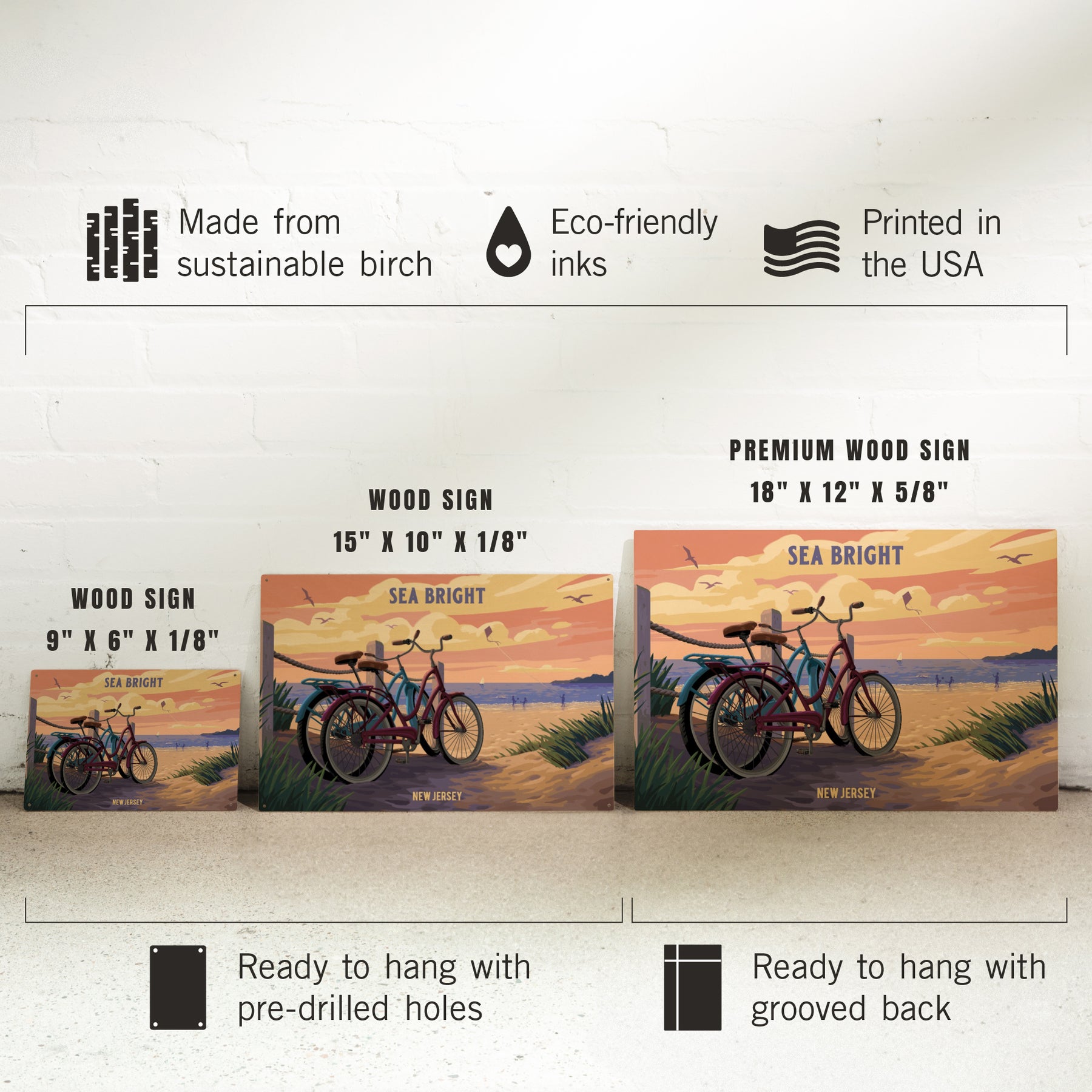 Sea Bright, New Jersey, Painterly, The Beach Is Calling, Beach Bikes, Wood Signs and Postcards Wood Lantern Press