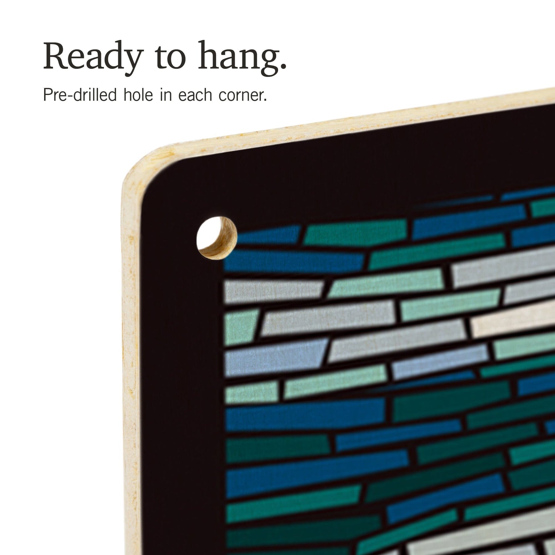 • Hole in each corner, ready to hang