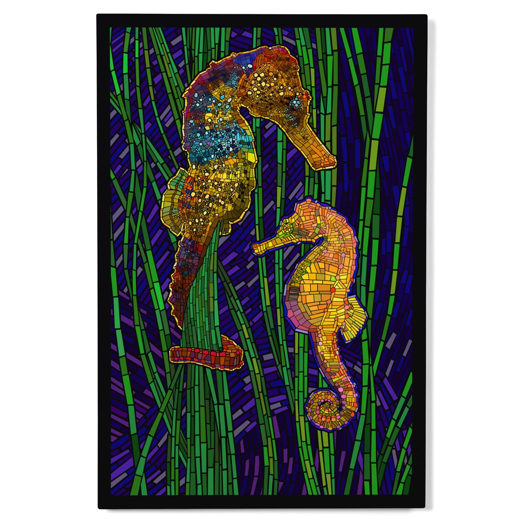 Seahorses, Paper Mosaic, Lantern Press Artwork, Wood Signs and Postcards