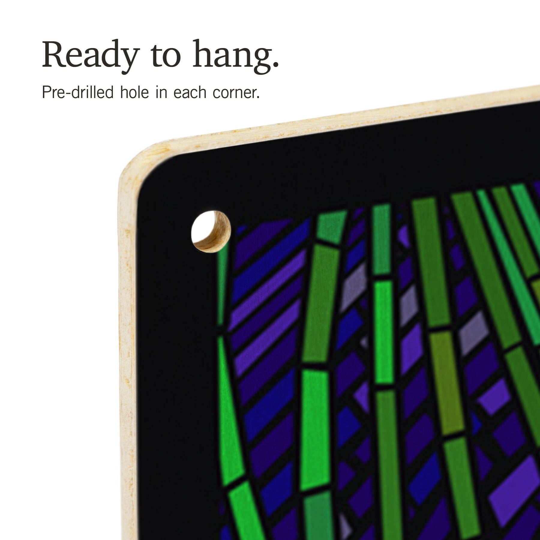 • Hole in each corner, ready to hang