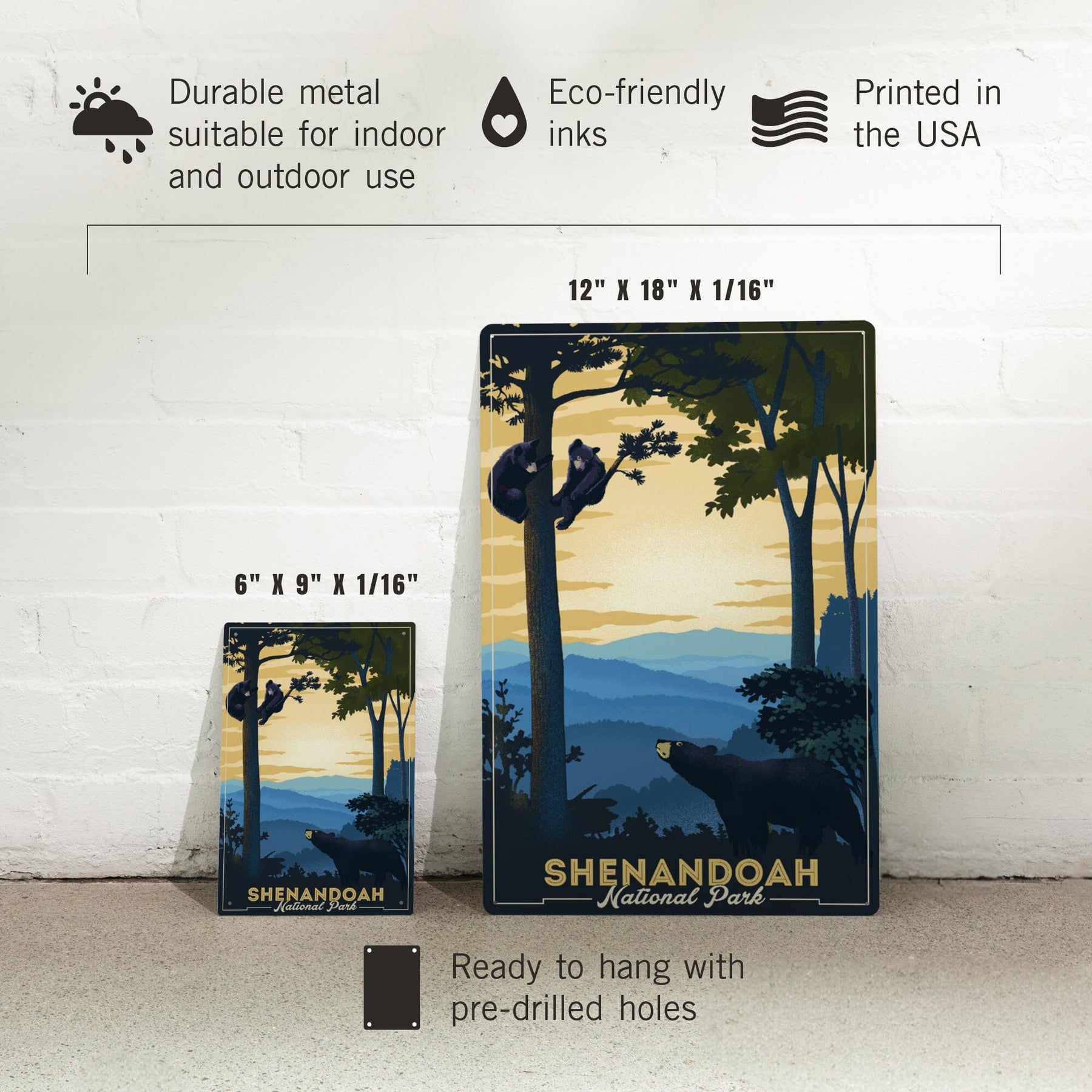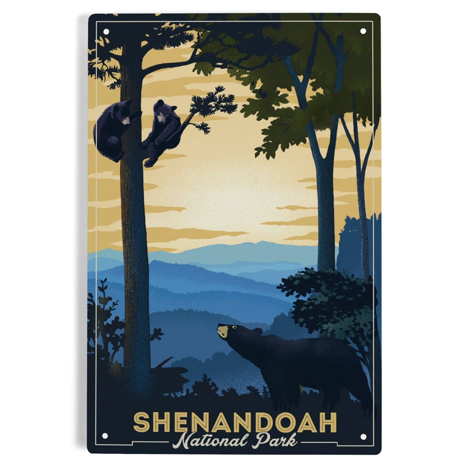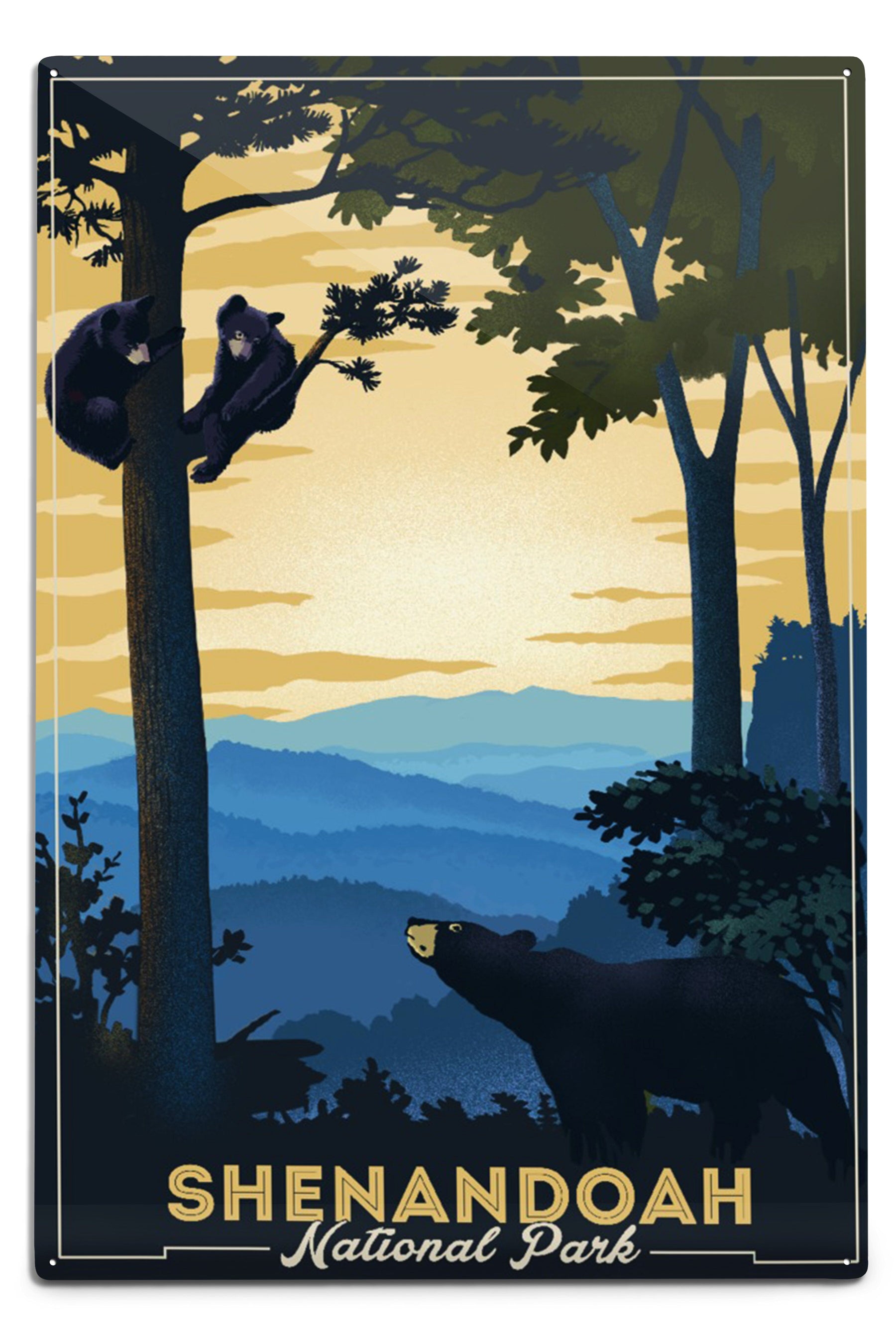 Shenandoah National Park, Black Bears, Lithograph, Metal Signs